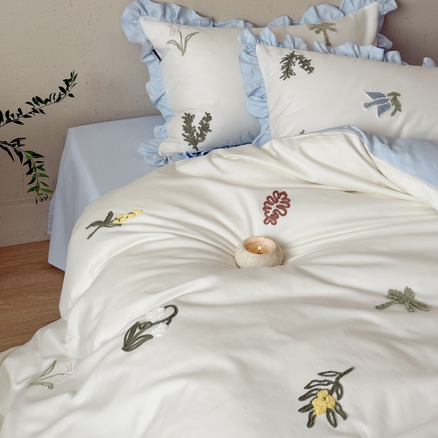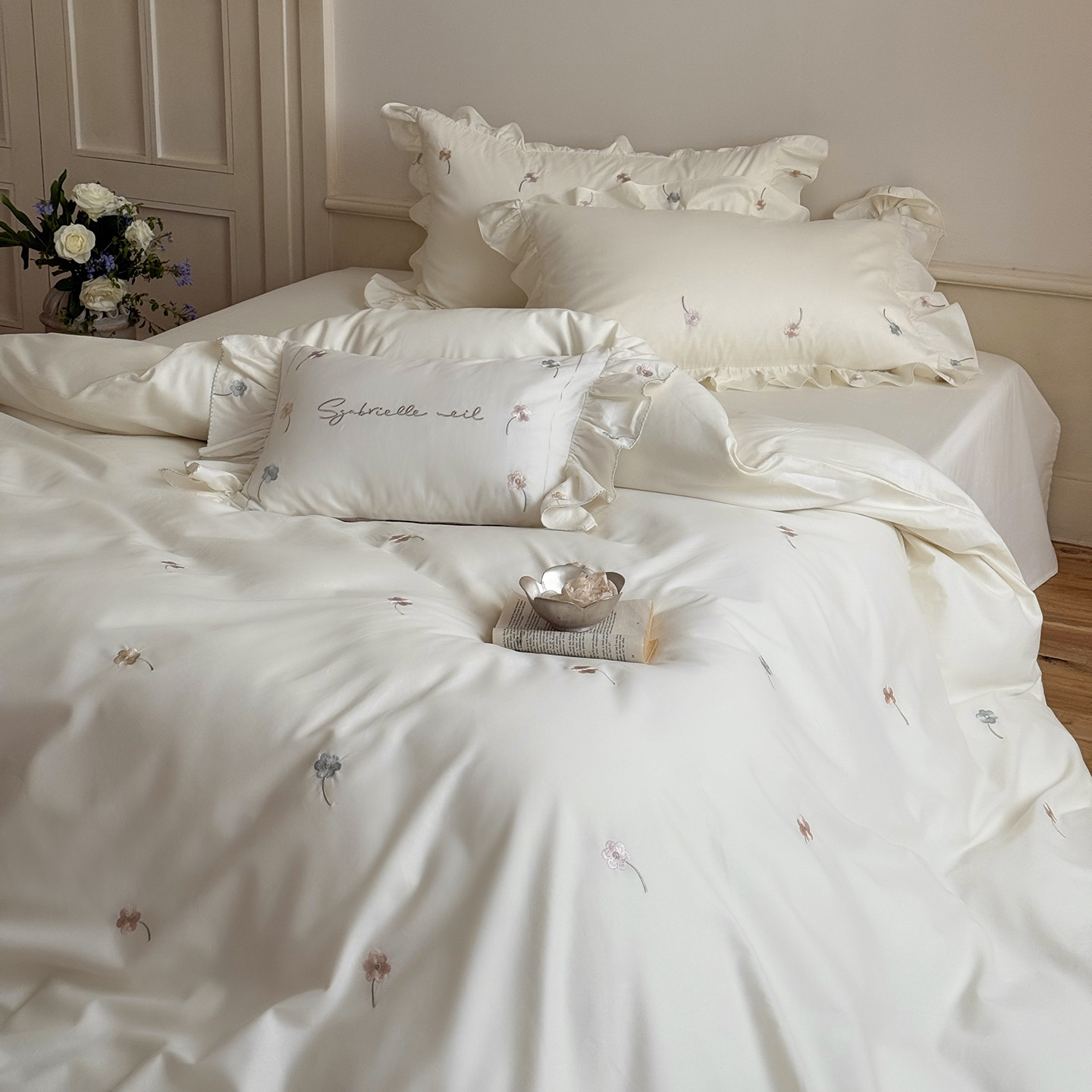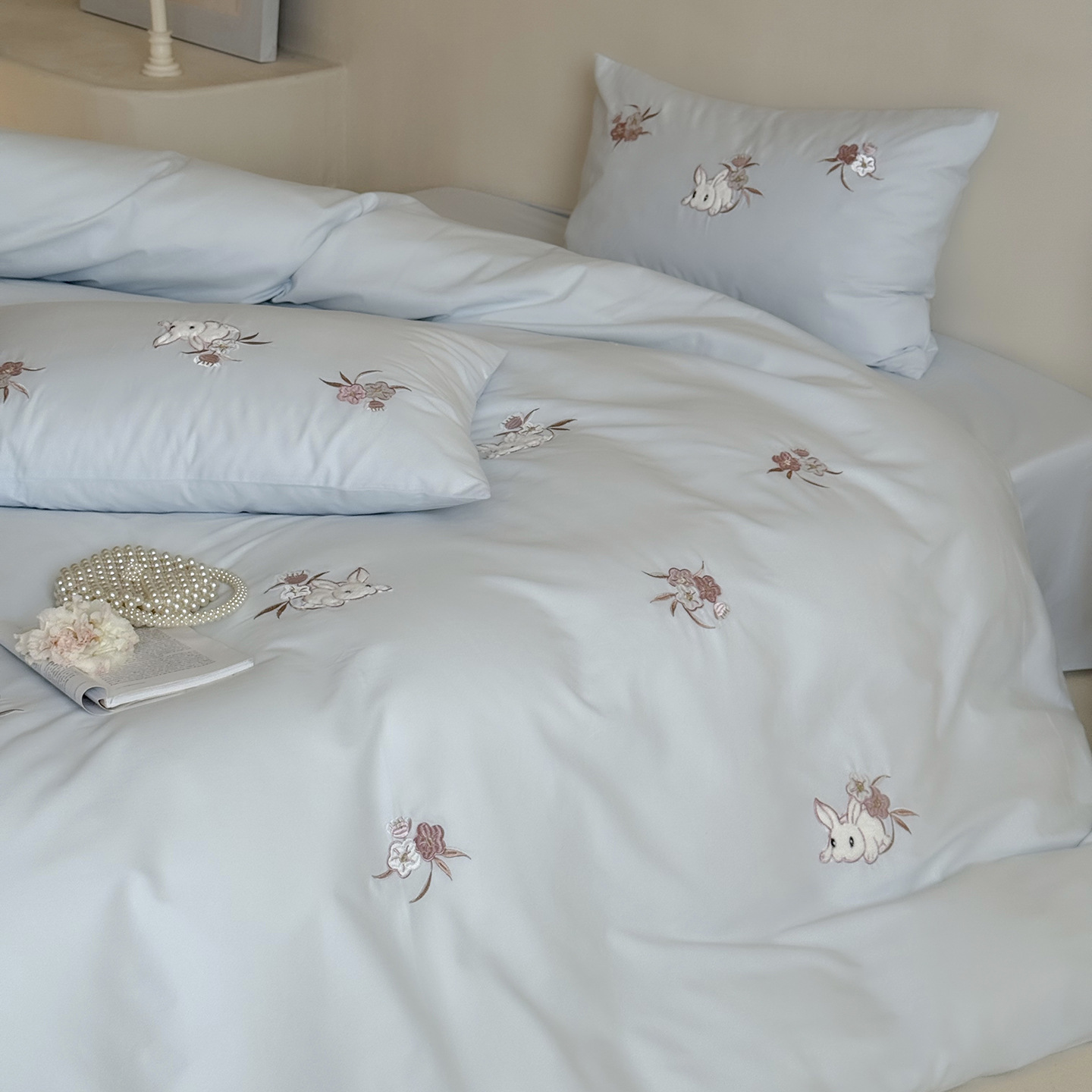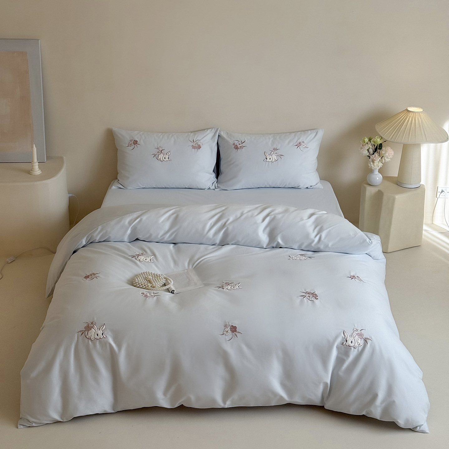 秋冬软糯100支长绒棉磨毛四件套少女心纯棉刺绣床单被套加厚4件套