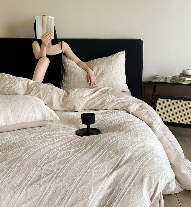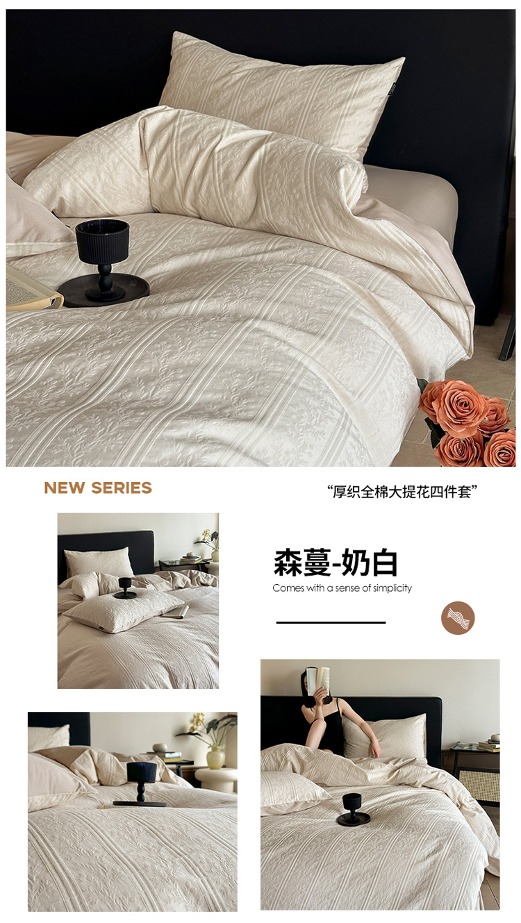 A类新疆长绒棉60支厚织全棉大提花四件套纯棉轻奢感被套床单床品2