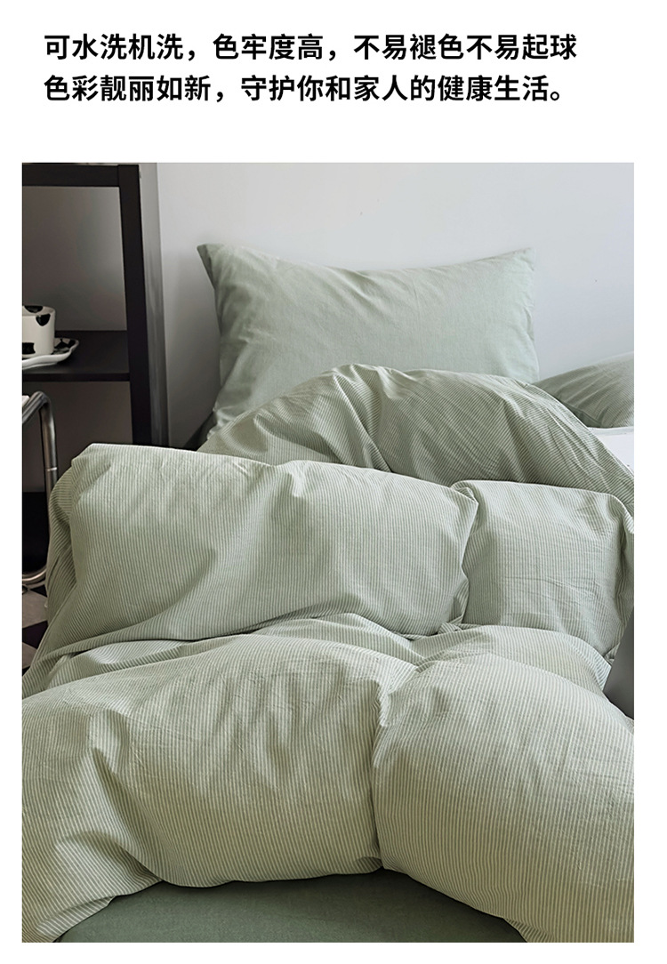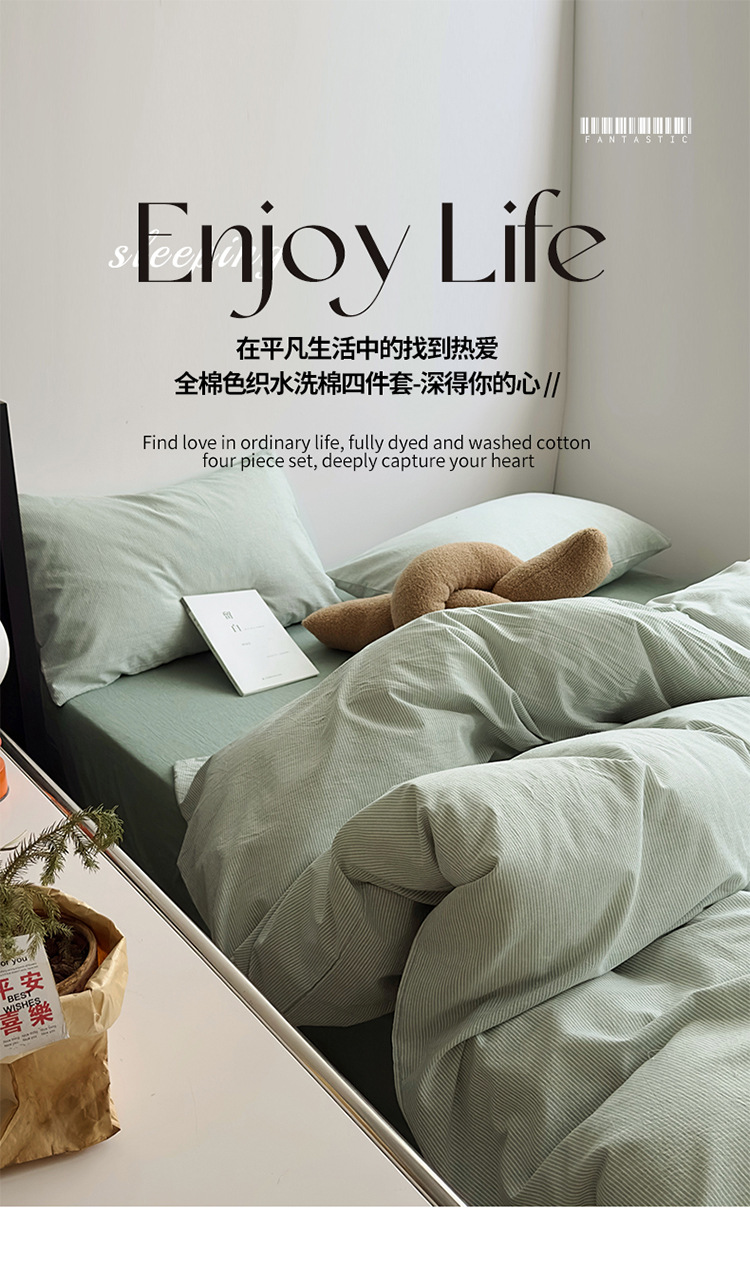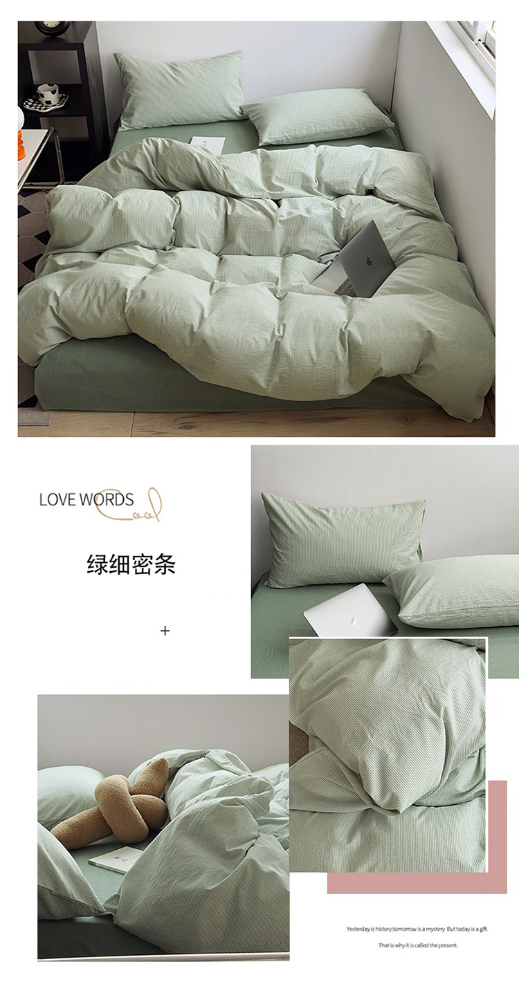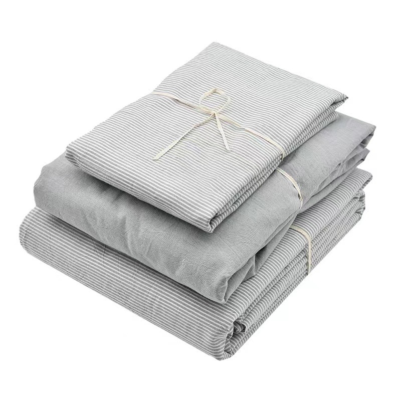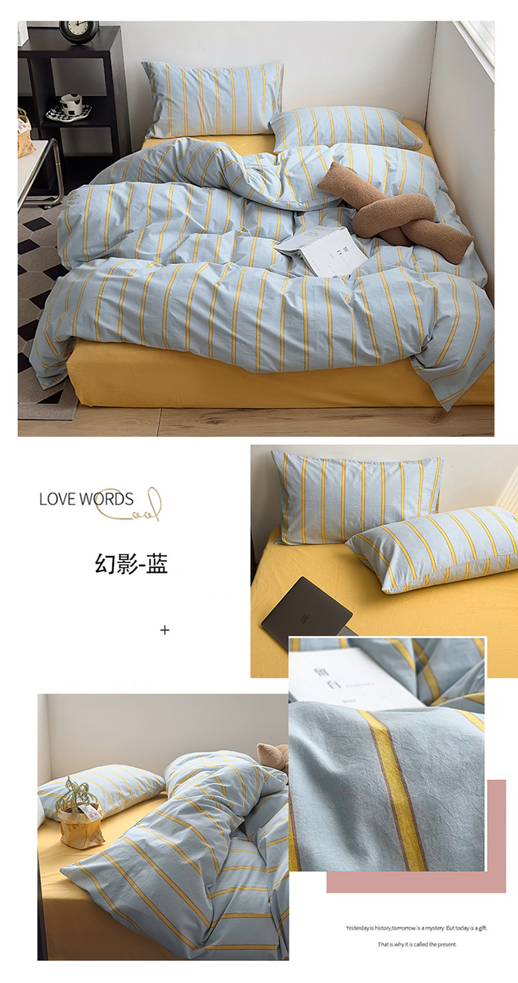 厂家直销无印全棉四件套纯棉色织水洗棉床上宿舍简约条纹良品床笠