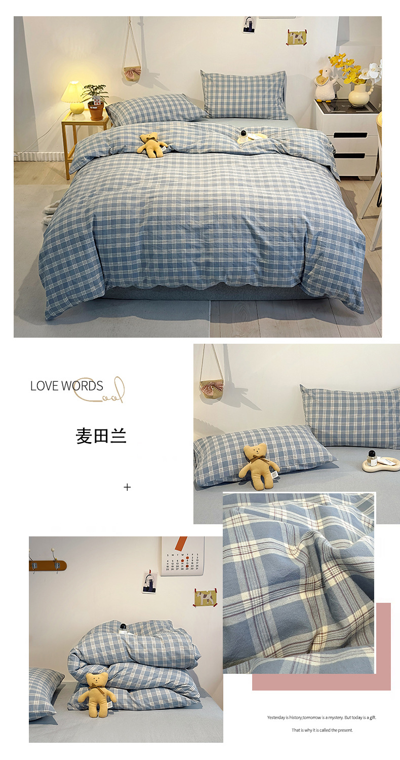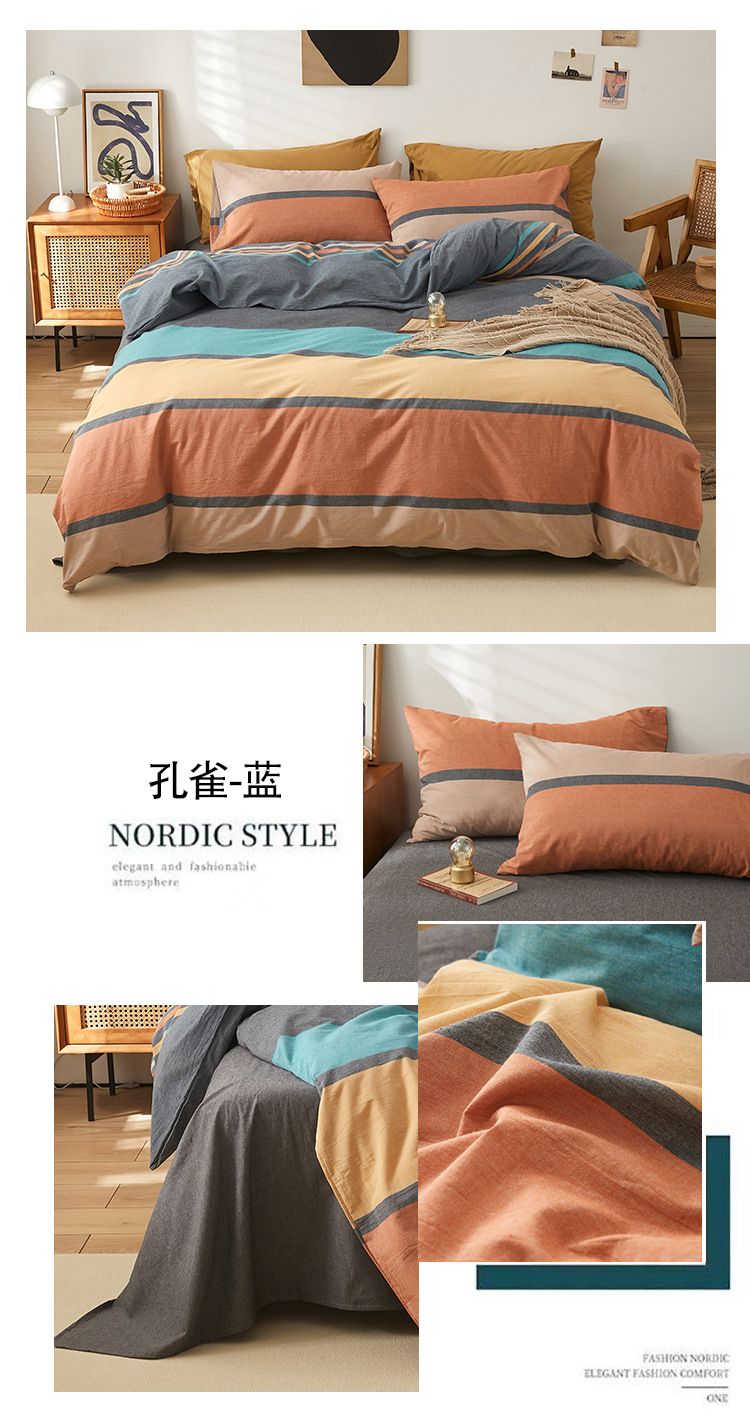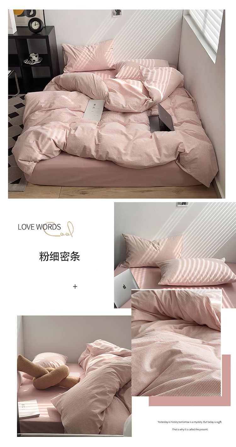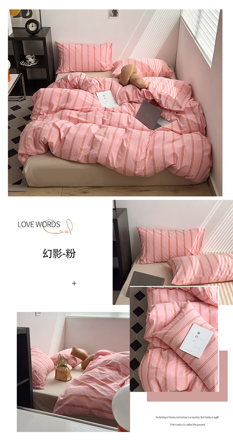 厂家直销无印全棉四件套纯棉色织水洗棉床上宿舍简约条纹良品床笠