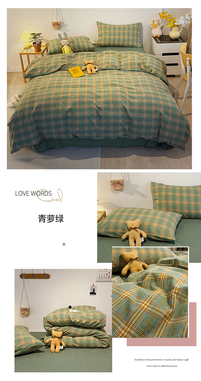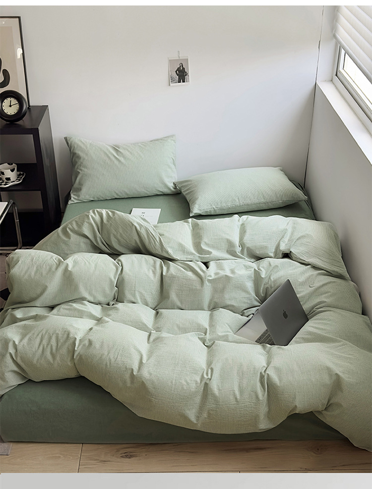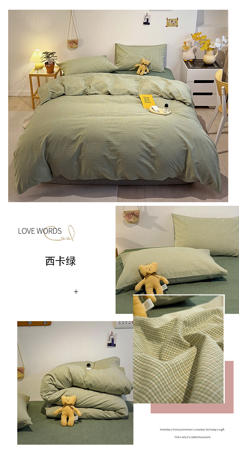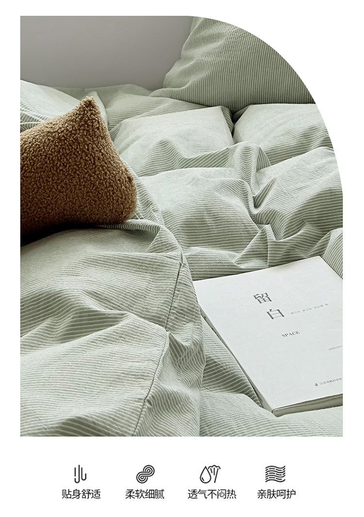 厂家直销无印全棉四件套纯棉色织水洗棉床上宿舍简约条纹良品床笠