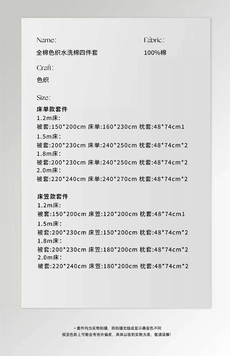 | 1.5 m fitted sheet four-piece set (quilt cover 200 * 230cm)(1.5米床笠款四件套(被套200*230cm)) | USD $29.8 | 6519 set available |
