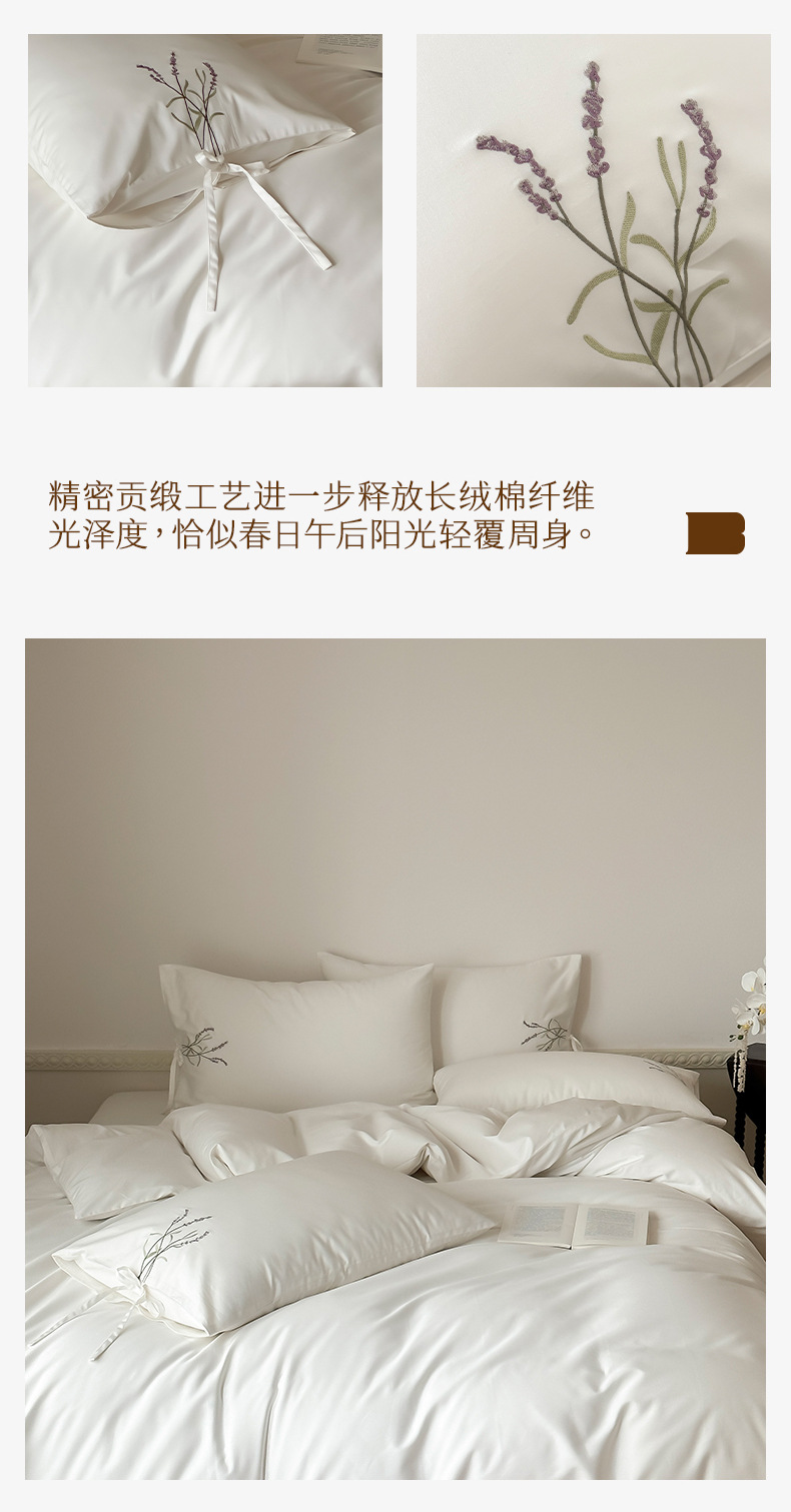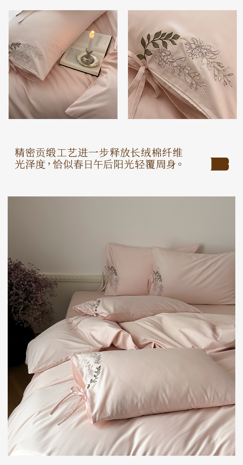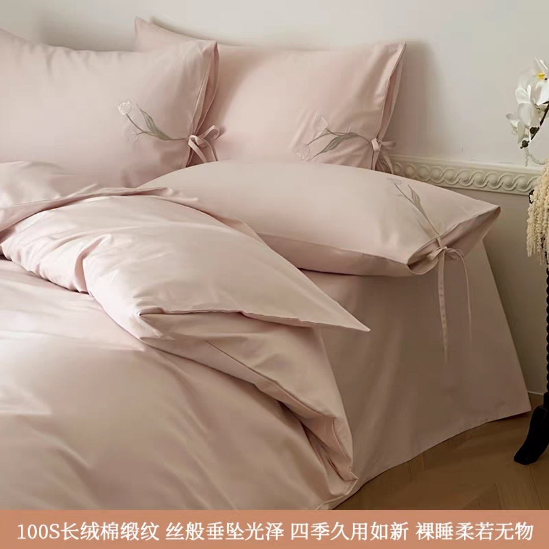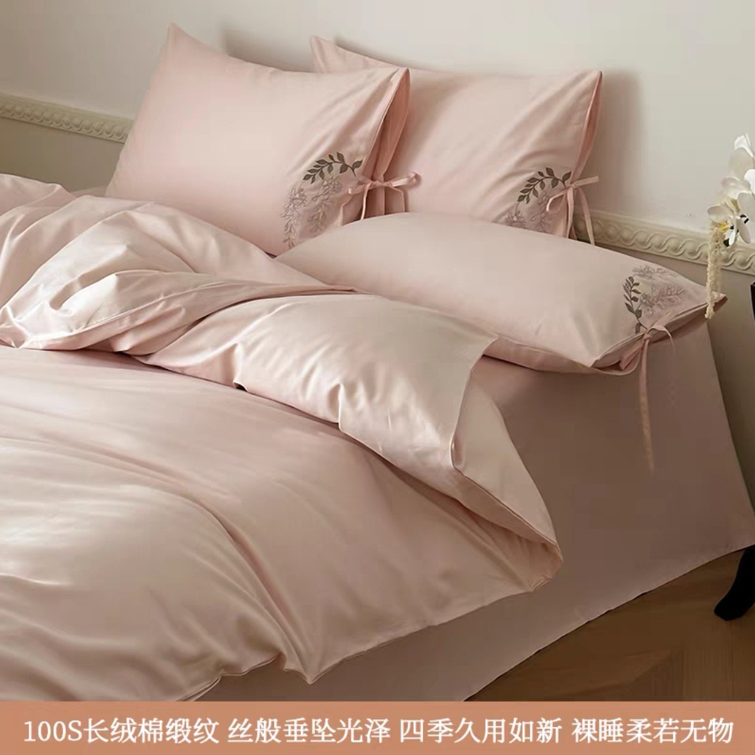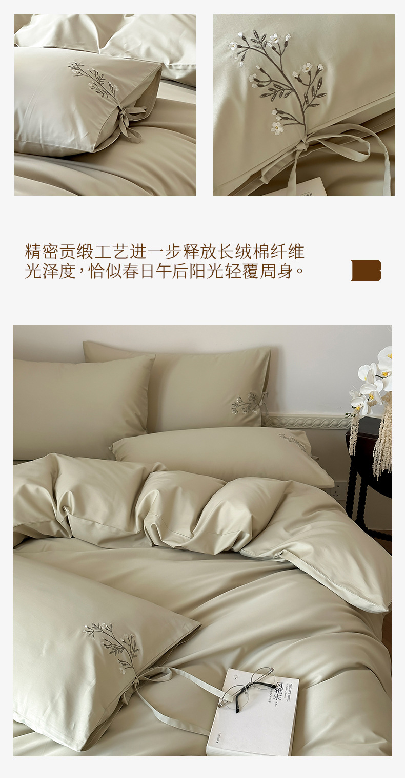 轻奢风100S长绒棉四件套纯棉刺绣花卉被套床单全棉高级感床上用品