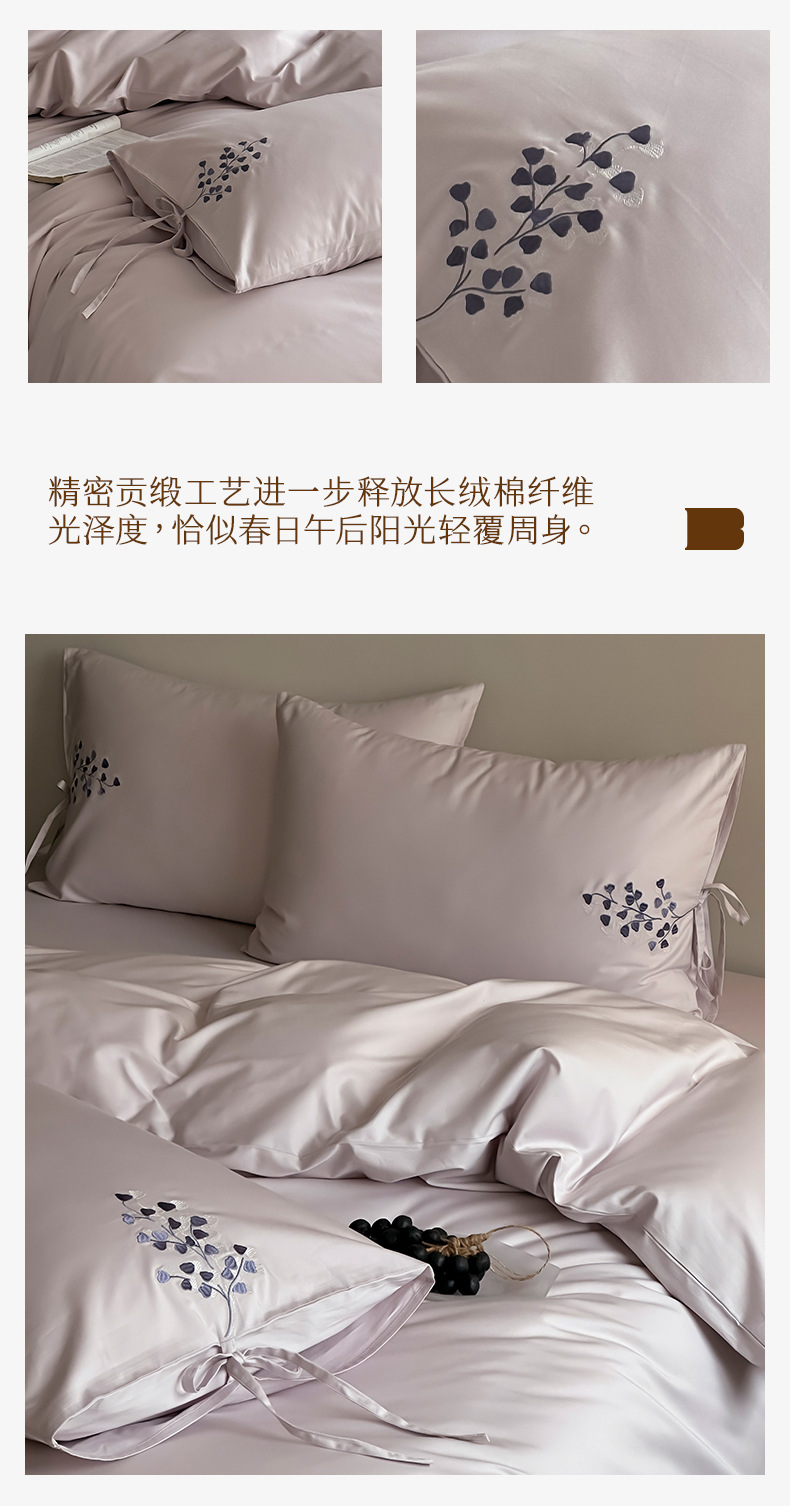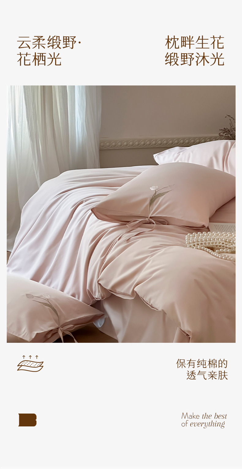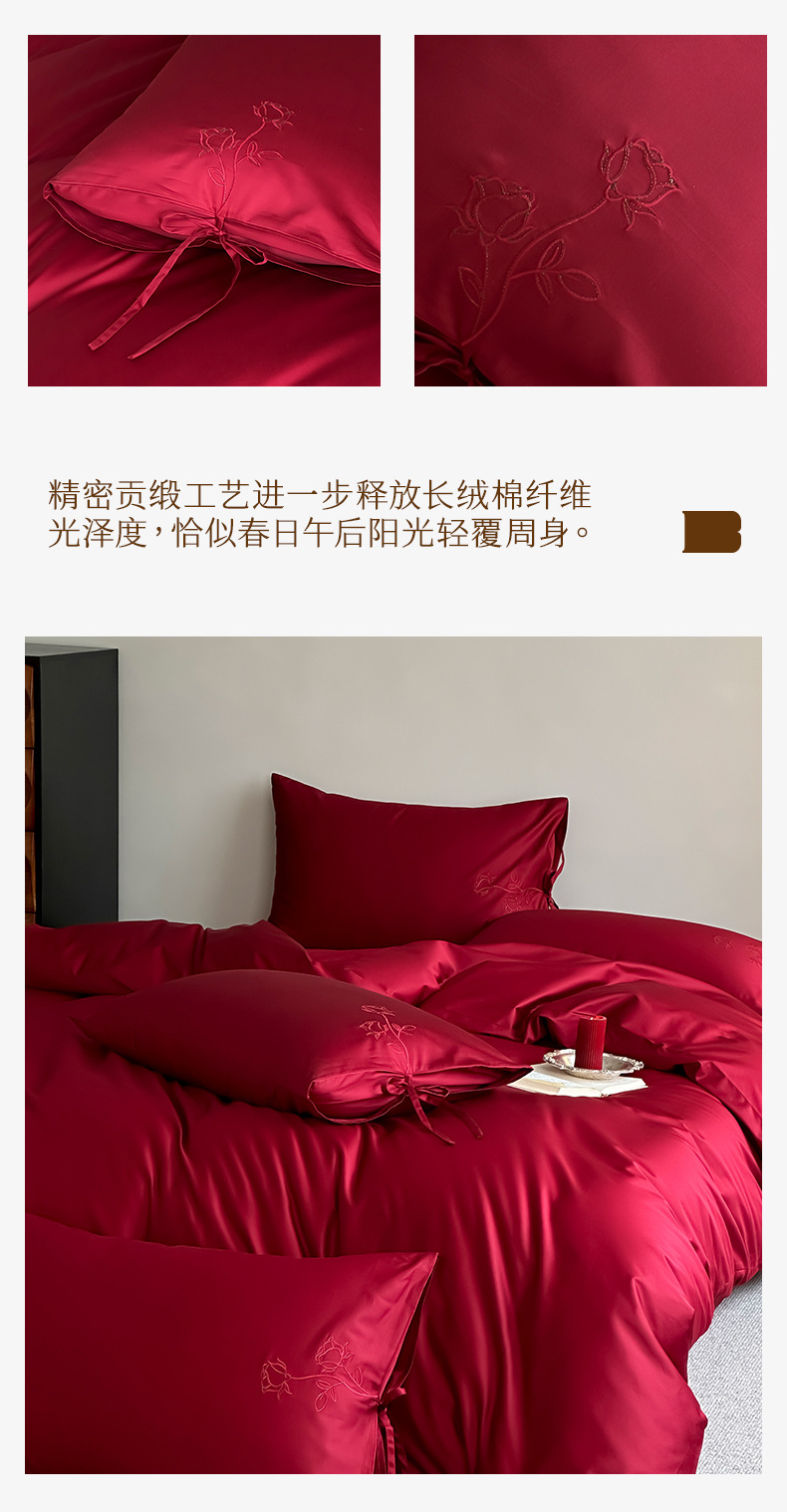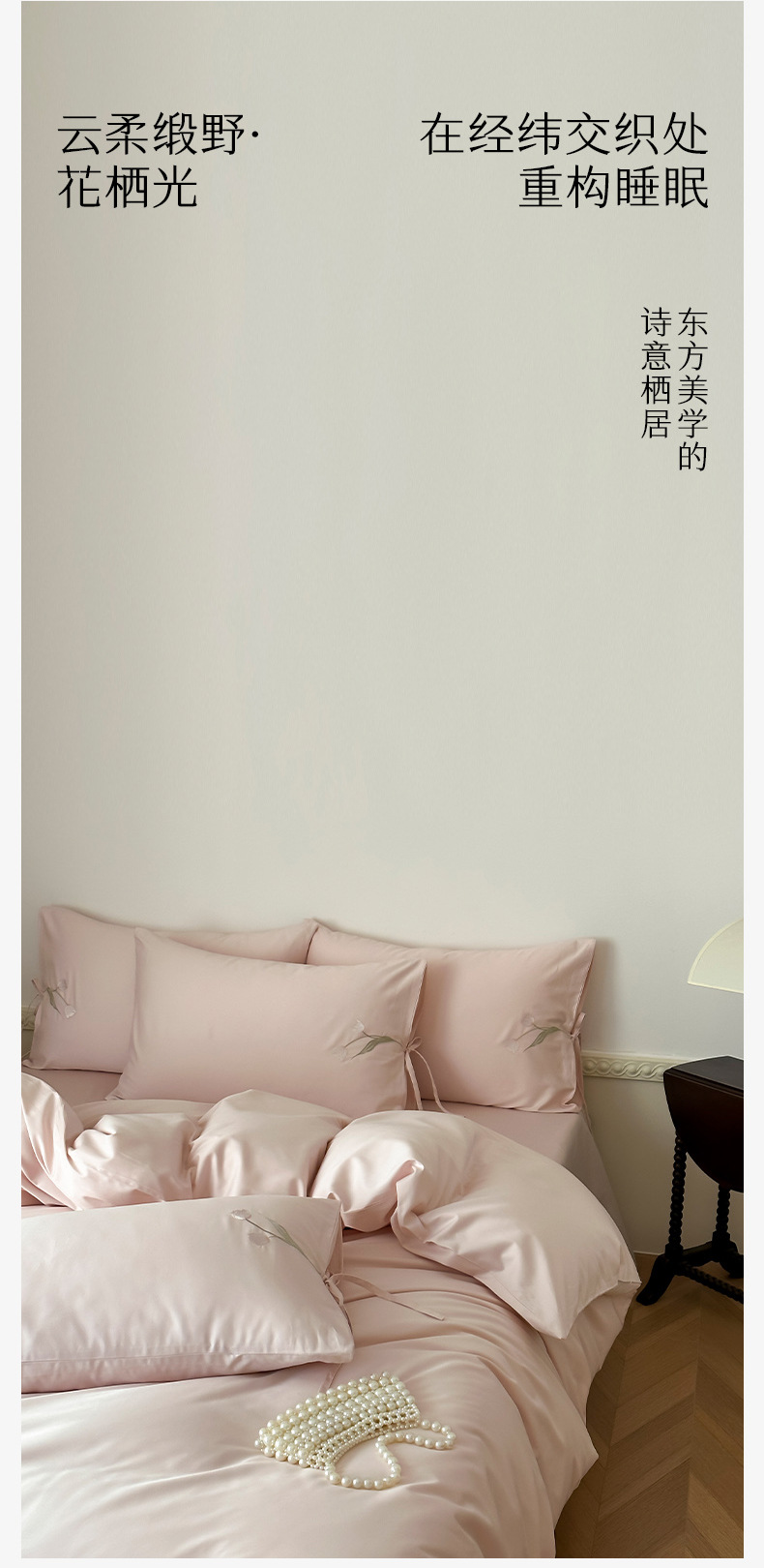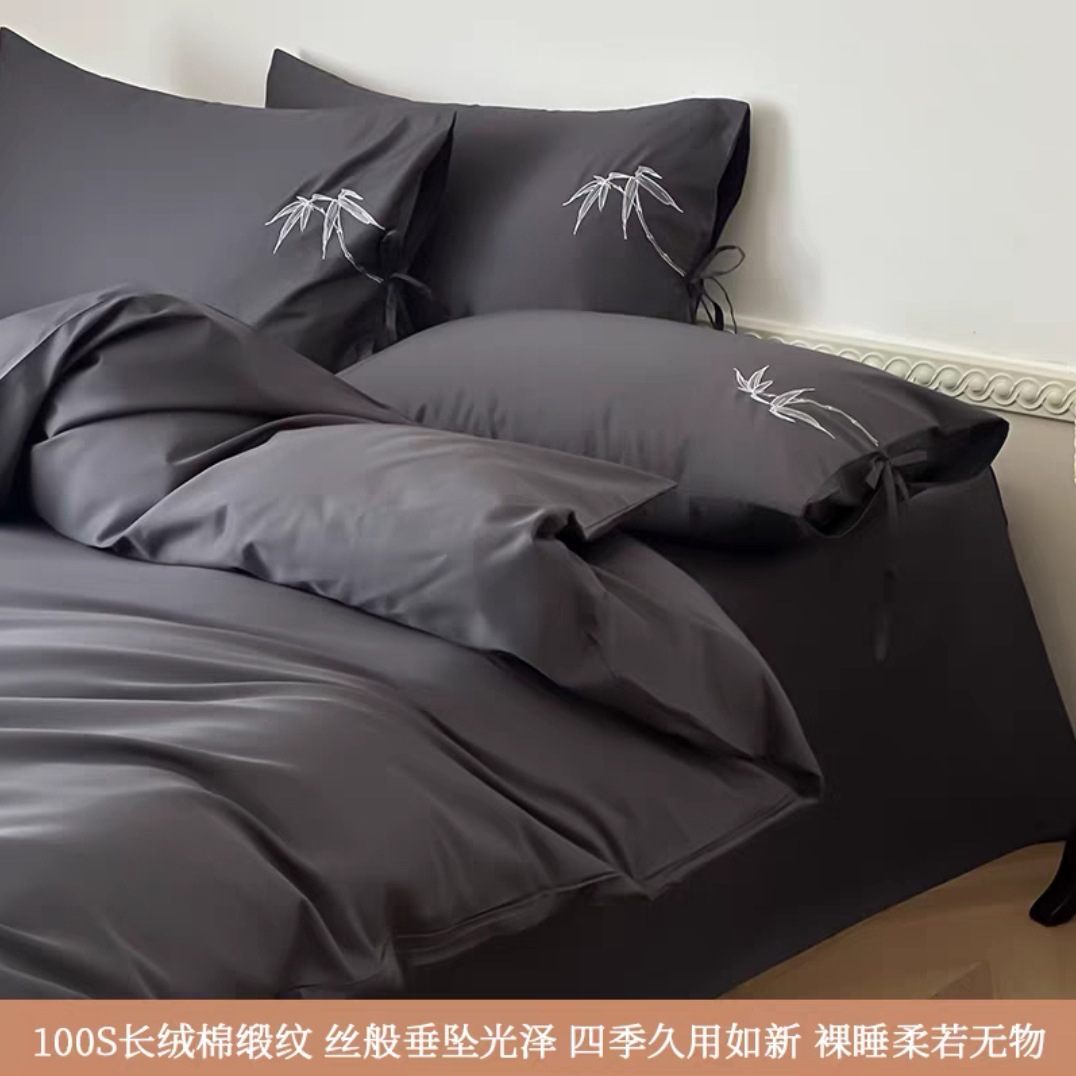 轻奢风100S长绒棉四件套纯棉刺绣花卉被套床单全棉高级感床上用品