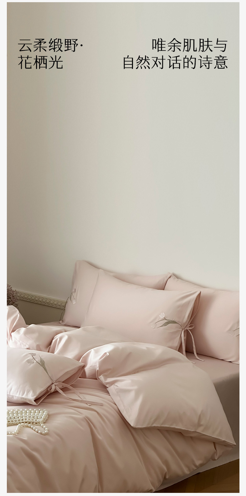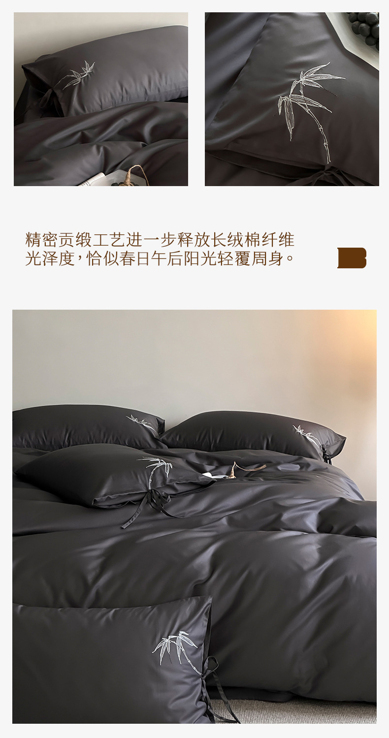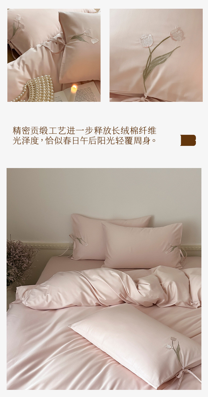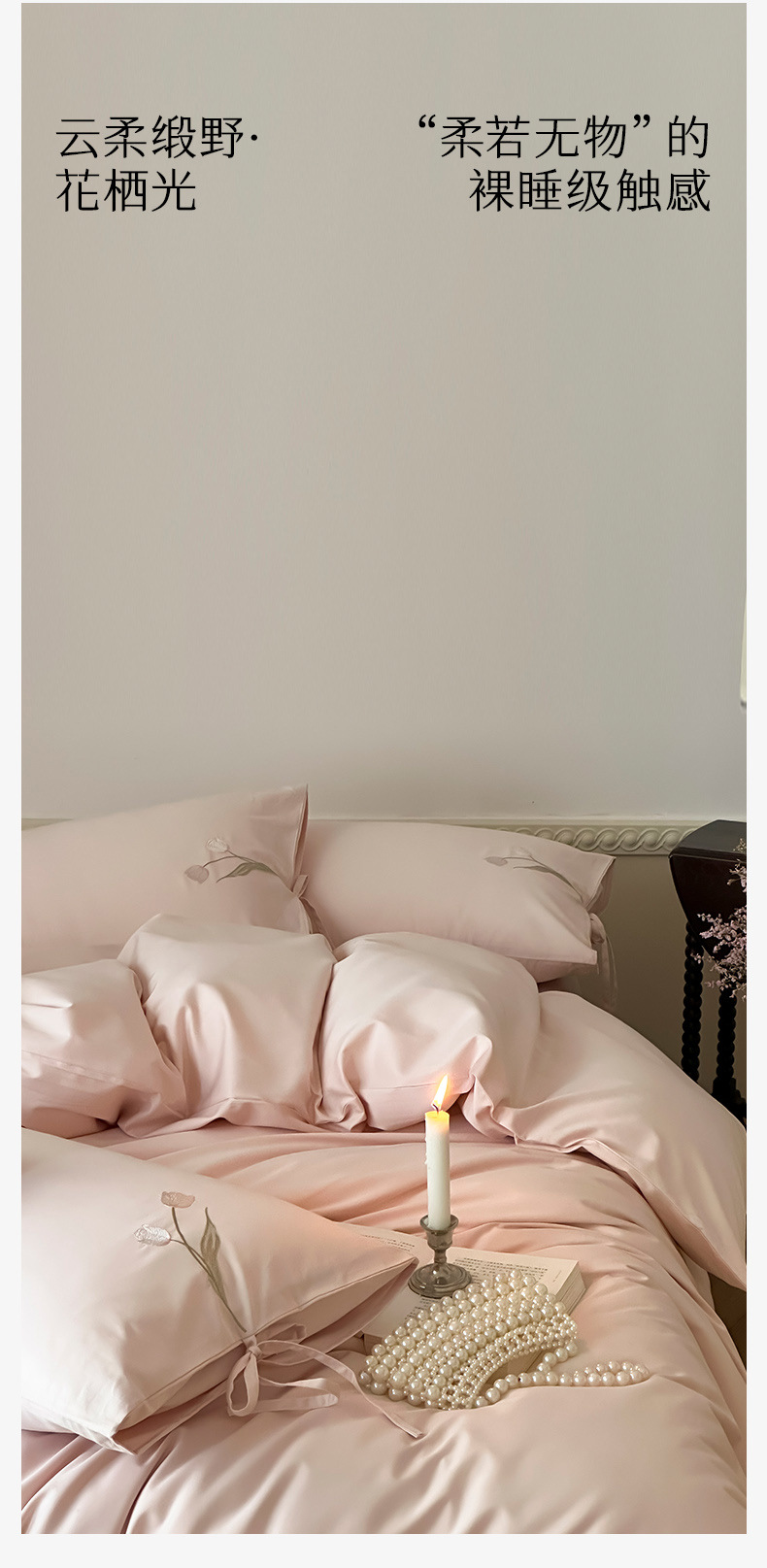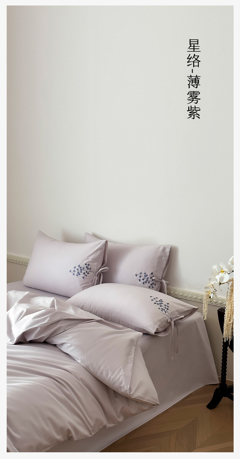 轻奢风100S长绒棉四件套纯棉刺绣花卉被套床单全棉高级感床上用品