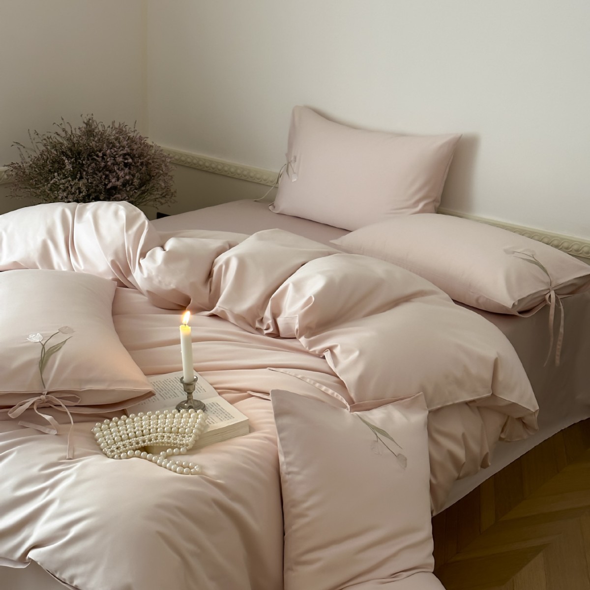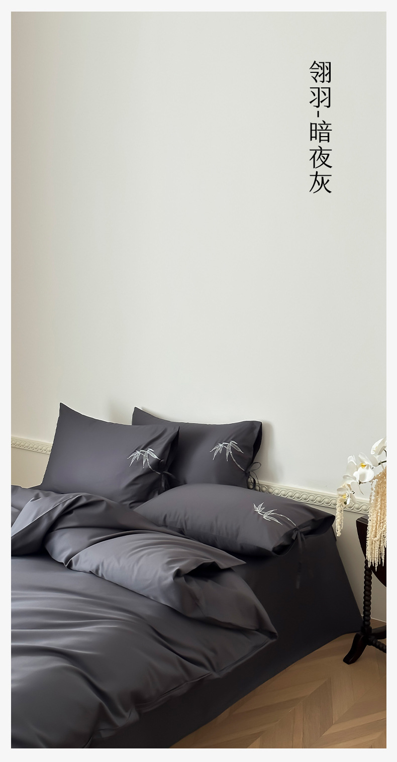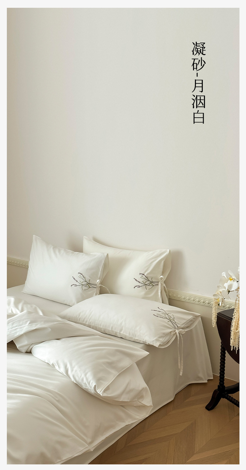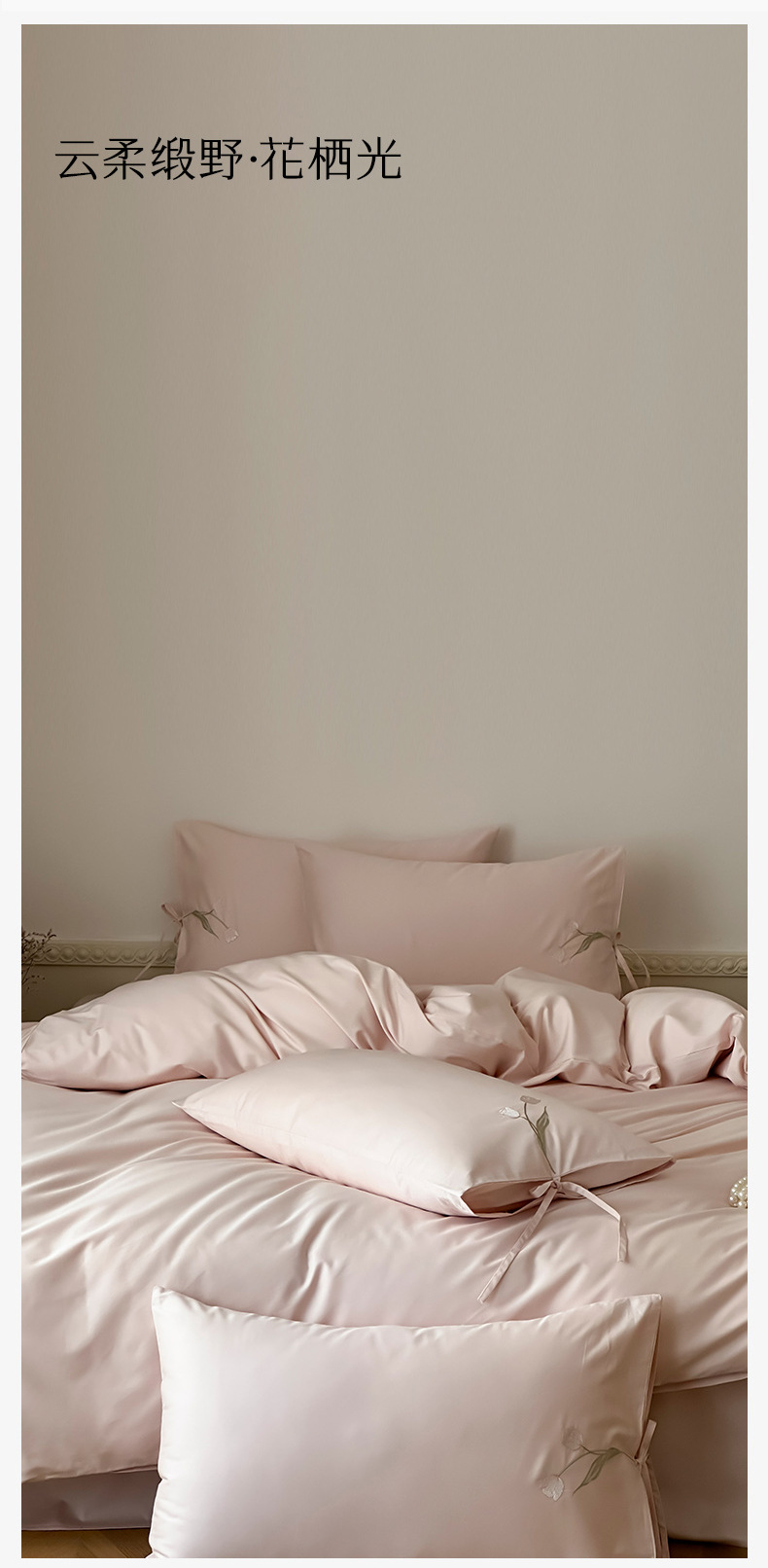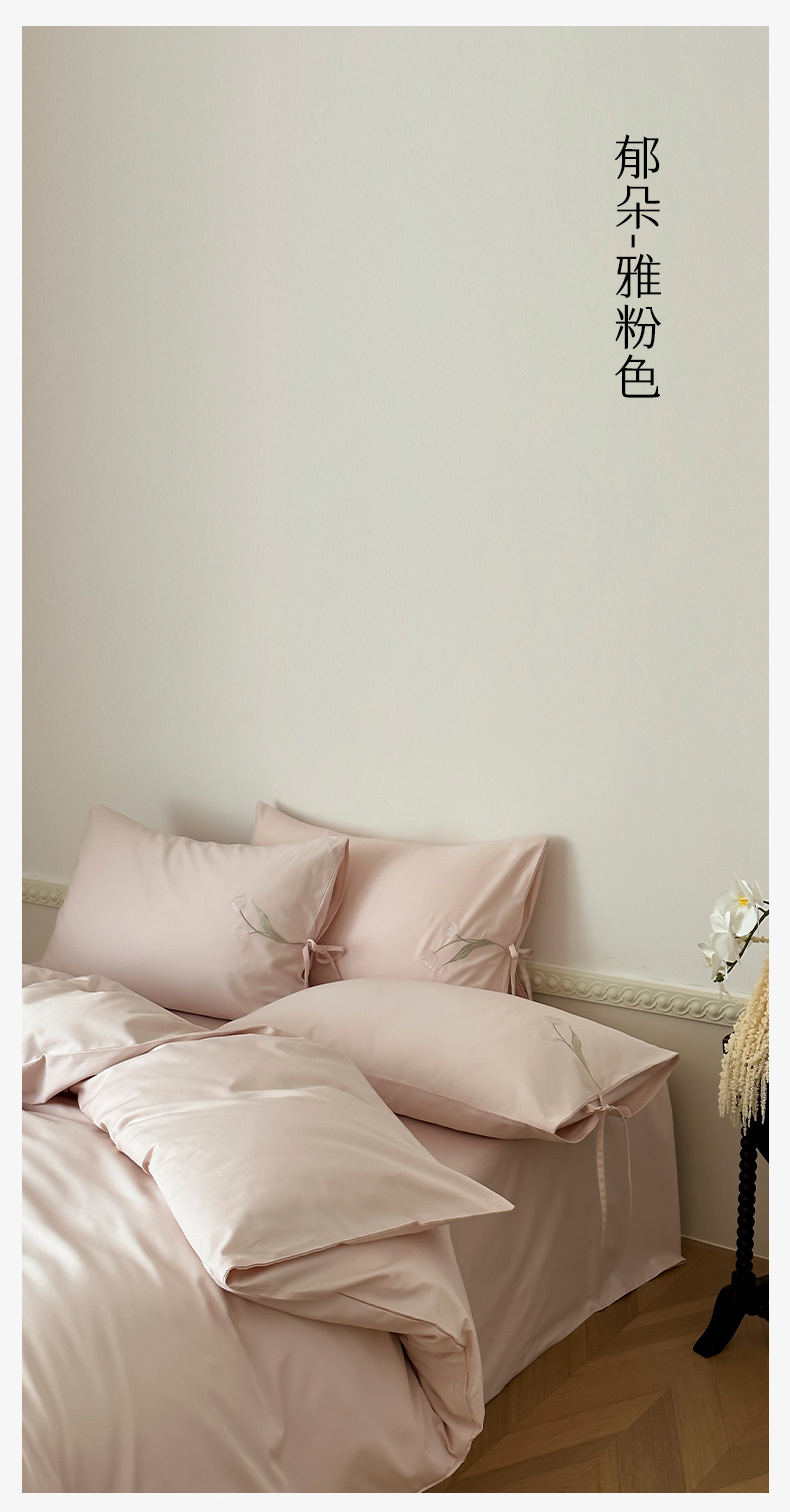 轻奢风100S长绒棉四件套纯棉刺绣花卉被套床单全棉高级感床上用品