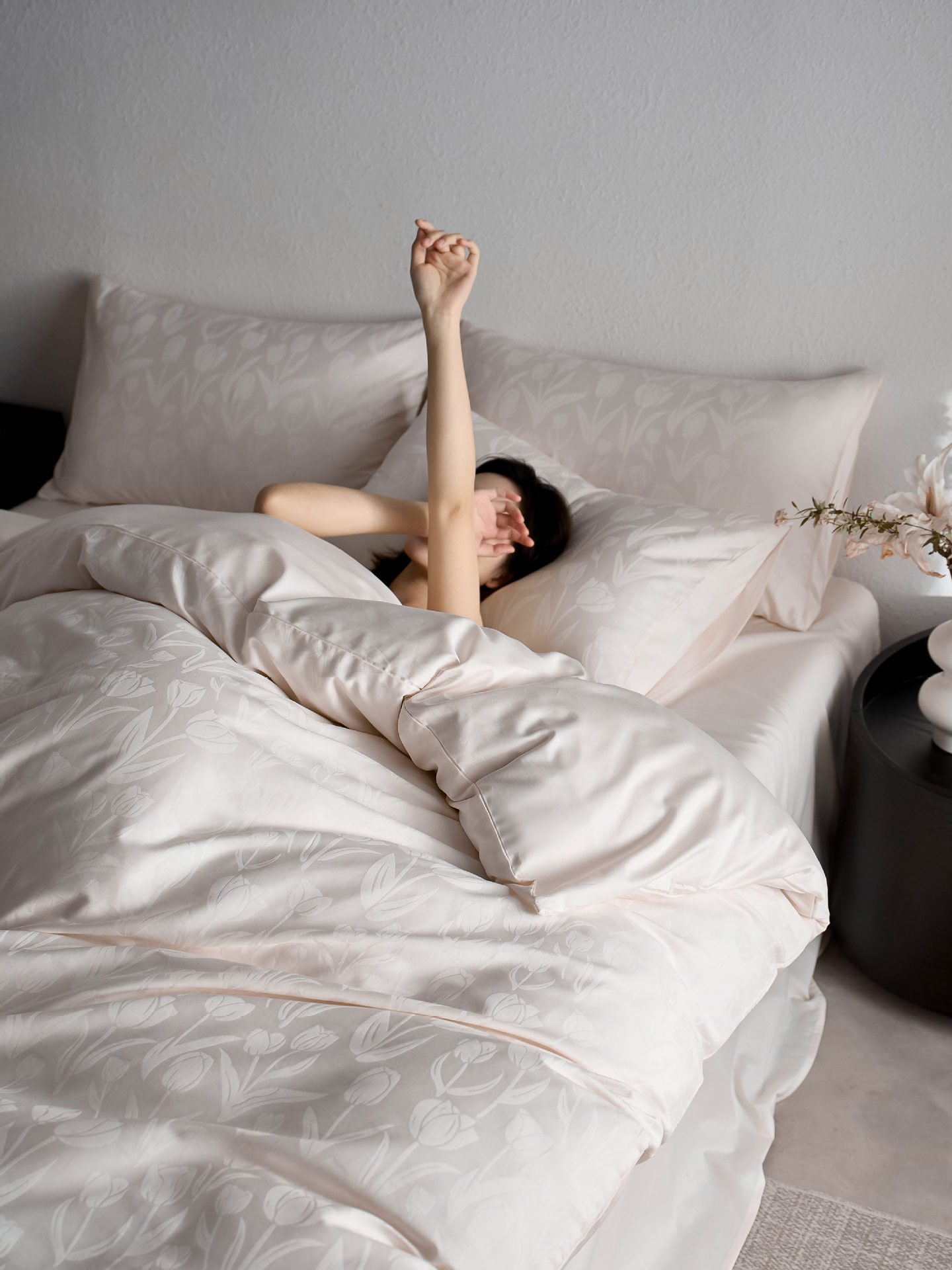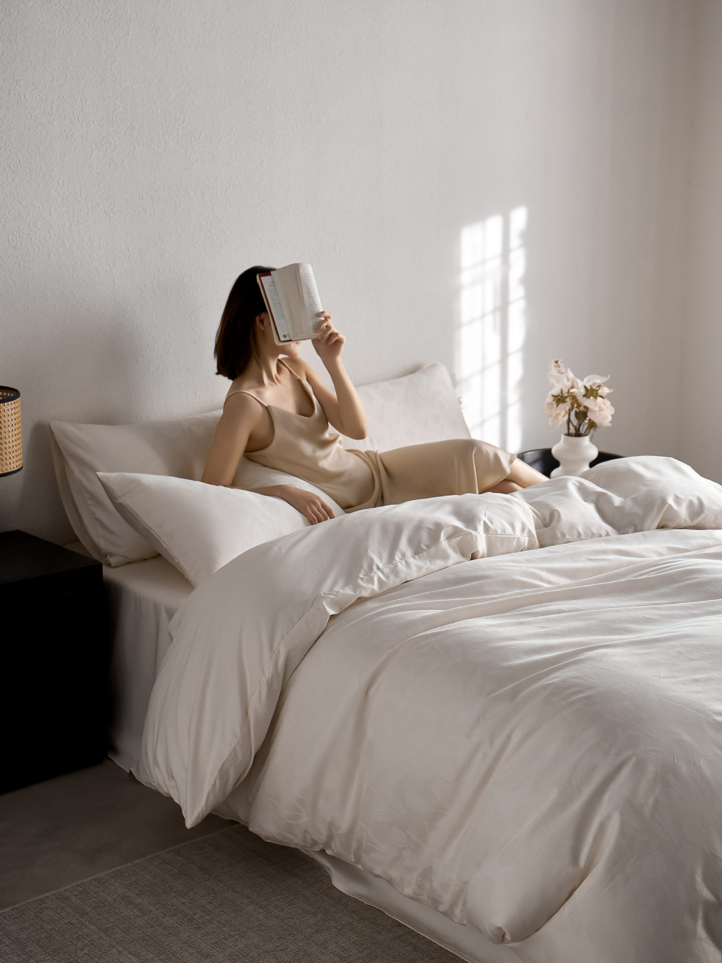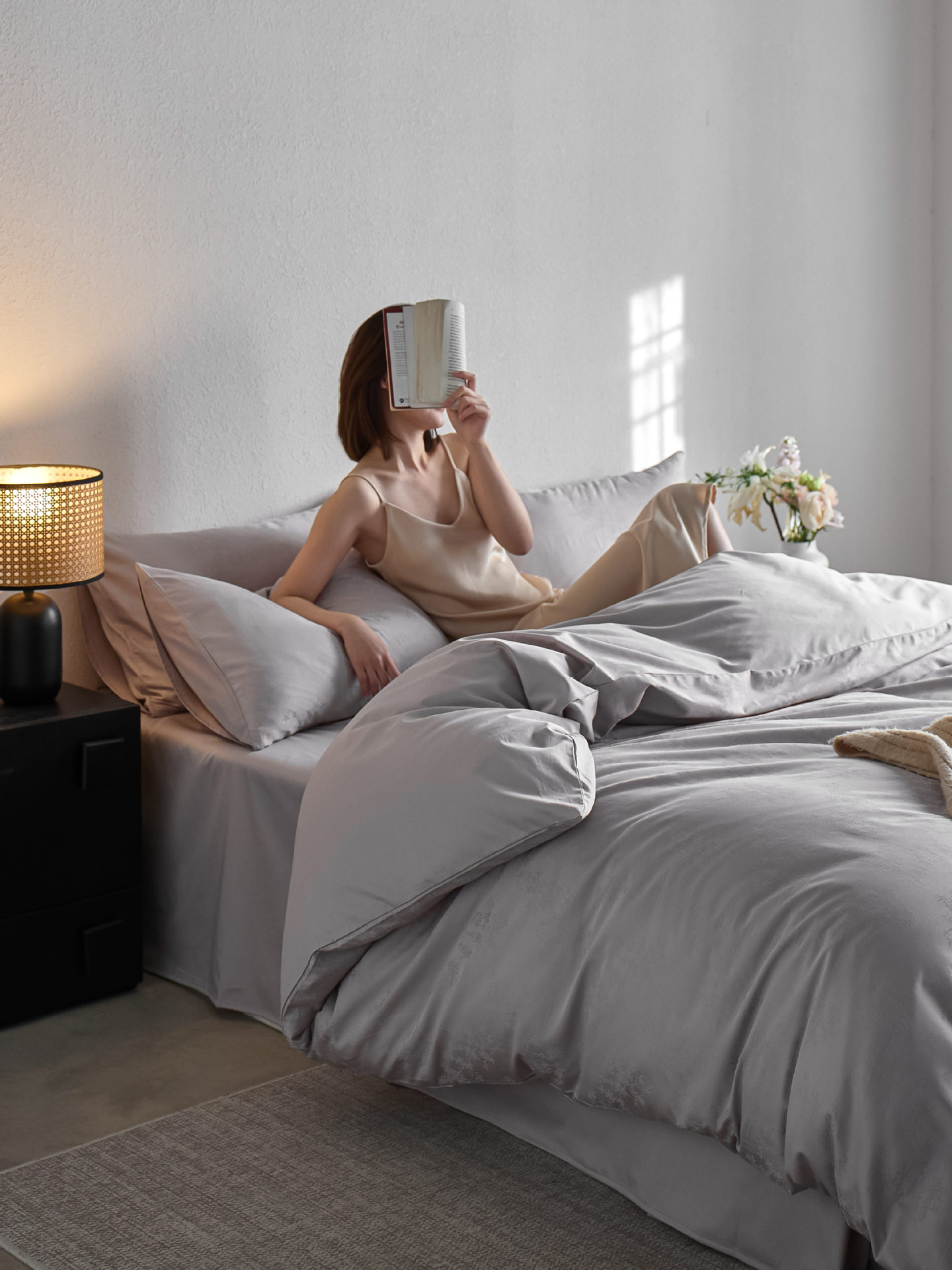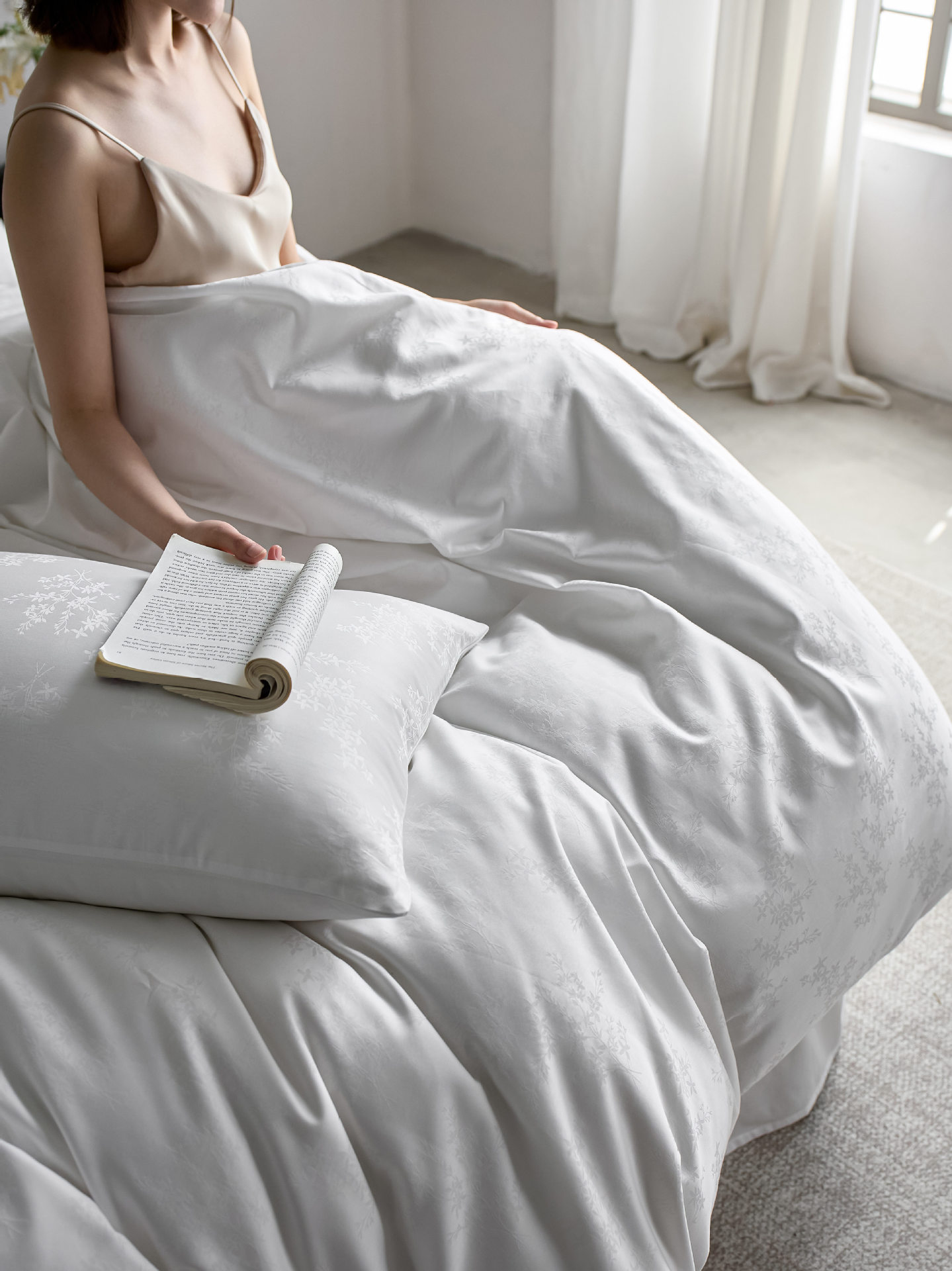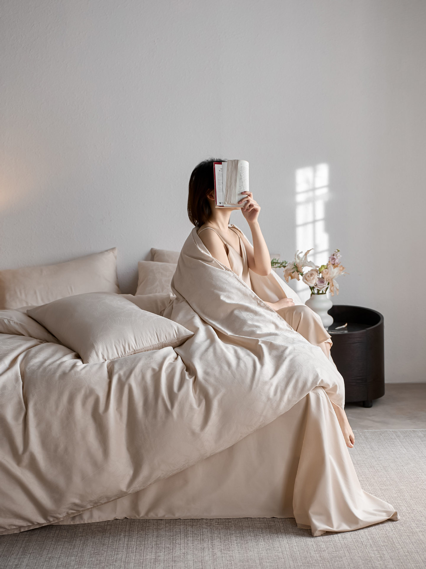 100S新疆长绒棉全棉贡缎提花四件套高端轻奢被套床笠纯棉四季款