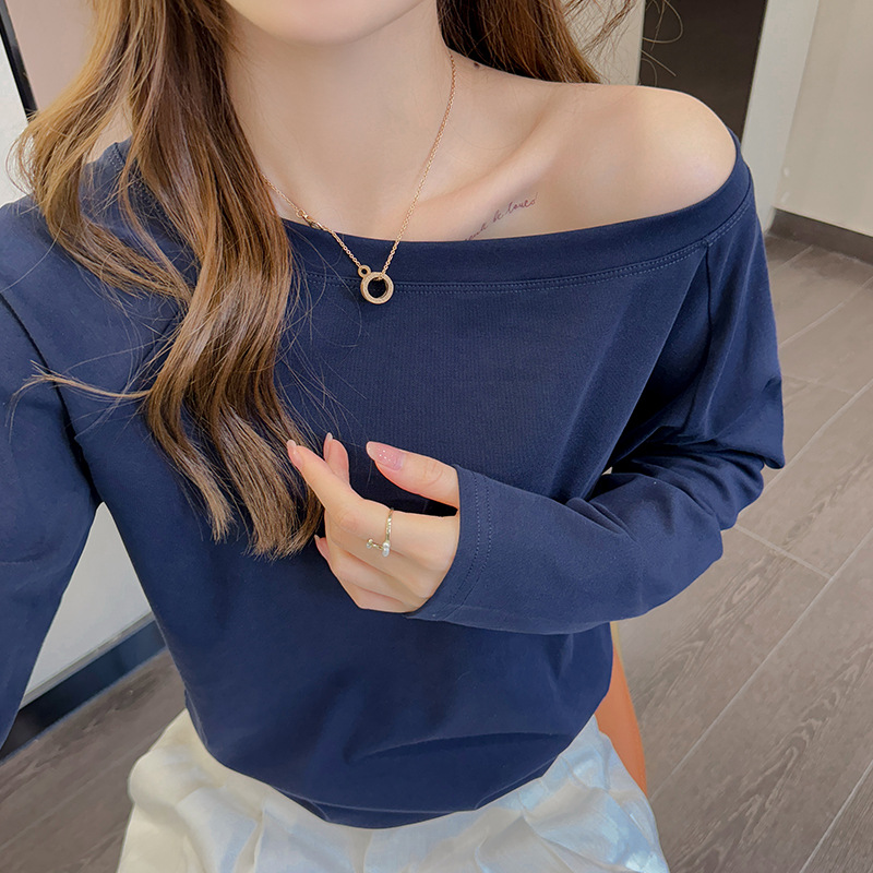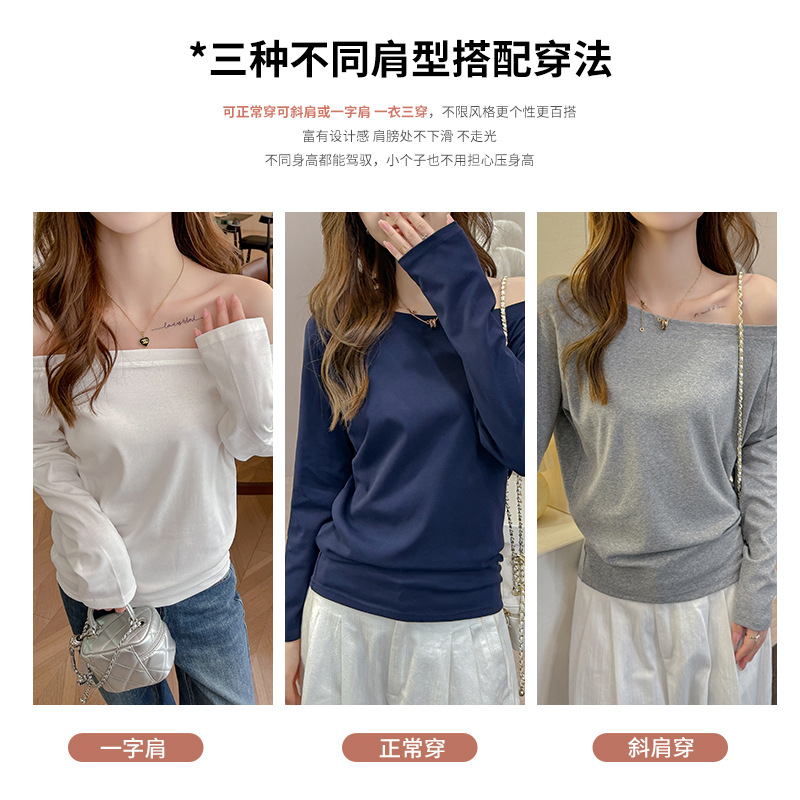 新款早春秋季露肩设计感长袖t恤女装打底衫高级感宽松可外穿上衣