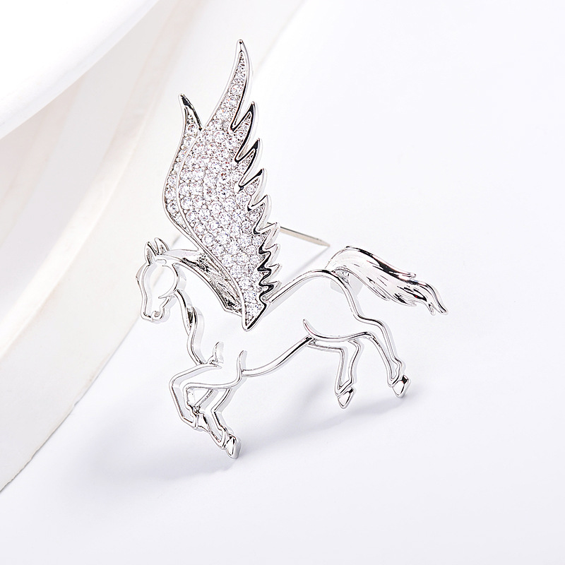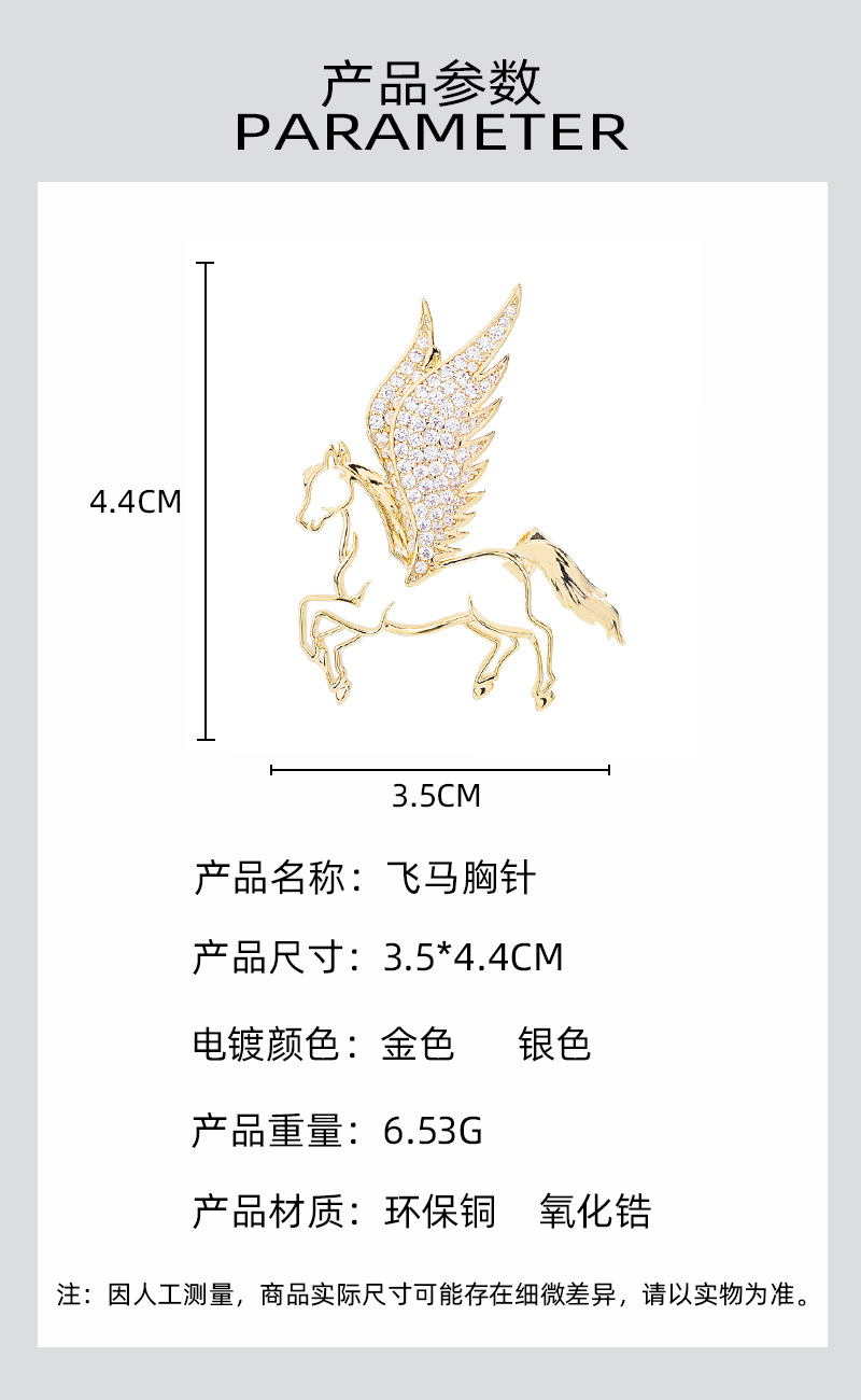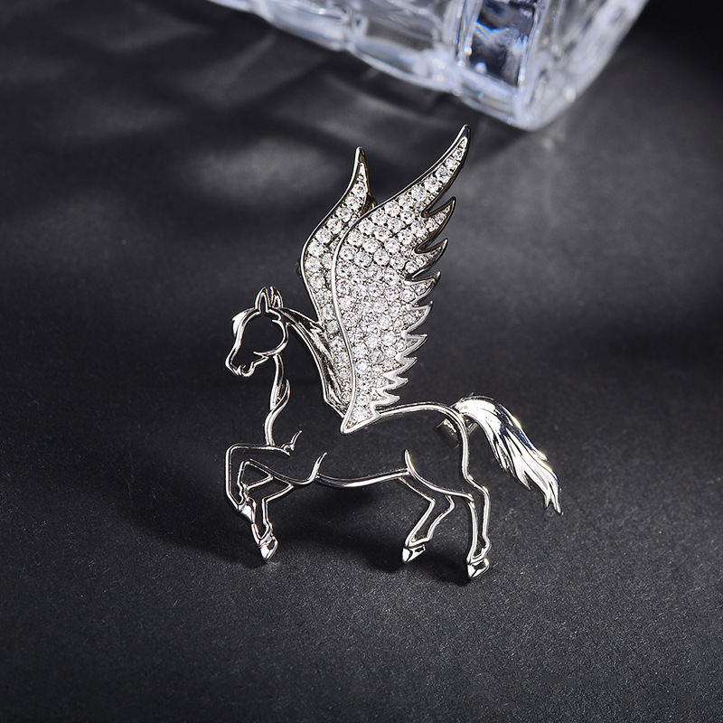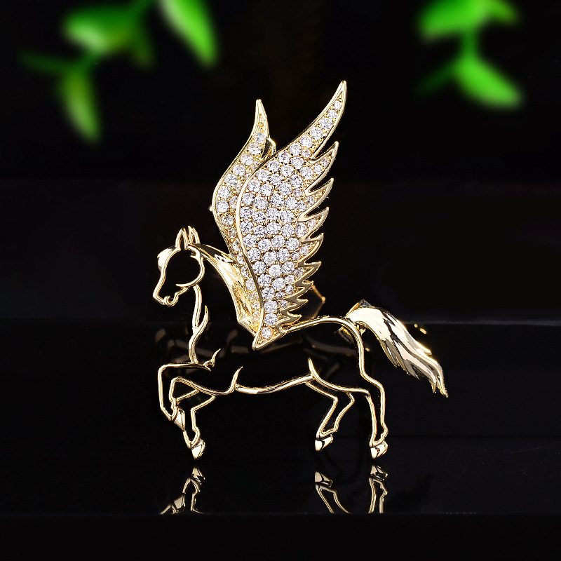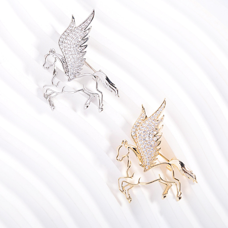 时尚创意感简约飞马胸针精致微镶锆镂空胸花高档男士西装外套配饰