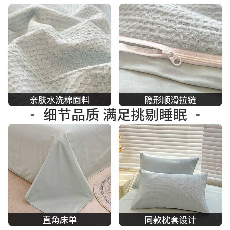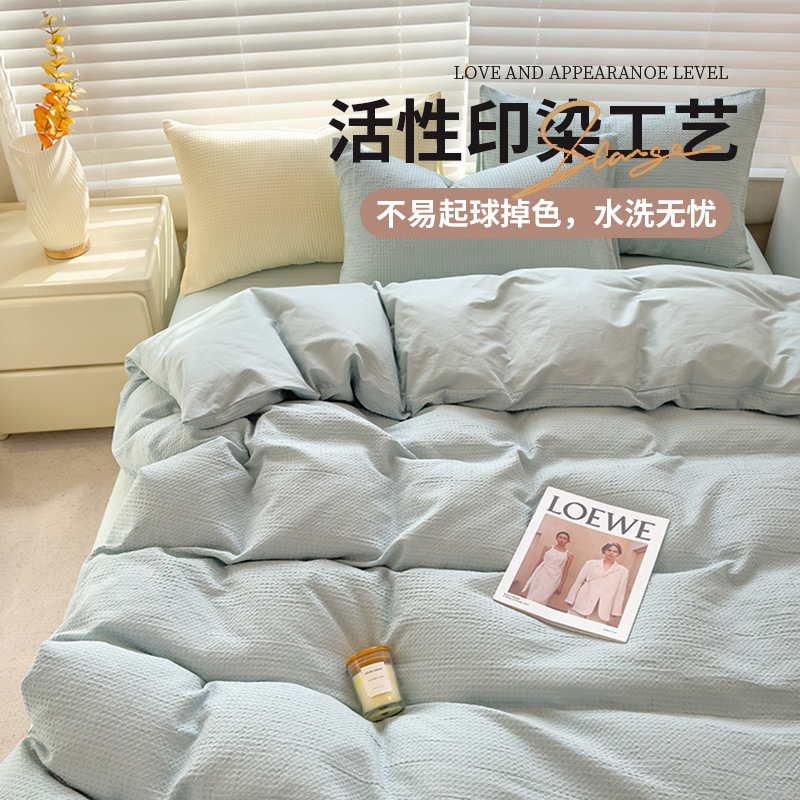 高克重华夫格四件套单品床单被套枕套学生宿舍纯色可机水洗三件套