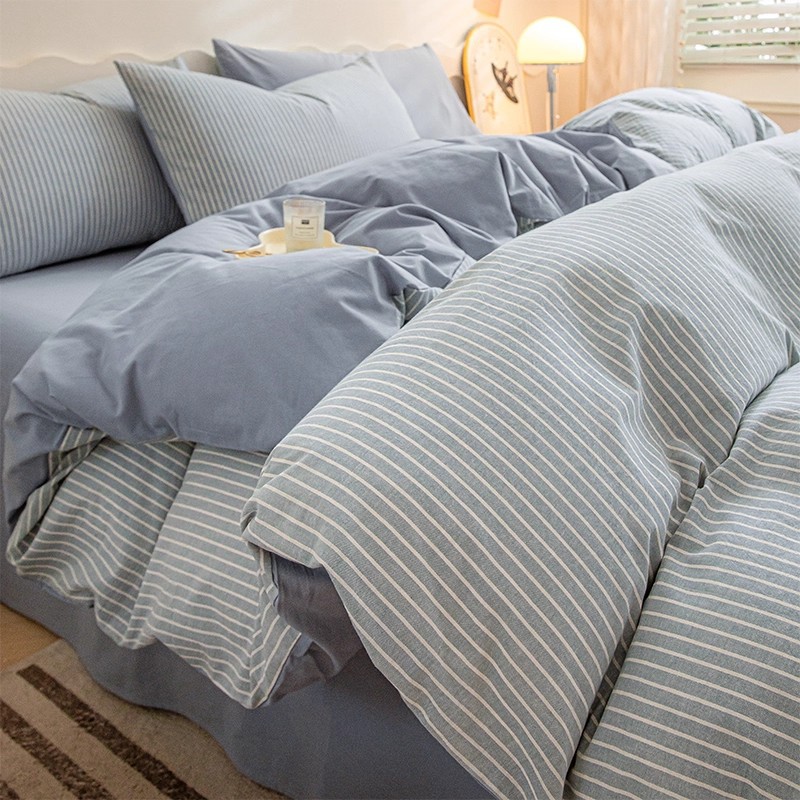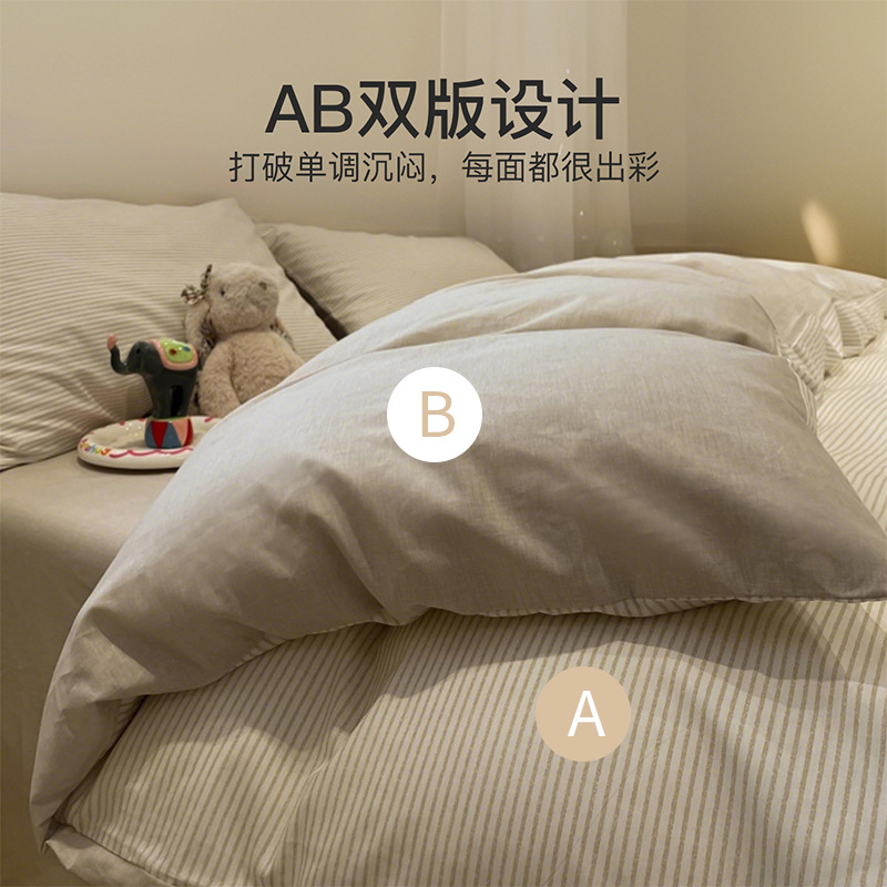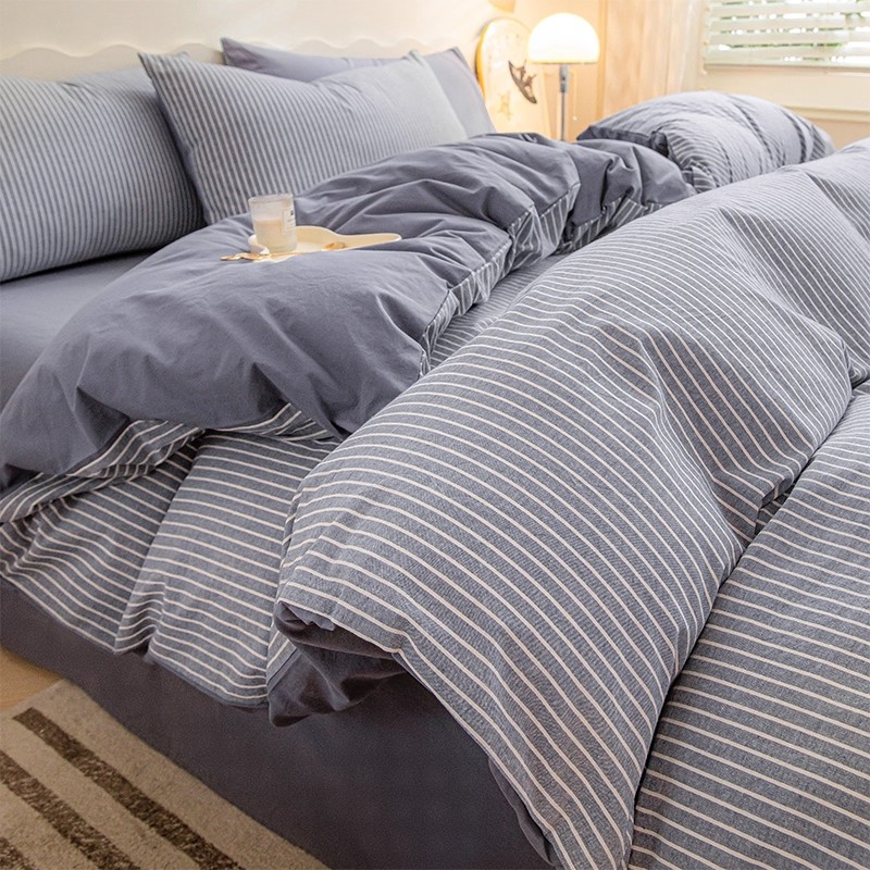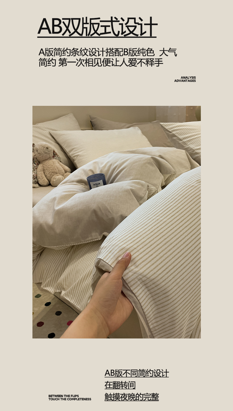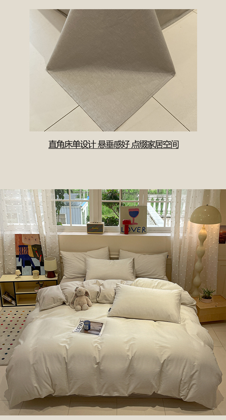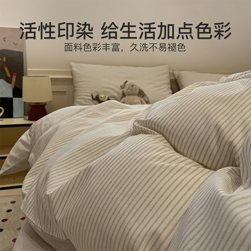 简约条纹纯棉四件套全棉2025新款床单被套床上用品宿舍三件套