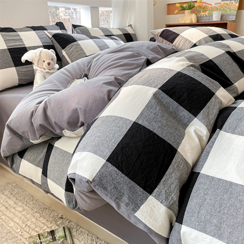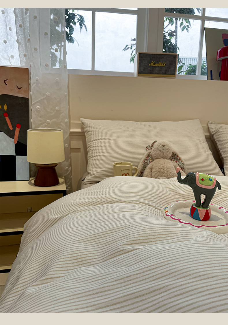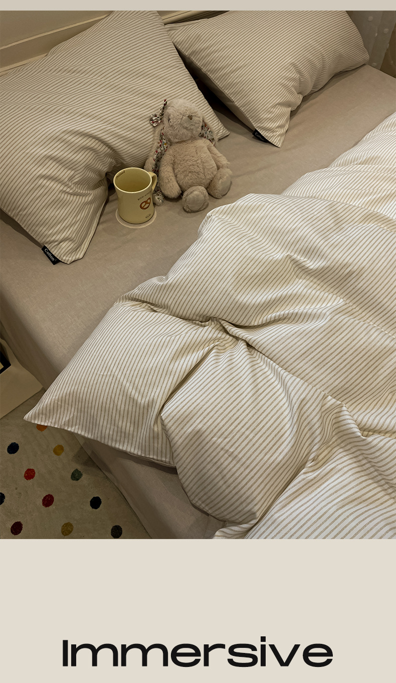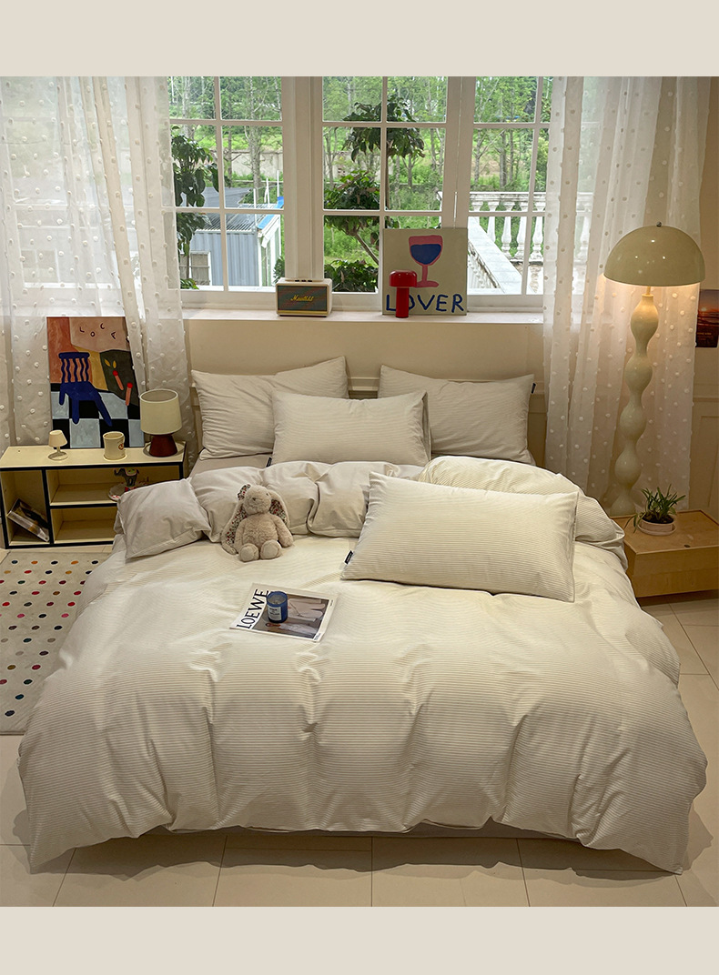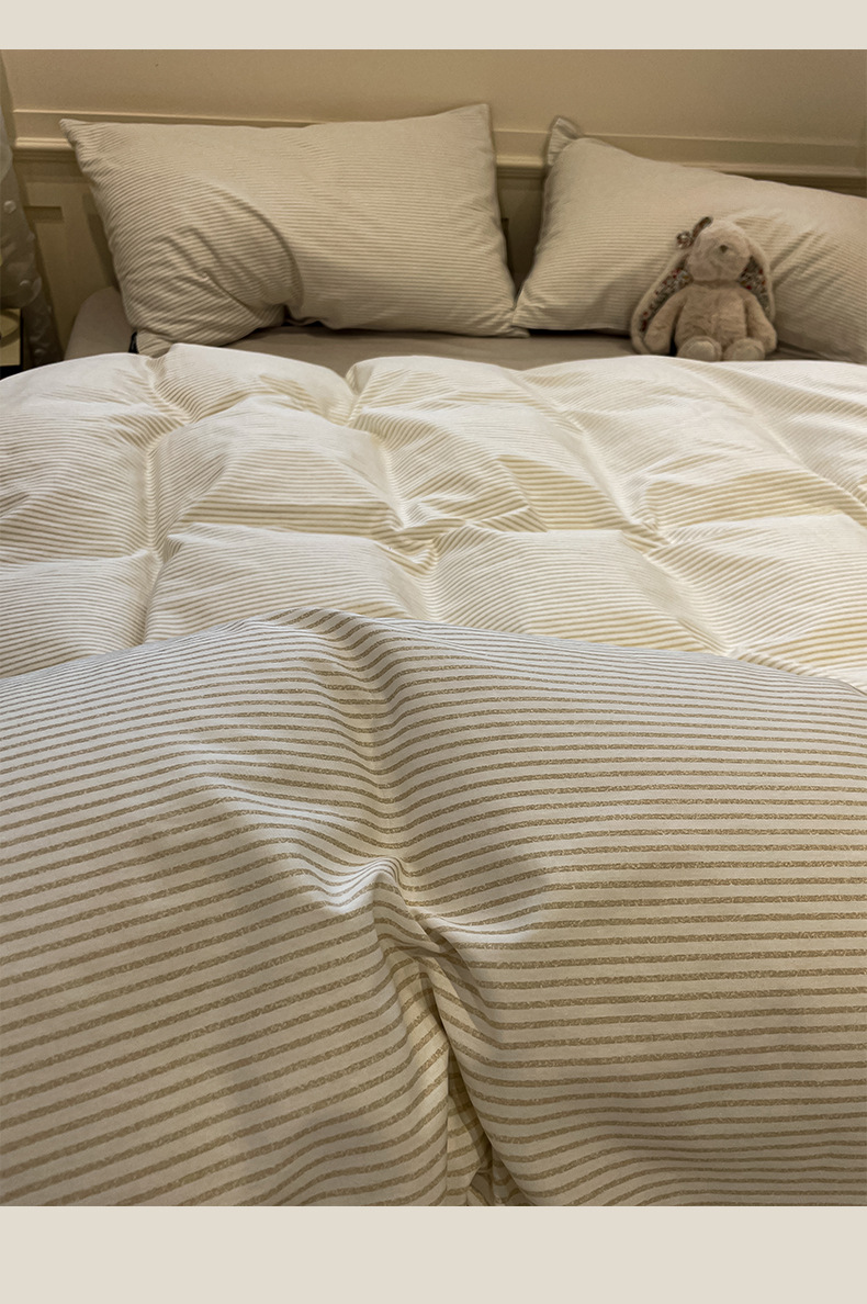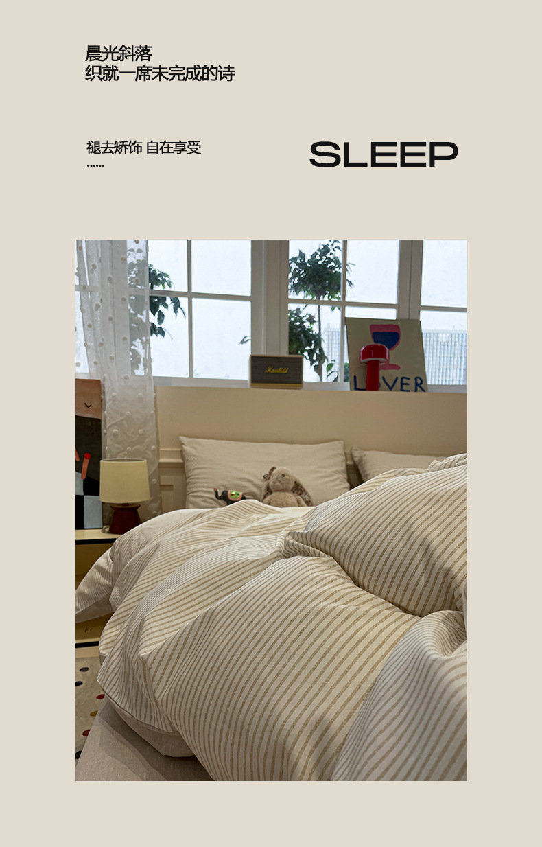 简约条纹纯棉四件套全棉2025新款床单被套床上用品宿舍三件套