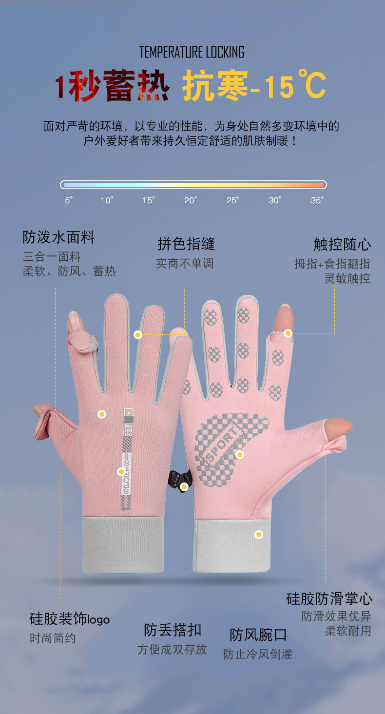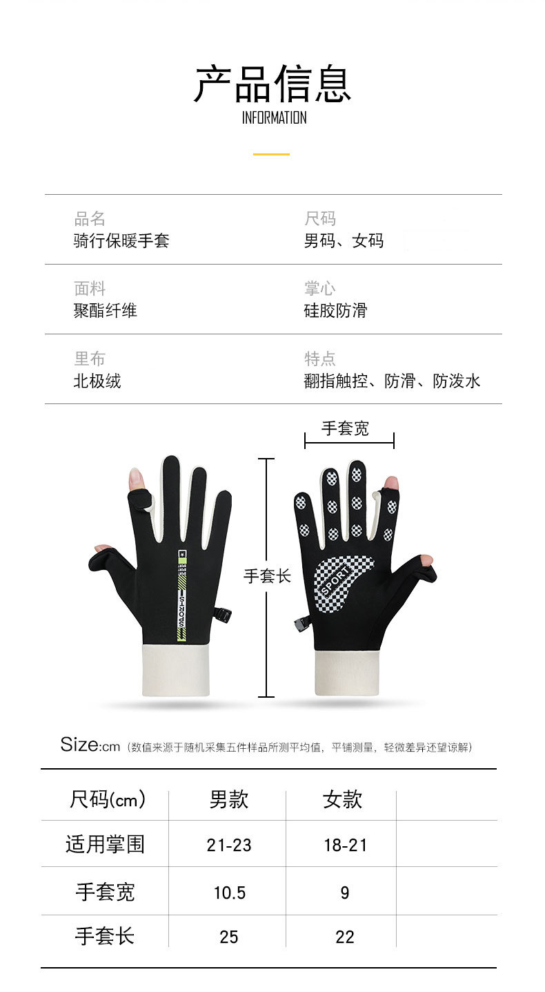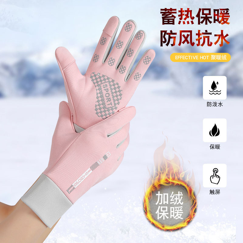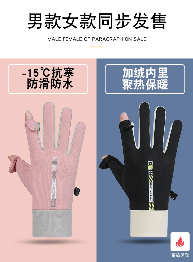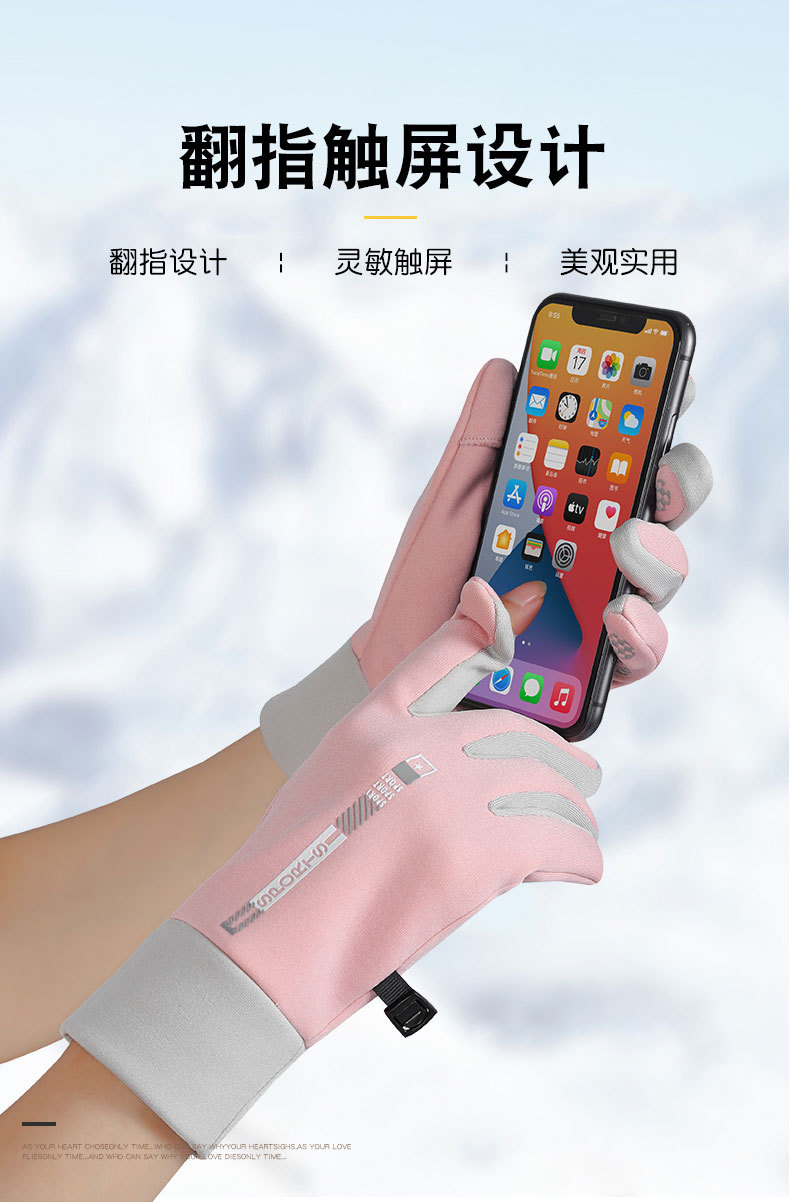 冬季保暖手套情侣款翻盖加绒防寒防泼水加厚骑行加绒手套户外