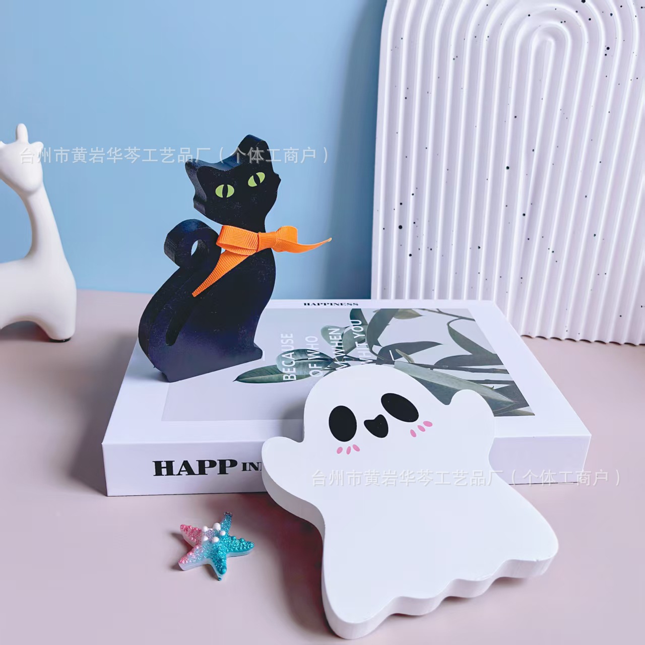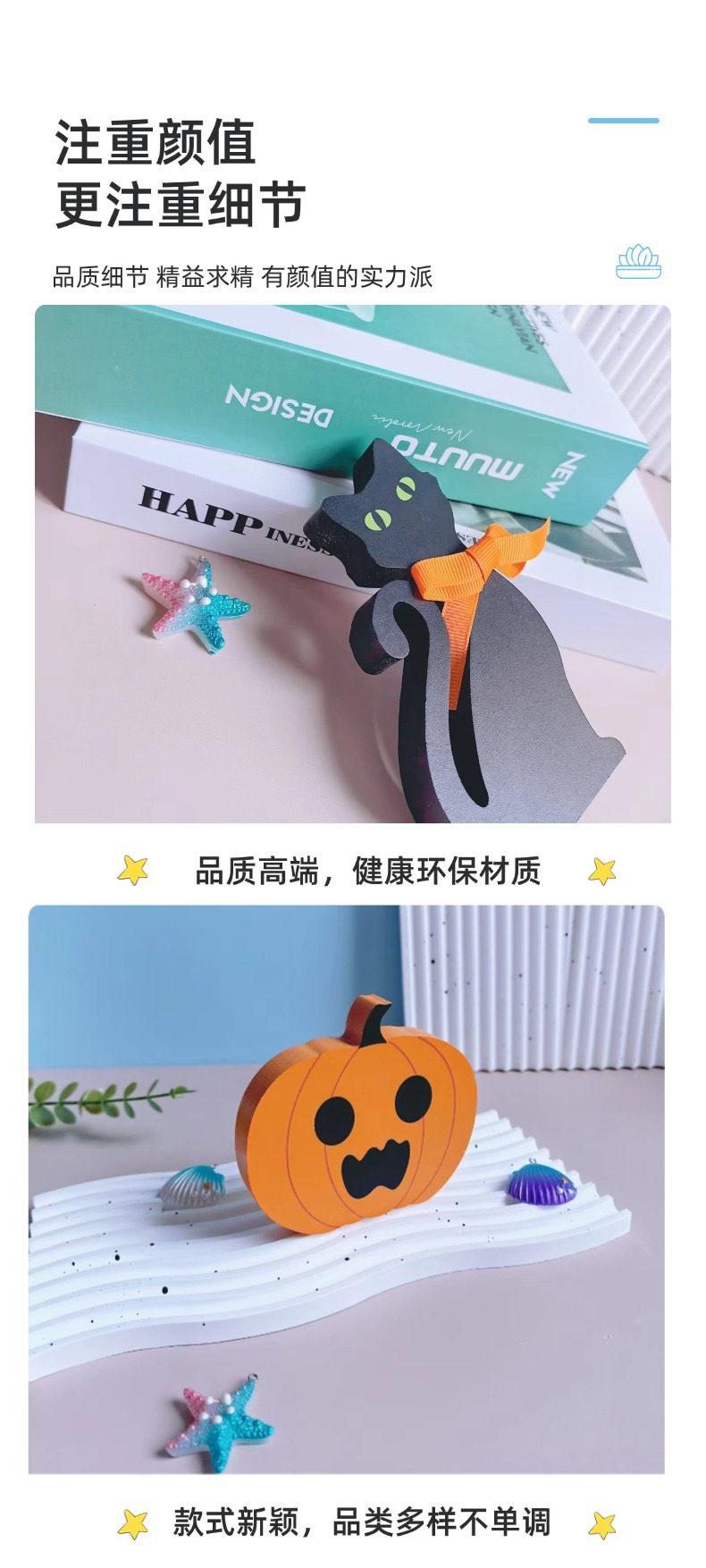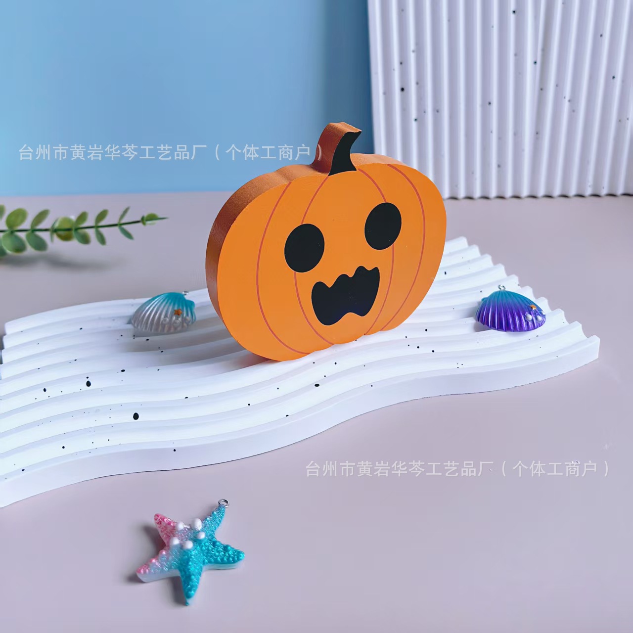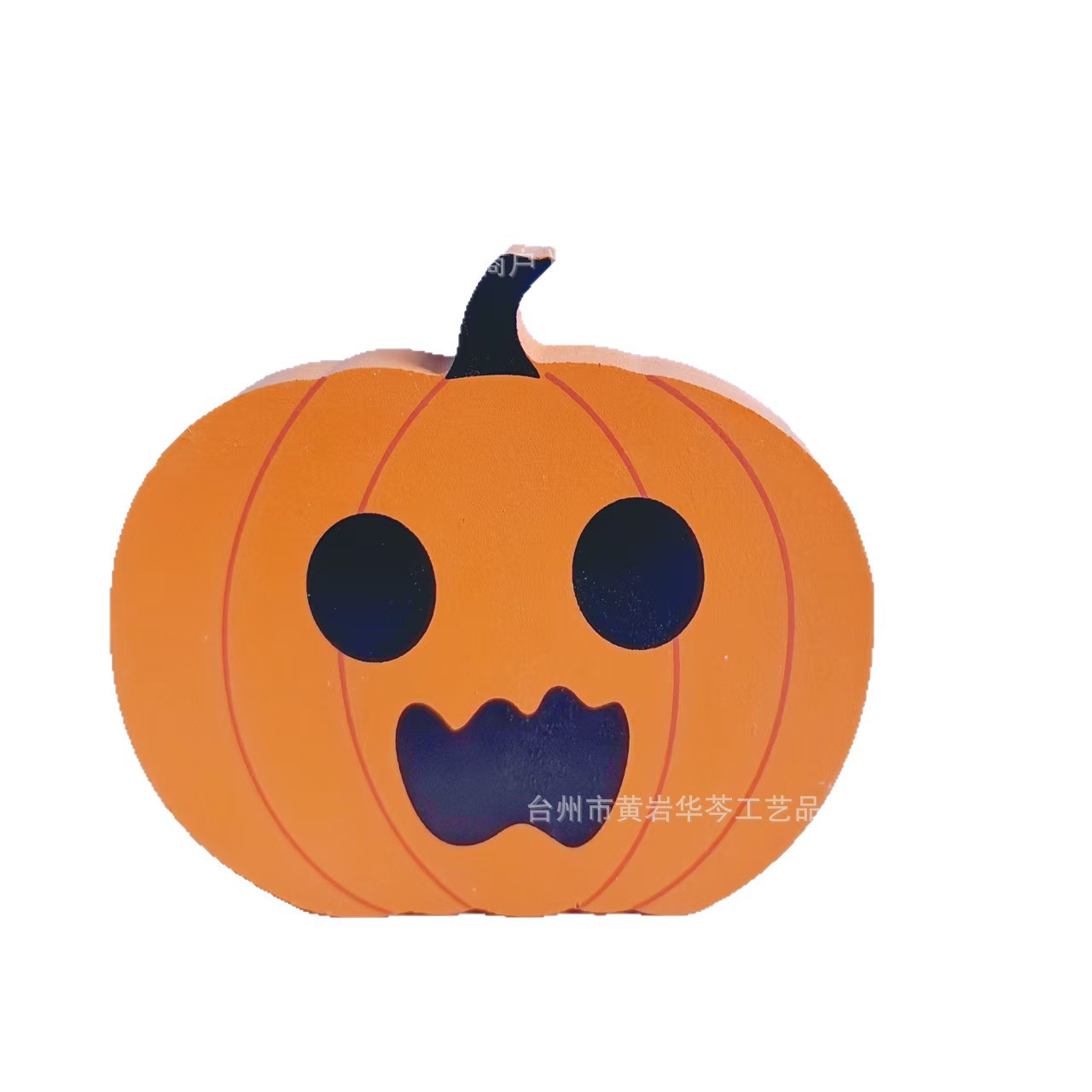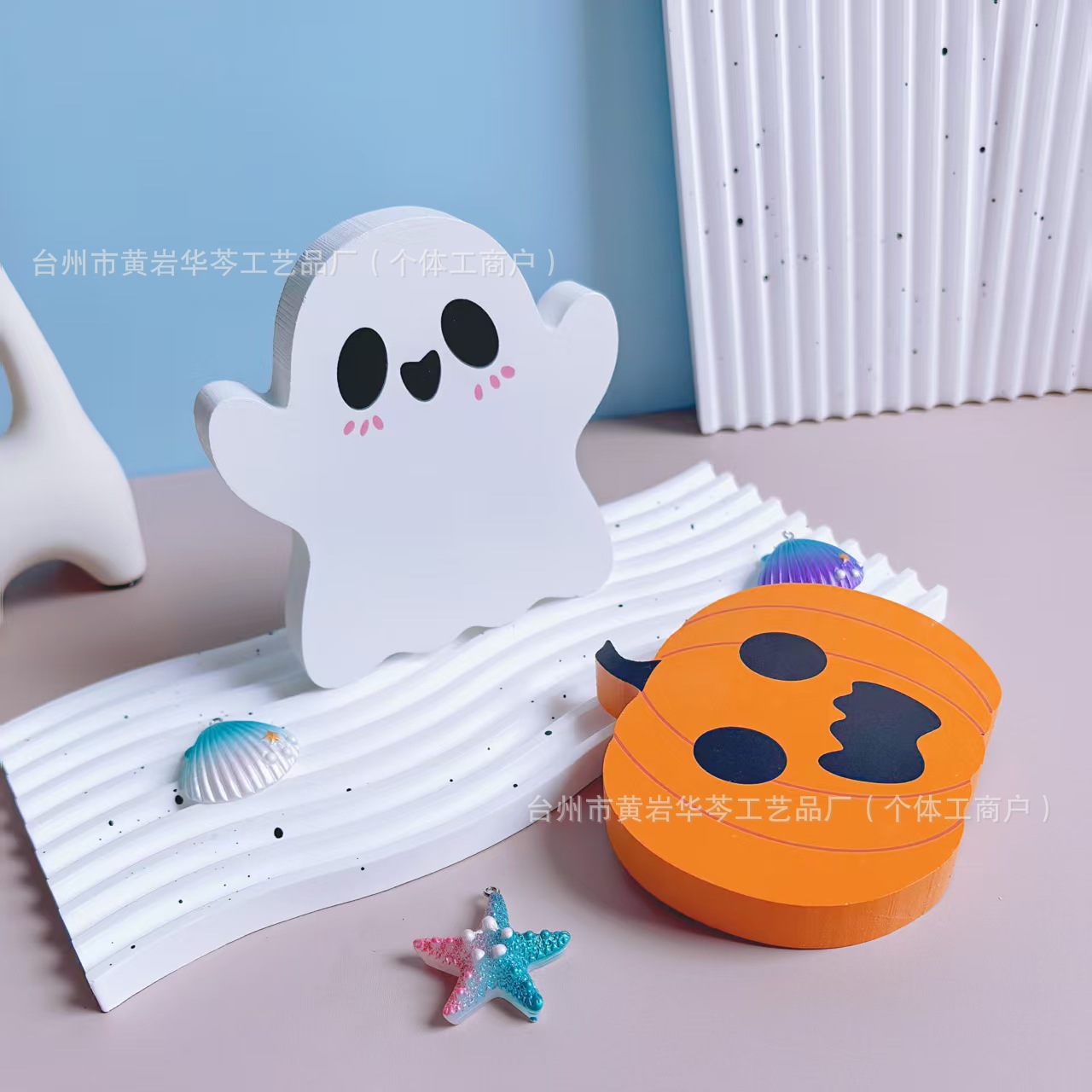 亚马逊爆款万圣节装饰用品南瓜木质摆件幽灵桌面摆件木制工艺品