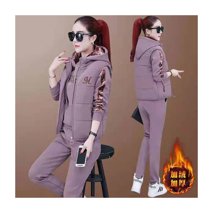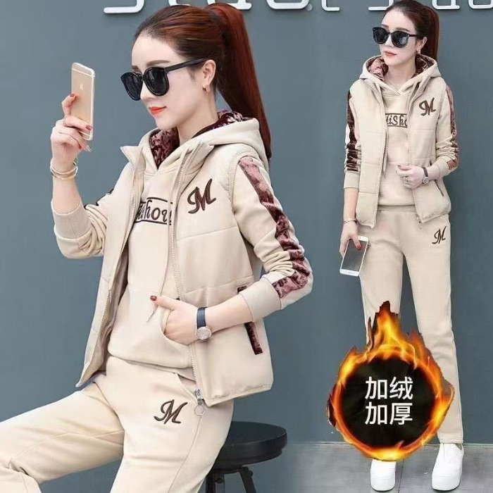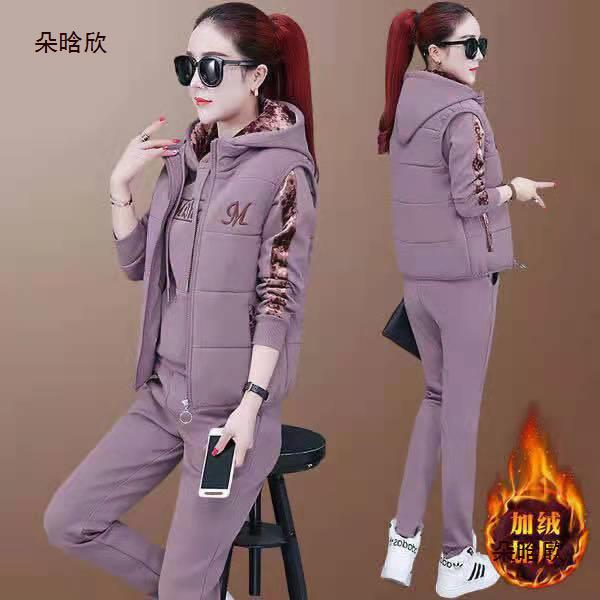 三件套新款女装加绒加厚冬季连帽卫衣女休闲保暖运动服时尚套装潮