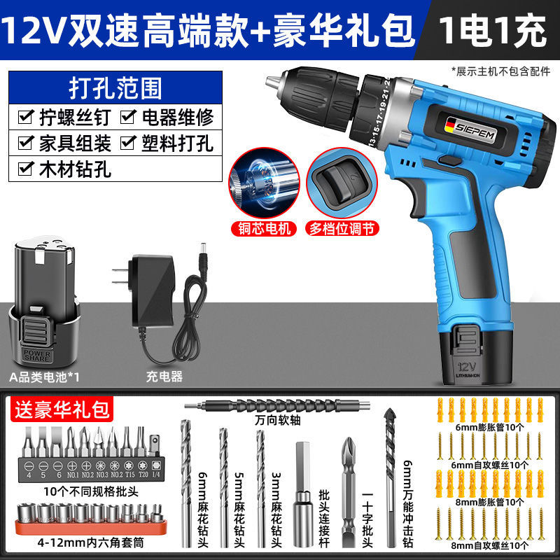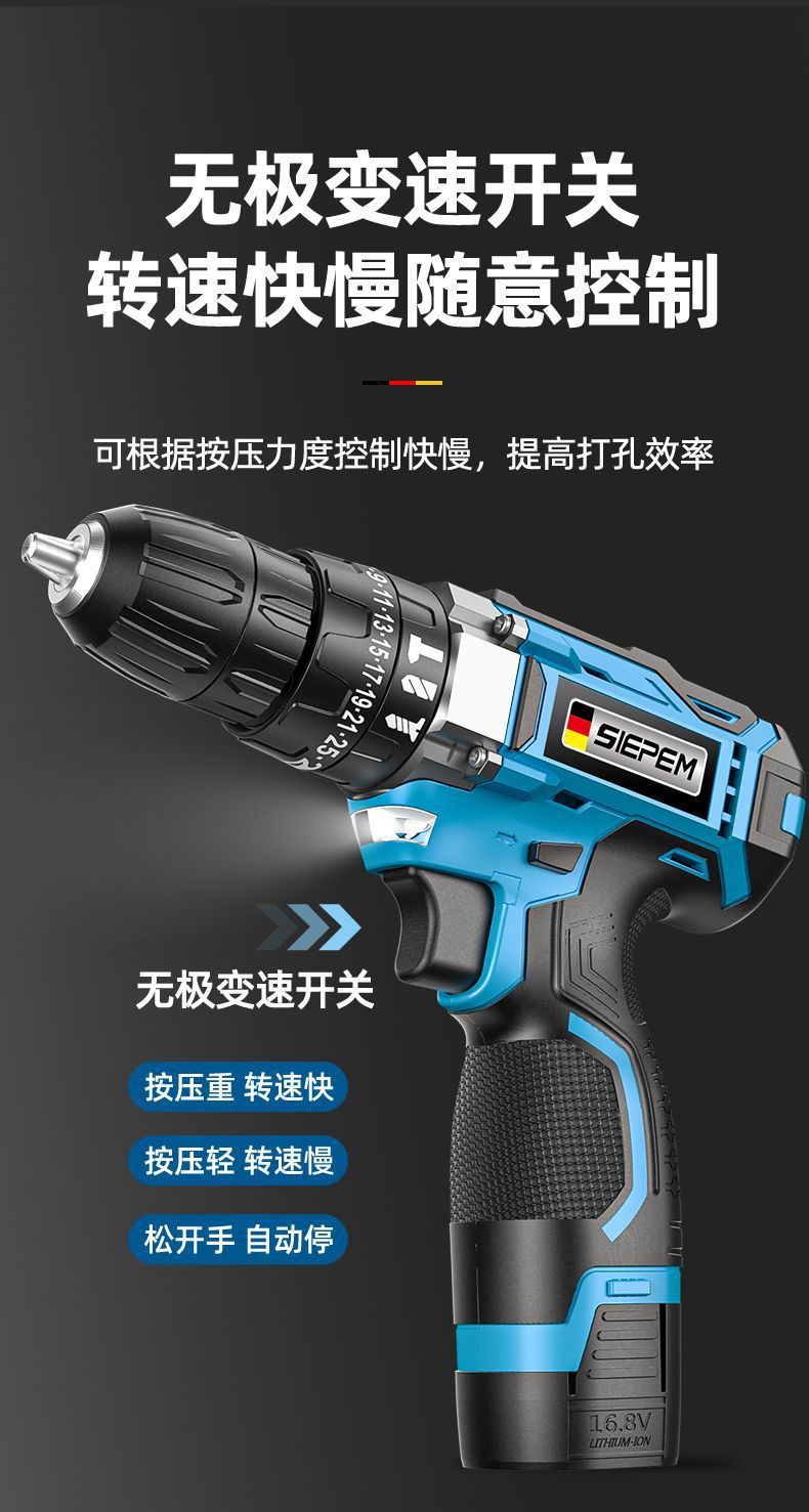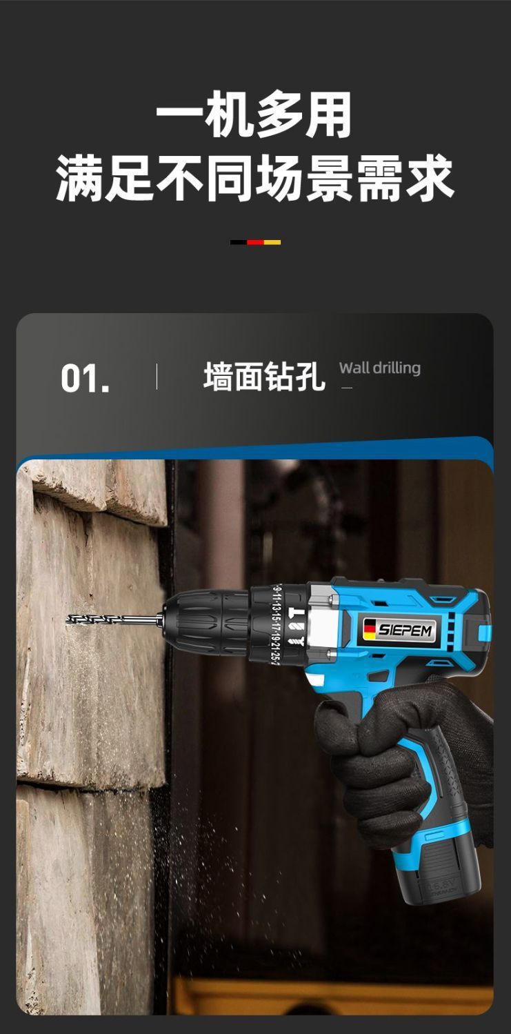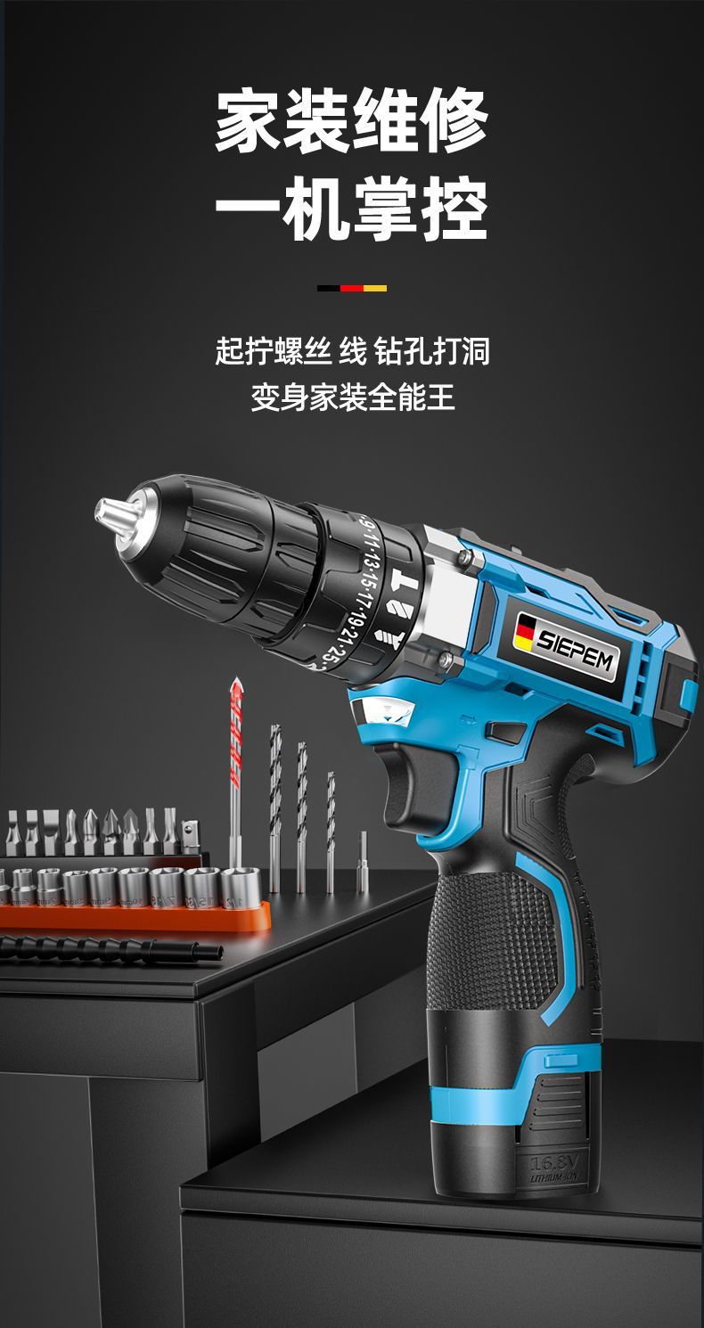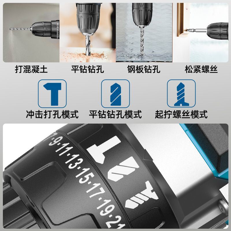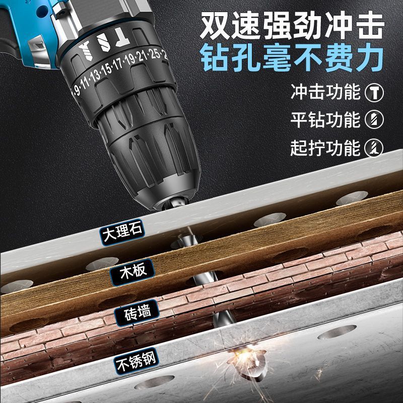 手电钻转家用电钻充电式工具锂电多功能冲击手枪钻电动螺丝刀外贸