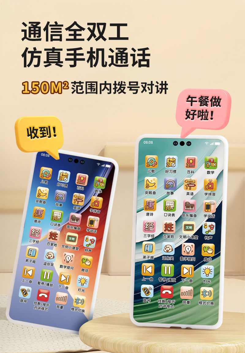 源头工厂儿童对讲机玩具仿真多功能智能手机玩具蓝牙语音对讲录音