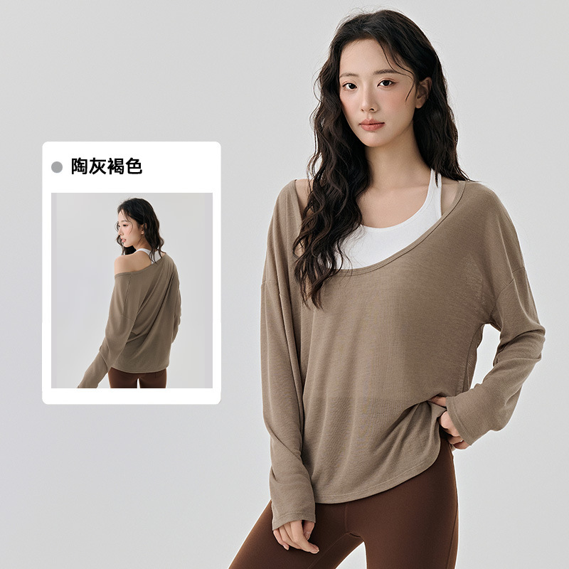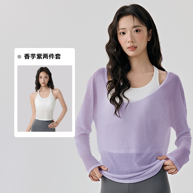 瑜伽服女套装高级感叠穿两件套透气长袖罩衫普拉提带胸垫运动背心