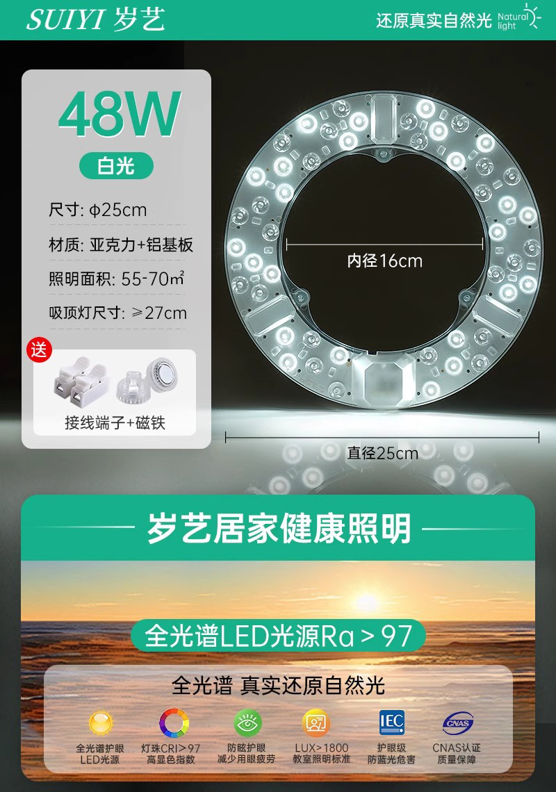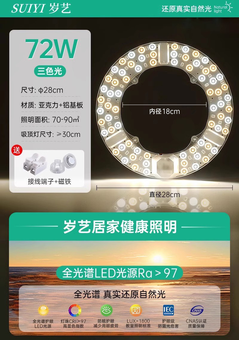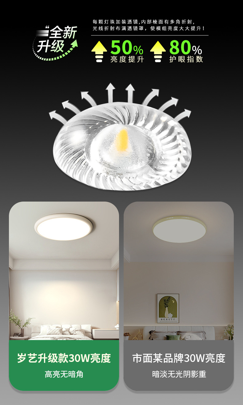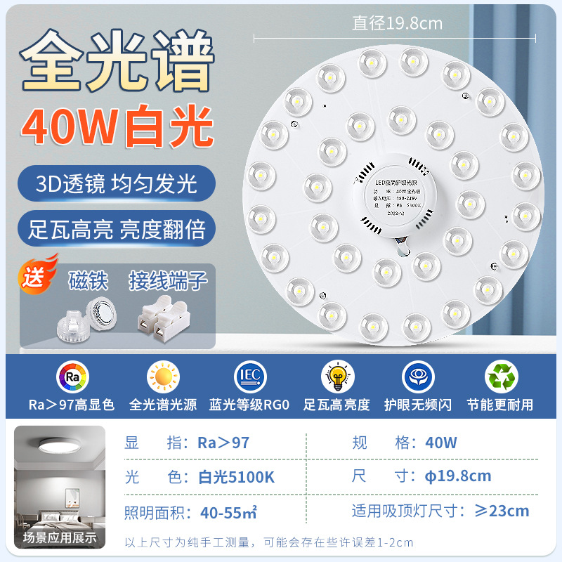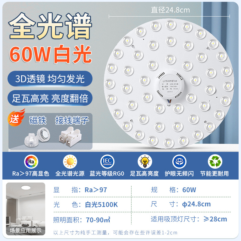 全光谱LED光源吸顶灯芯家用卧室免打孔磁吸圆形改造替换灯板灯盘