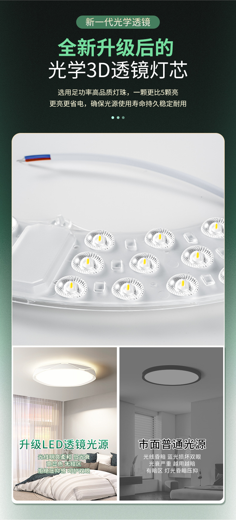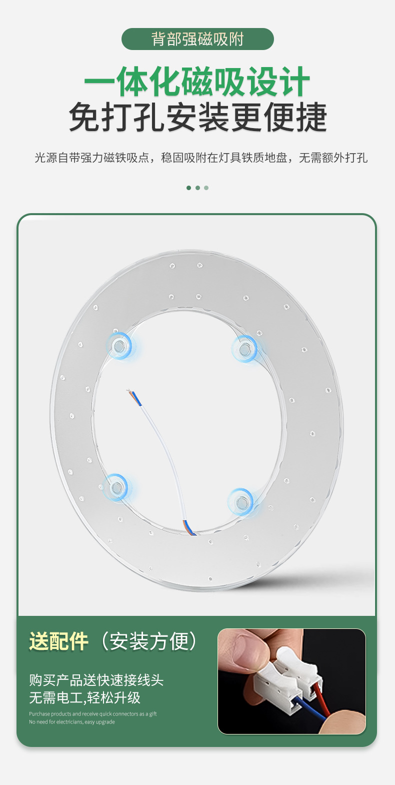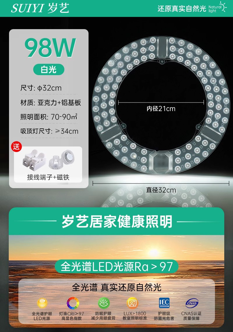 全光谱LED光源吸顶灯芯家用卧室免打孔磁吸圆形改造替换灯板灯盘