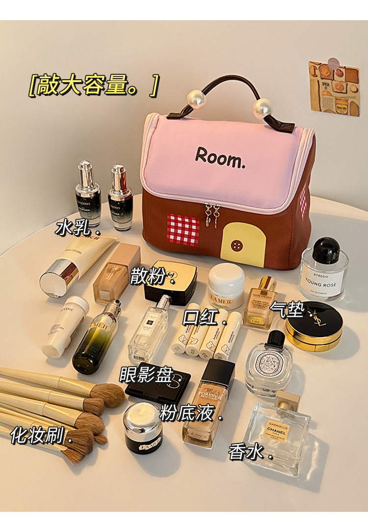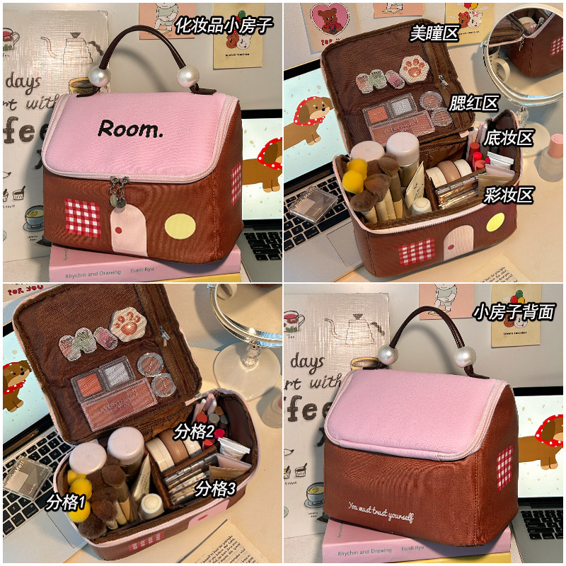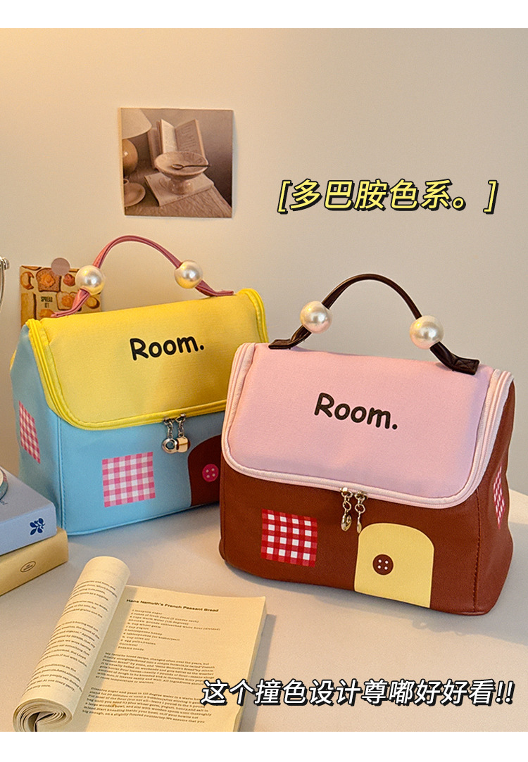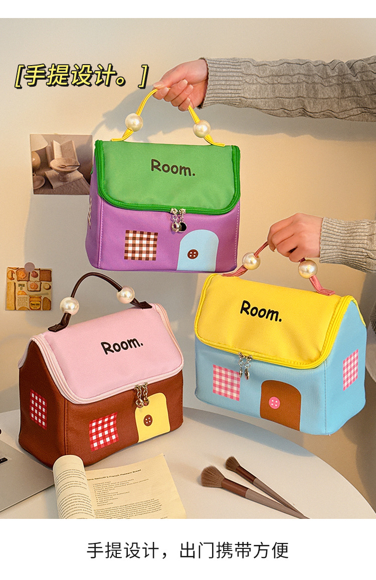 多巴胺小房子化妆包女便携手提洗漱包化妆品收纳包防水大容量收纳