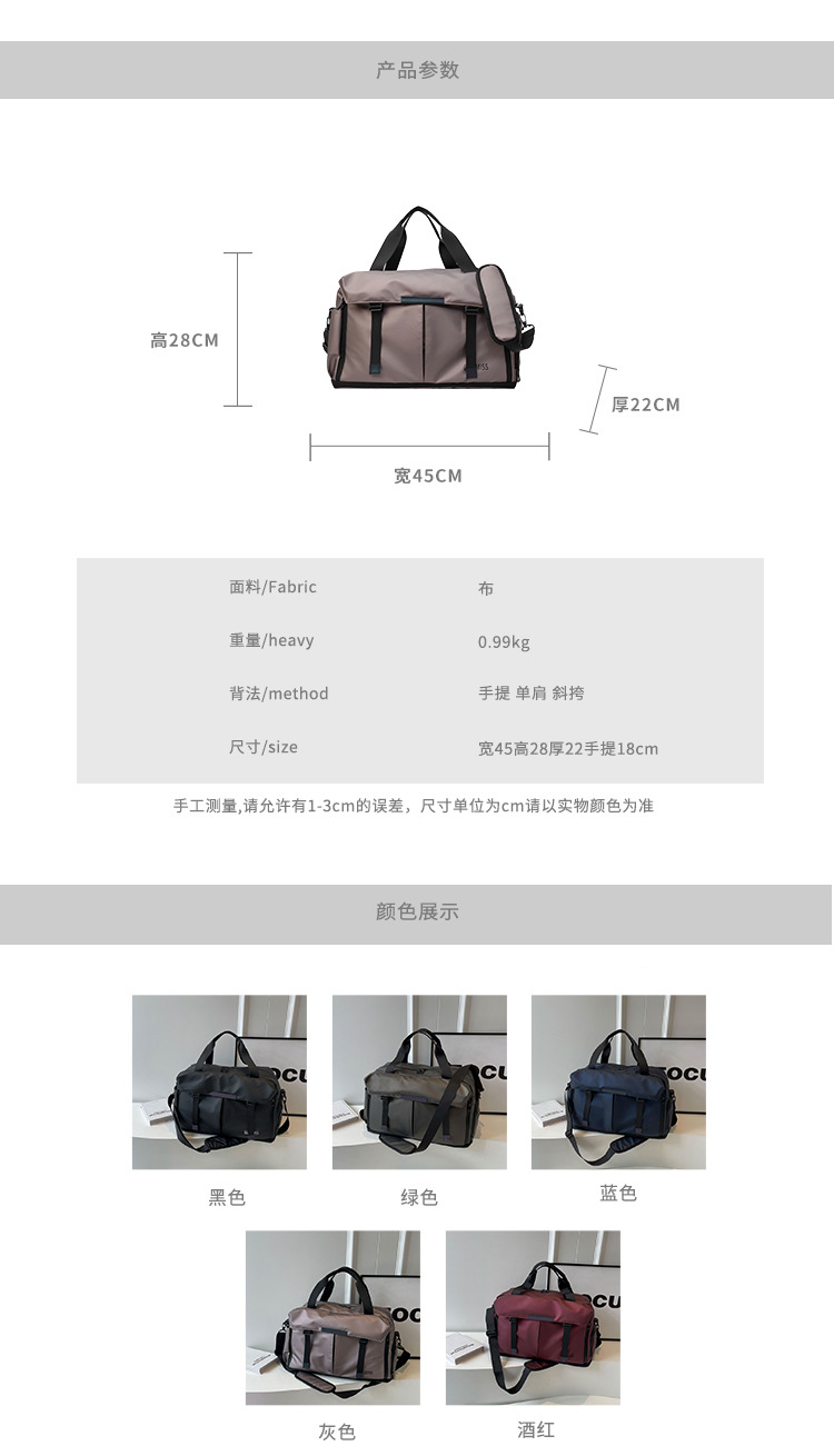 运动休闲健身包女干湿分离游泳训练包大容量简约牛津布短途旅行包