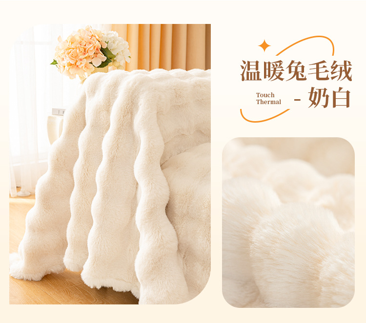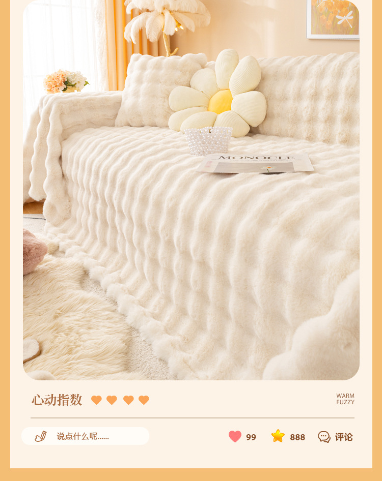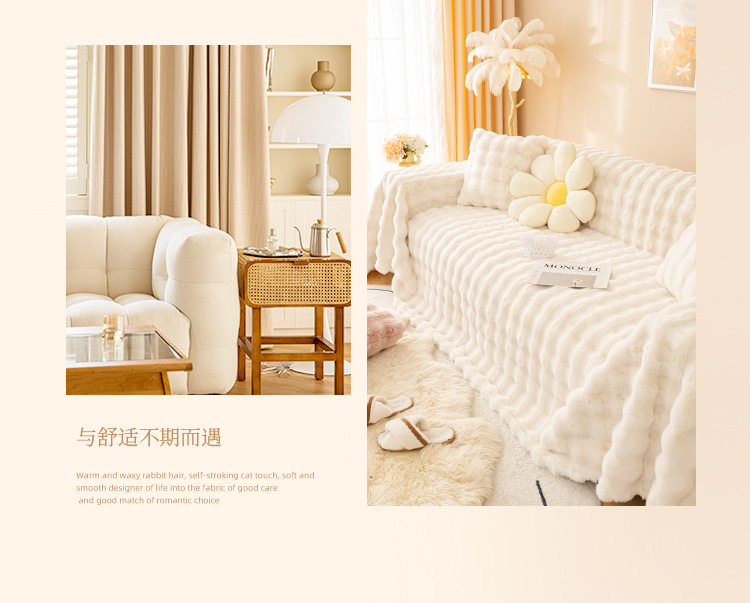 2023新款兔毛绒沙发盖布防猫爪冬季毛绒奶油沙发巾万能沙发套罩全