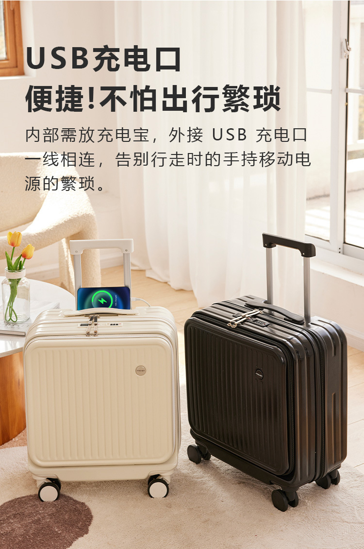 前置开口拉杆箱万向轮18寸小型登机箱男女旅行箱轻便行李箱密码箱