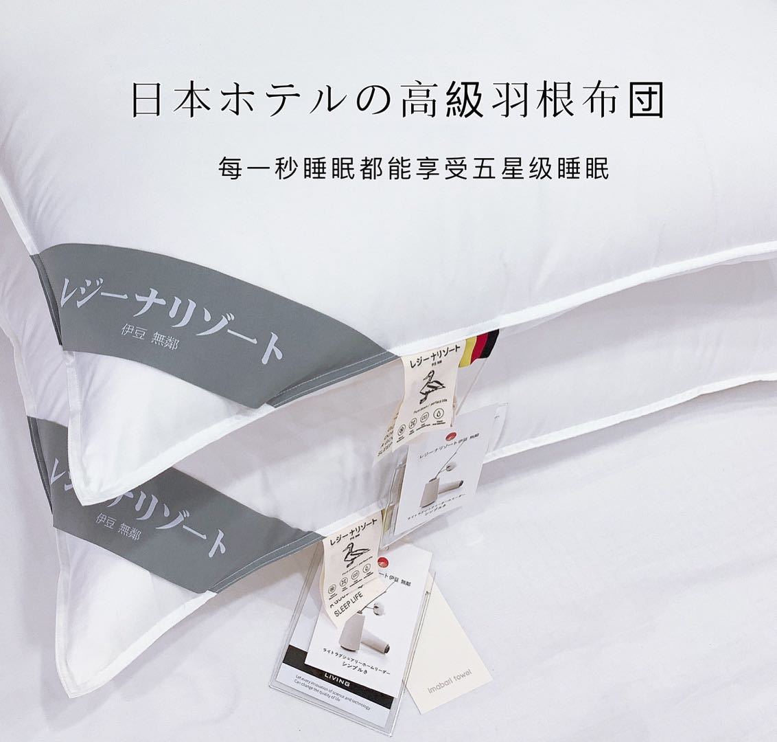 源头厂家日本伊豆羽绒枕枕头枕芯单人家用全棉羽绒枕头批发酒店枕