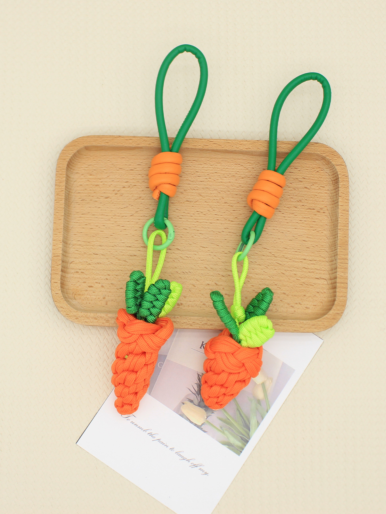 可爱童趣手工编织胡萝卜花朵钥匙扣手机挂件包包饰品小红书爆款