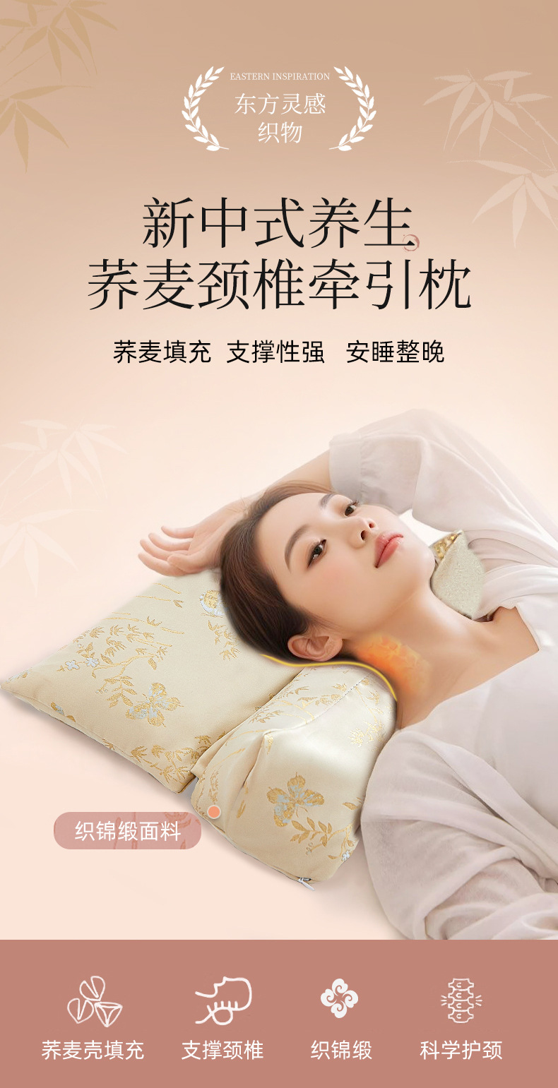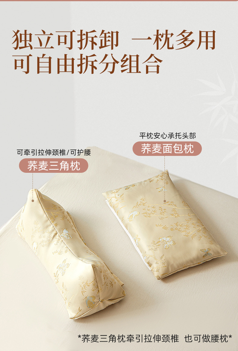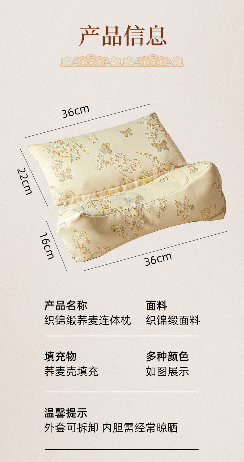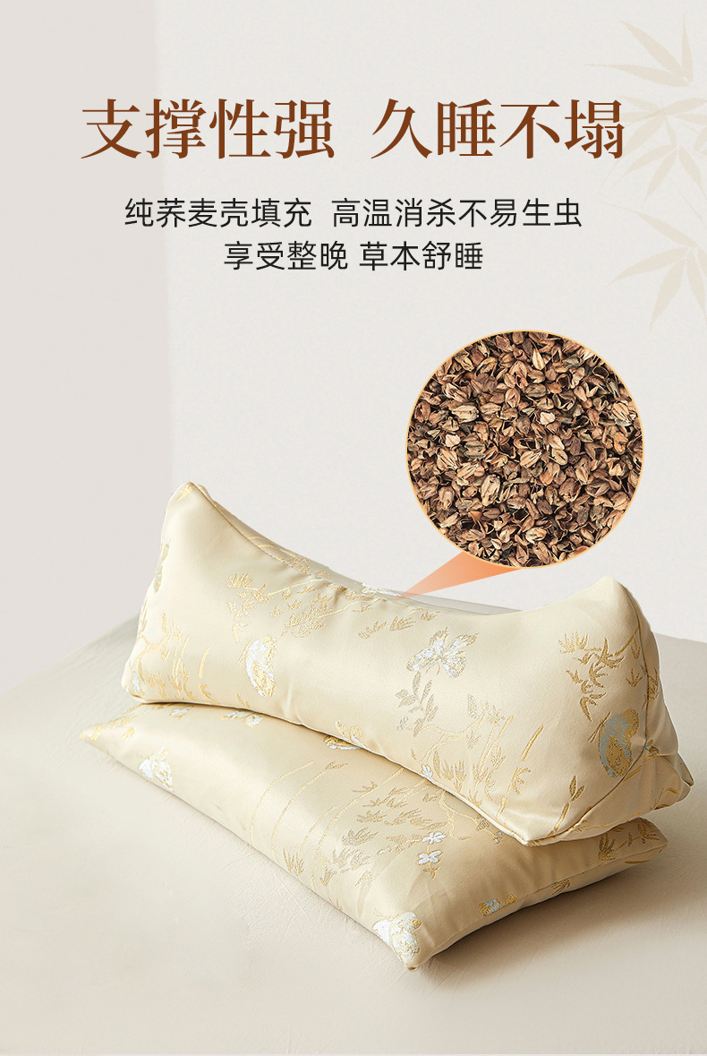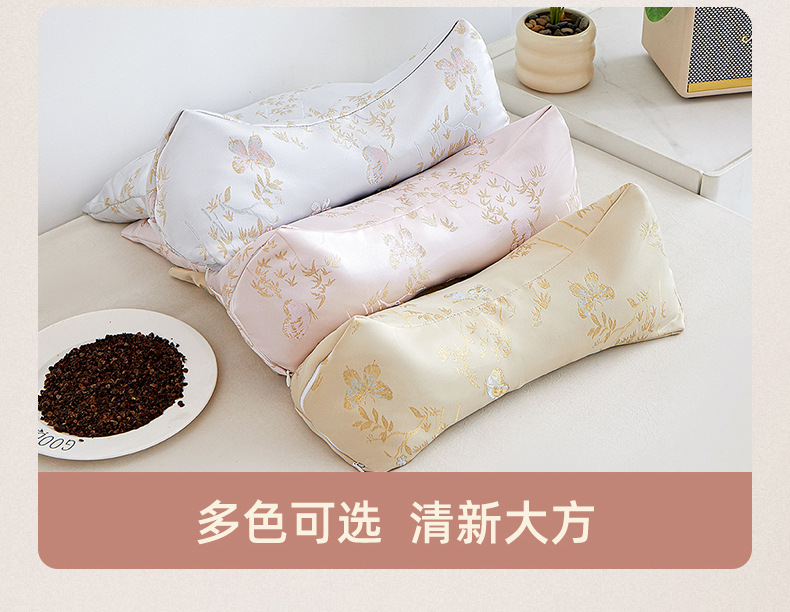 织锦缎荞麦壳颈椎枕头护颈睡眠牵引三角圆柱枕芯成人睡觉荞麦枕