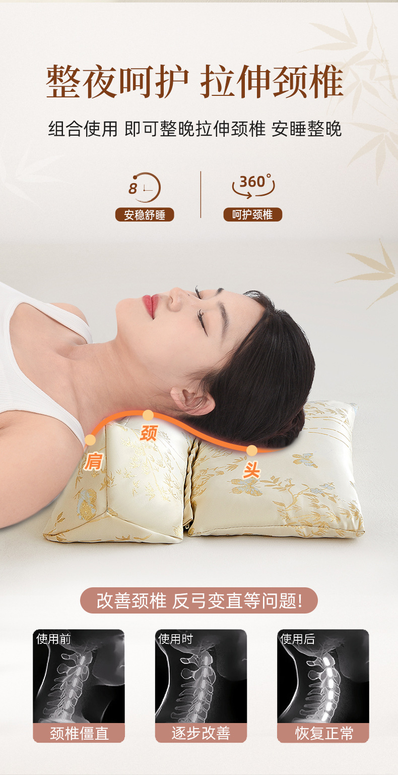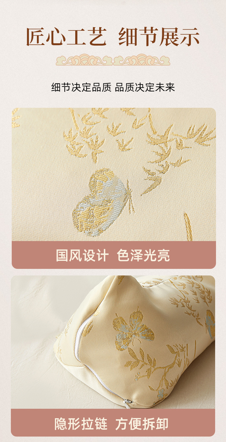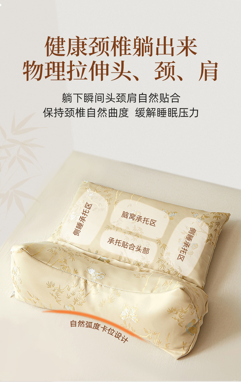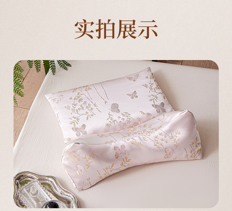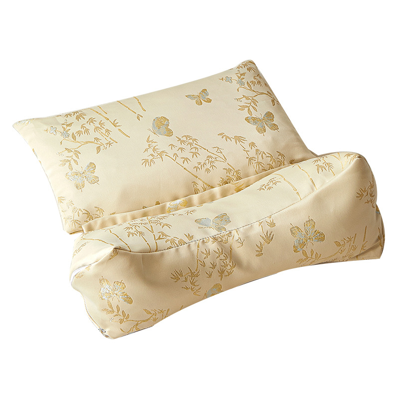 织锦缎荞麦壳颈椎枕头护颈睡眠牵引三角圆柱枕芯成人睡觉荞麦枕