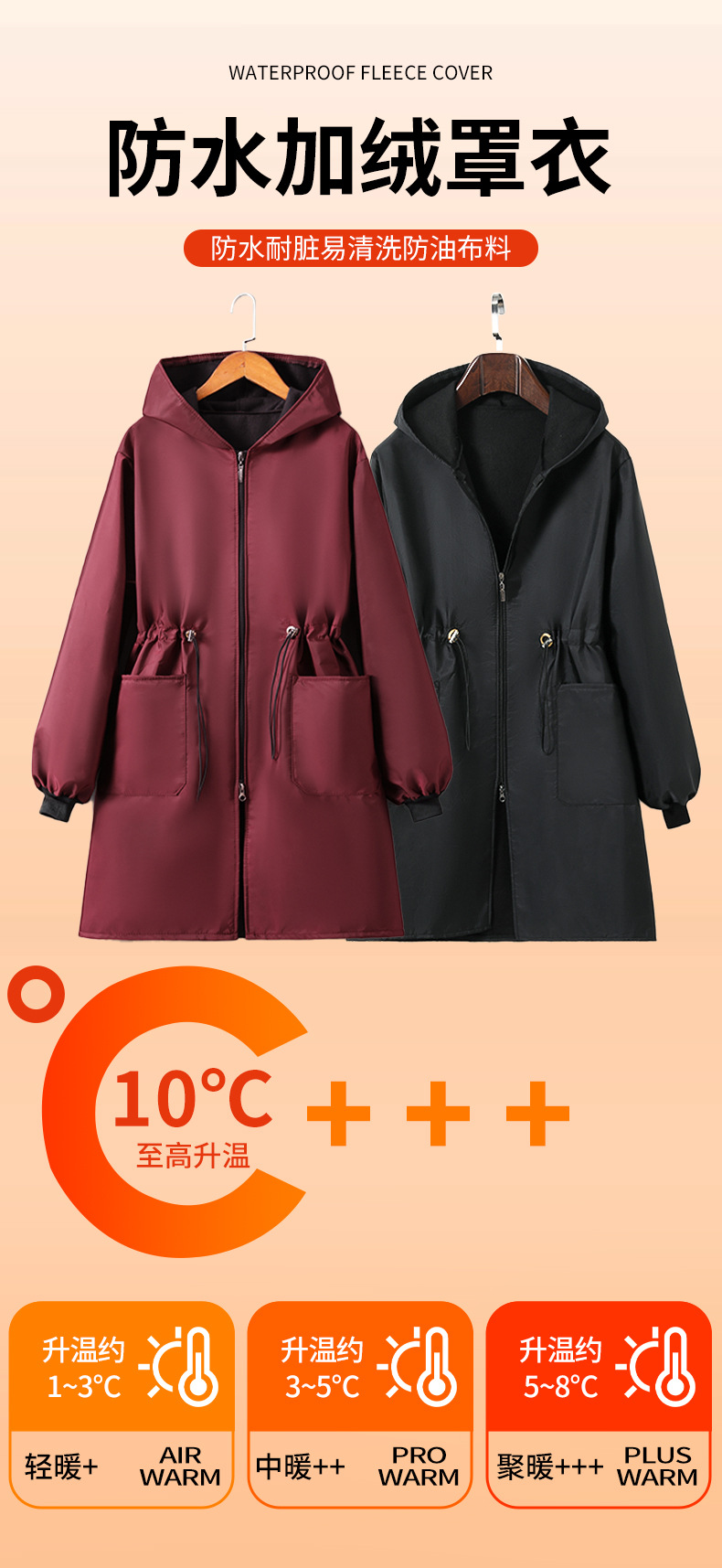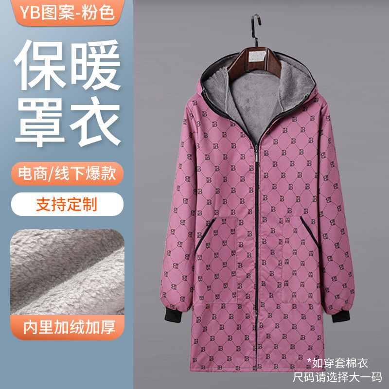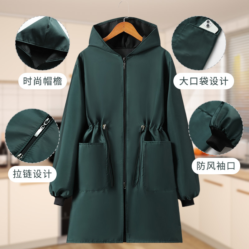 批发新款保暖罩衣加绒防水防油罩衣收腰厨房长袖围裙工作服耐脏女
