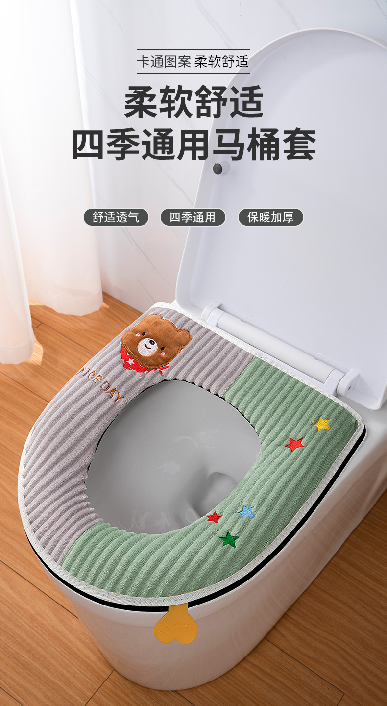 拉链款围巾熊马桶垫四季通用家用拉链通用坐便套秋冬马桶套坐便垫