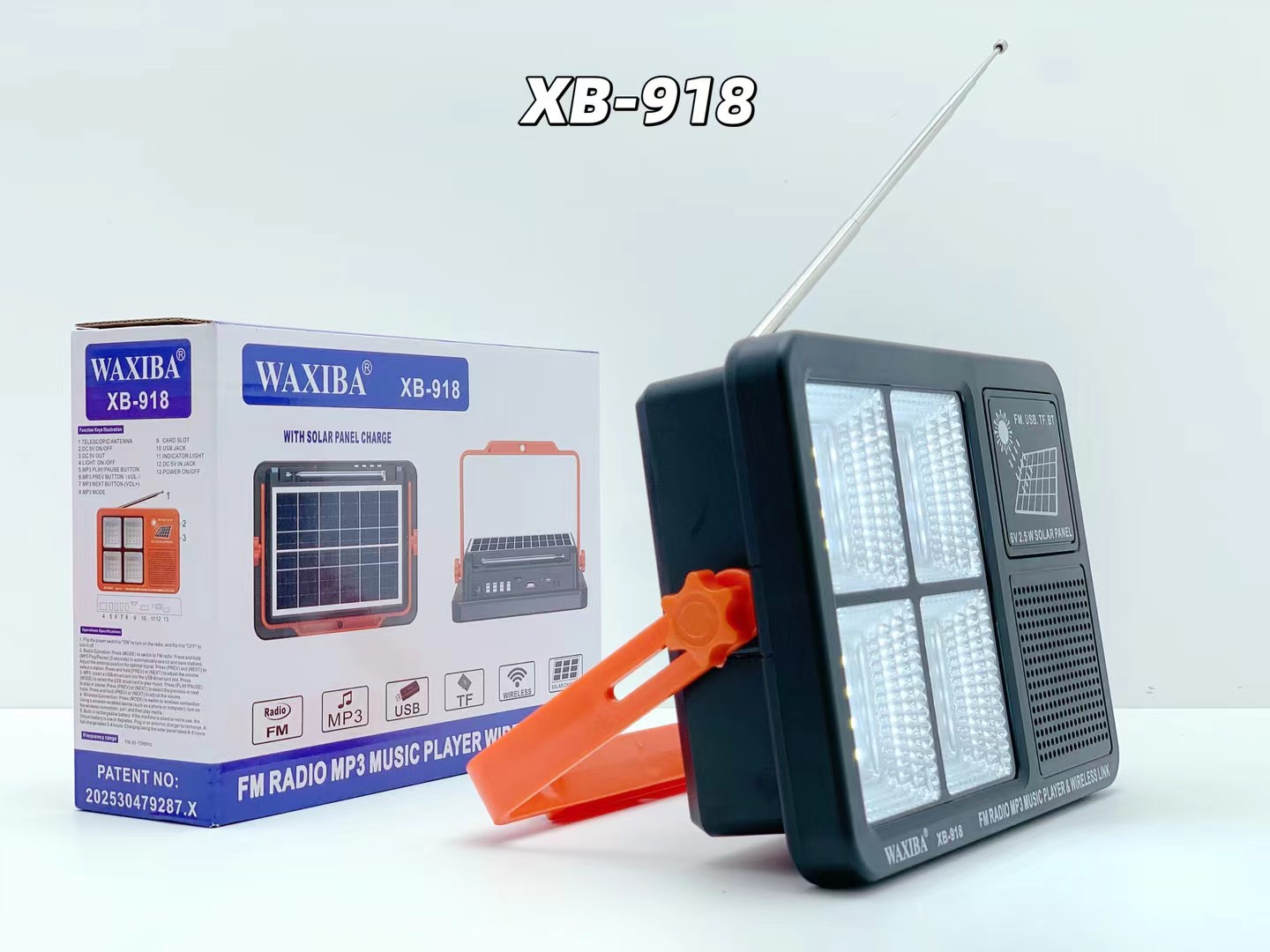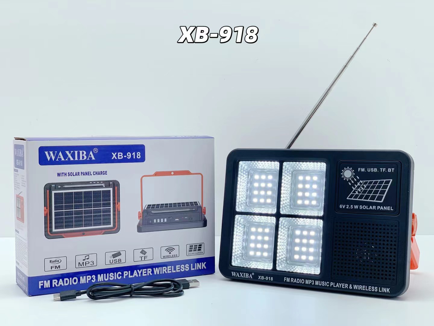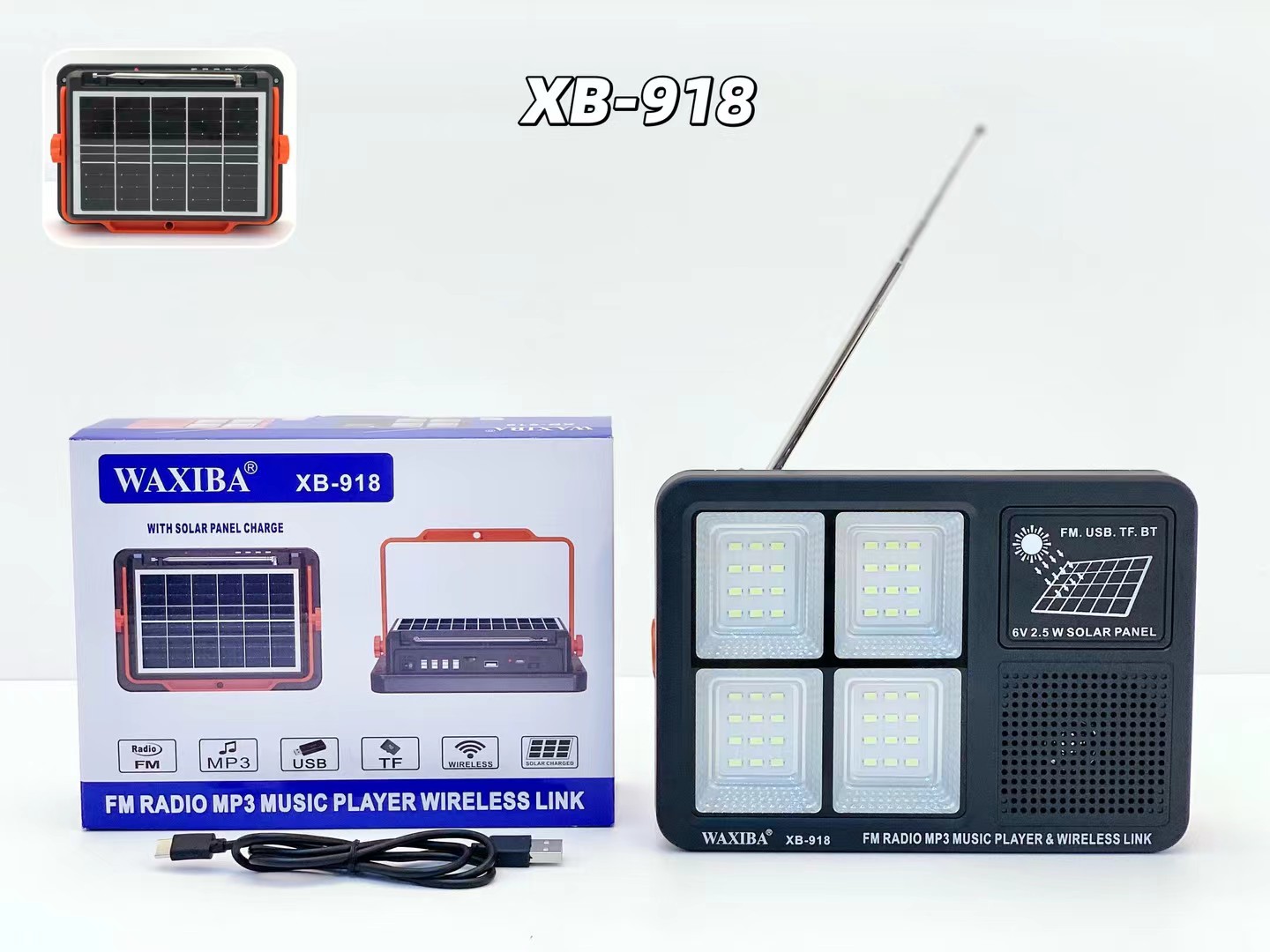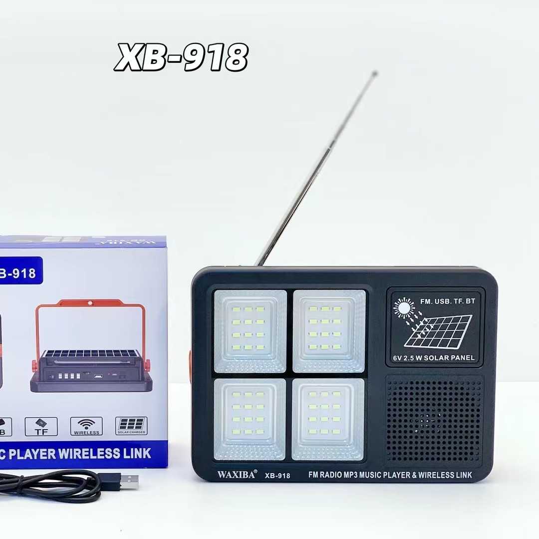 XB-918 跨境太阳能LED应急灯收音机无线蓝牙音响户外聚会露营音箱