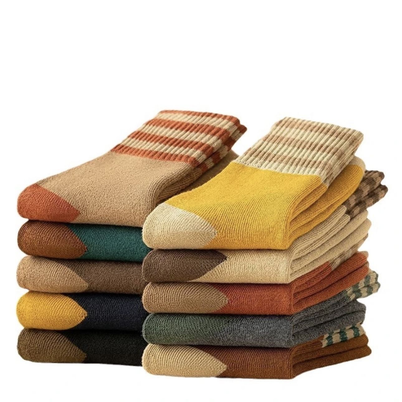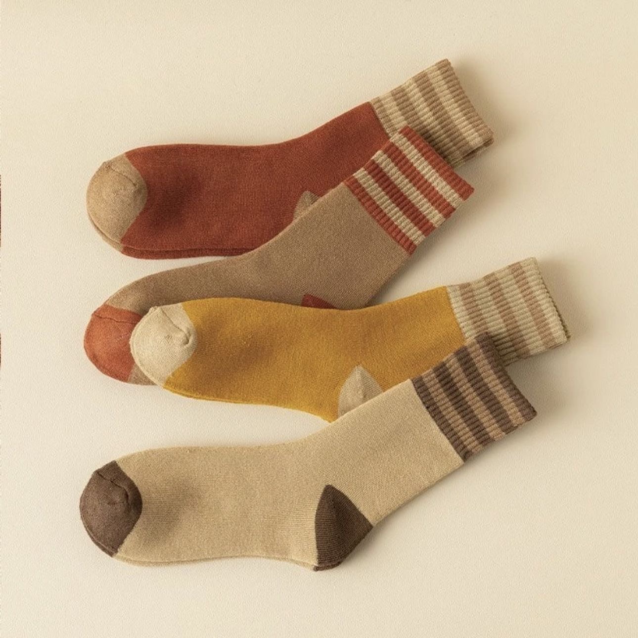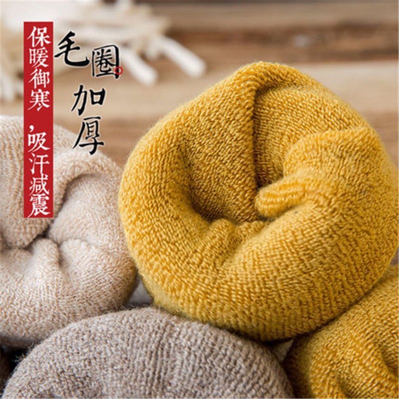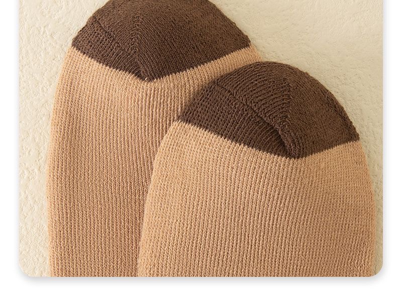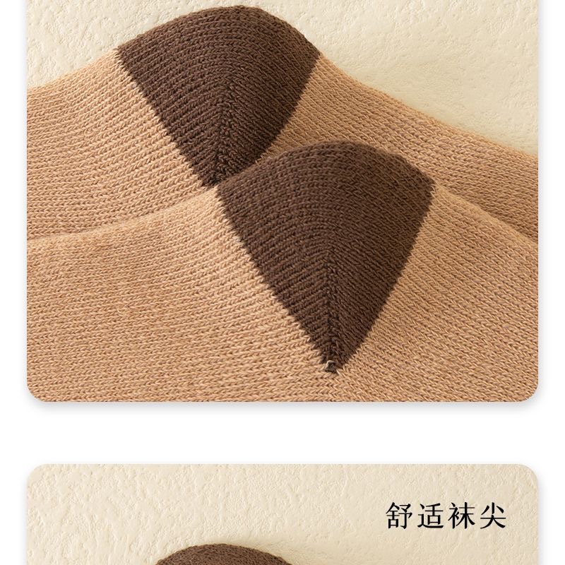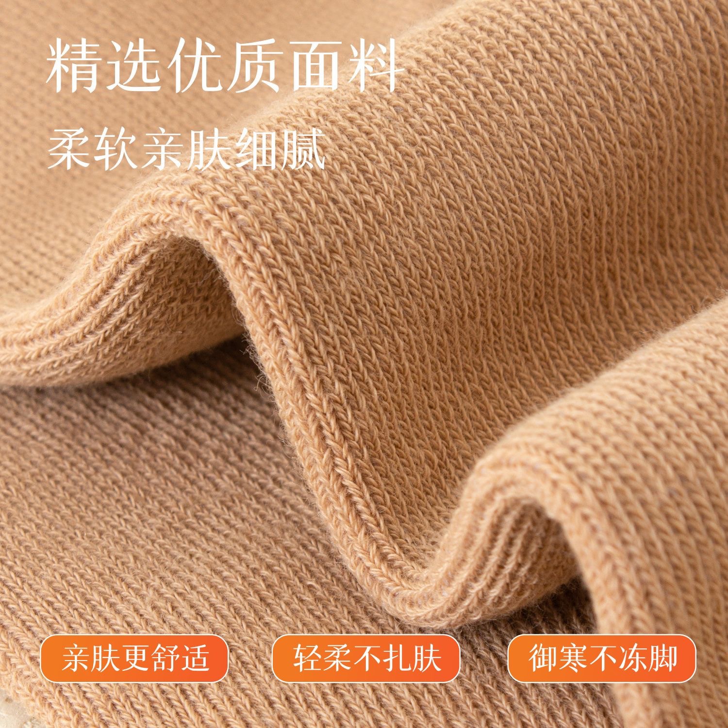 袜子女中筒袜加绒加厚保暖拼色毛圈袜秋冬款休闲罗口横杠款地板袜