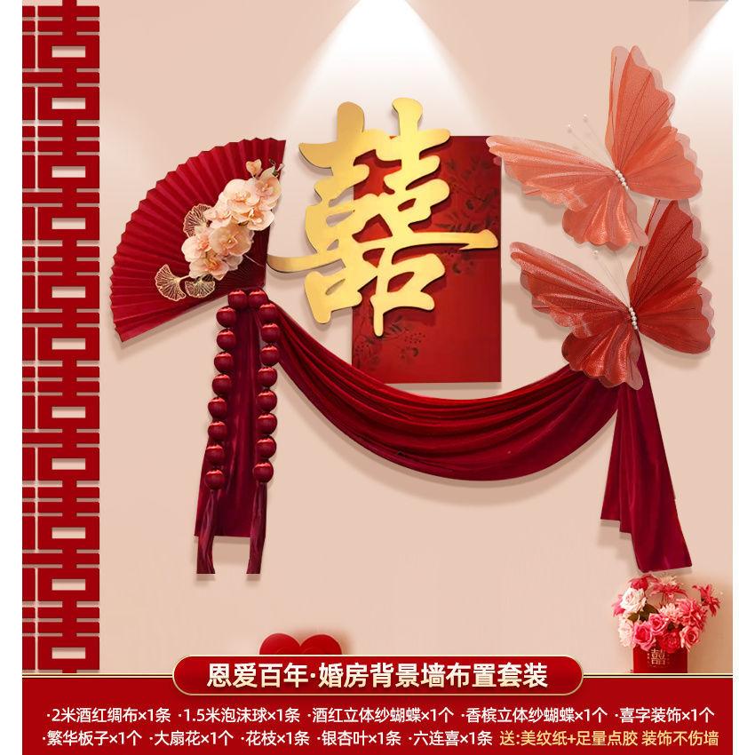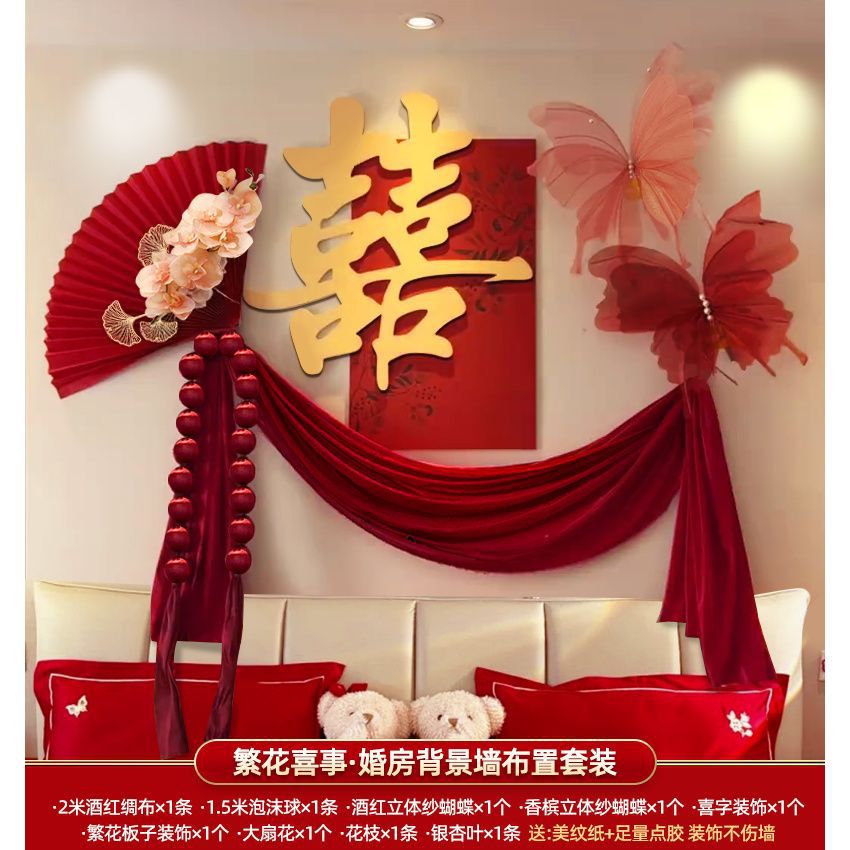 结婚布置婚房装饰男方婚礼女方卧室新房全套新婚房间婚庆用品大全