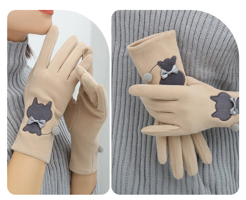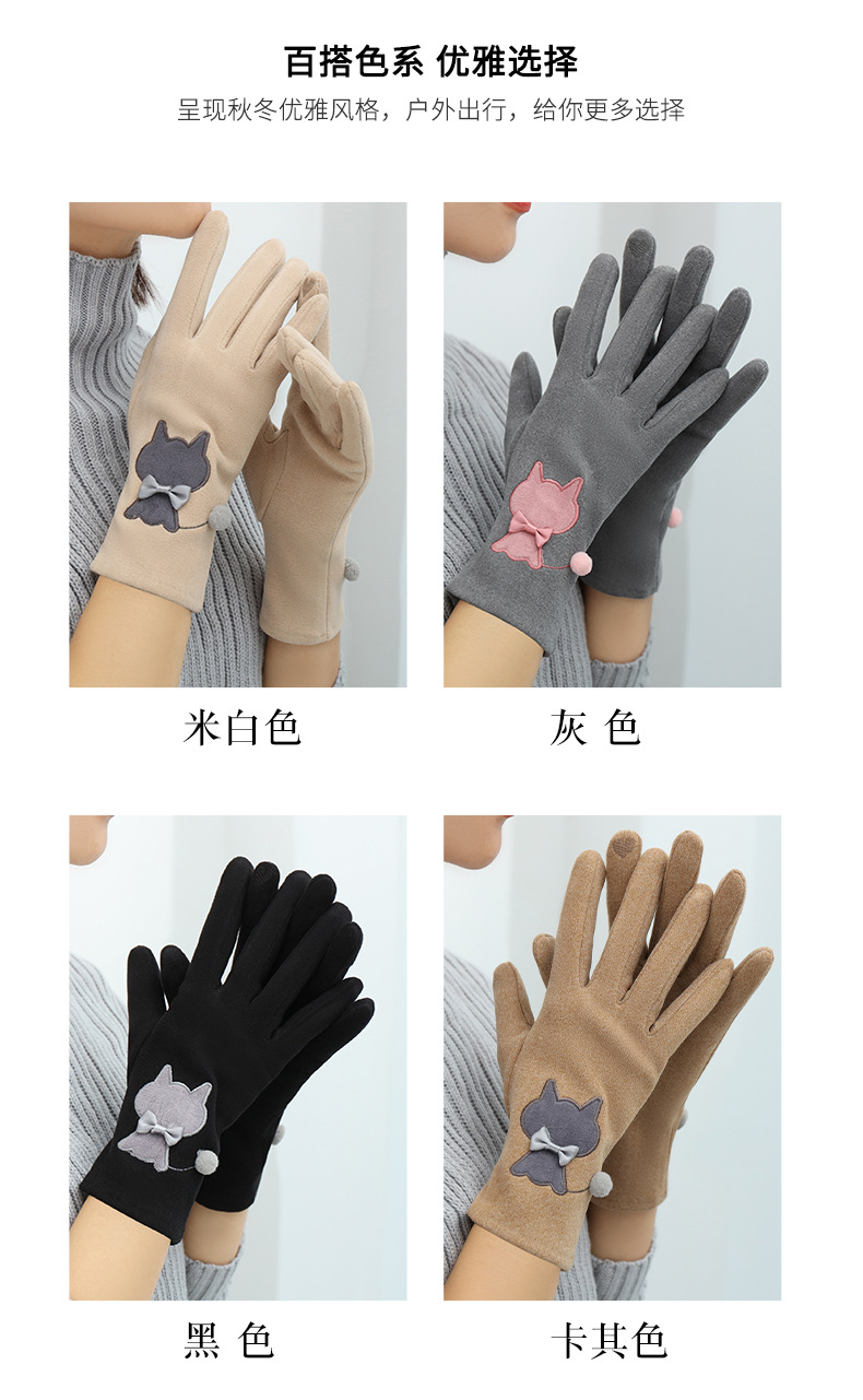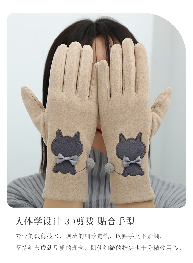 手套女冬季加绒保暖可爱学生骑行开车厂家批发触屏滑雪德绒手套防