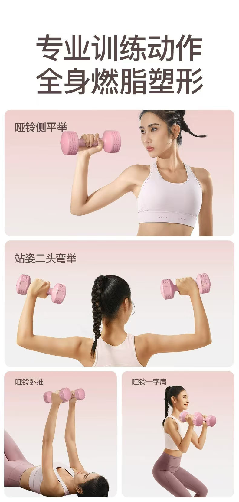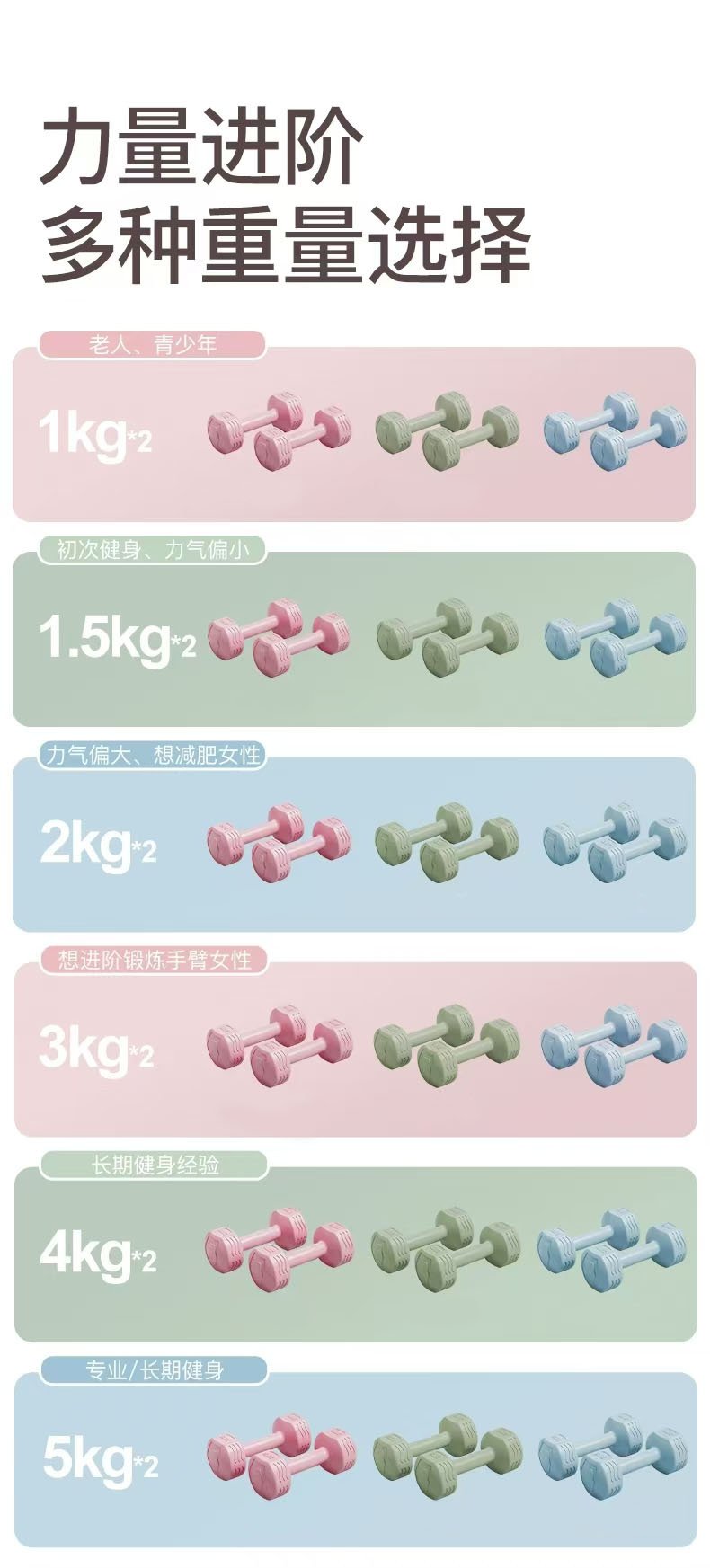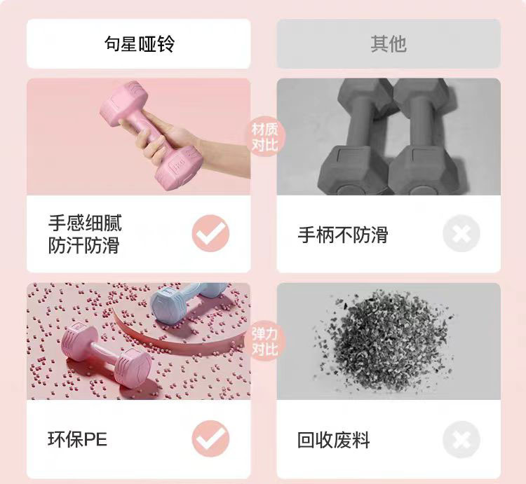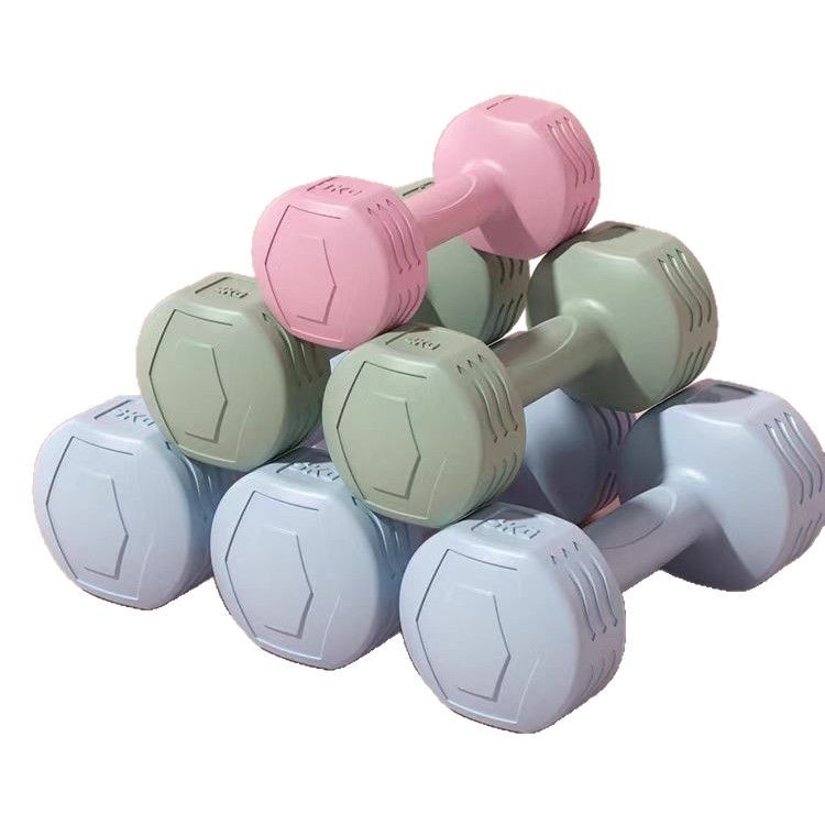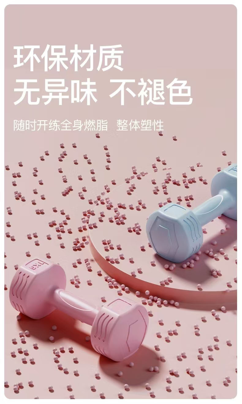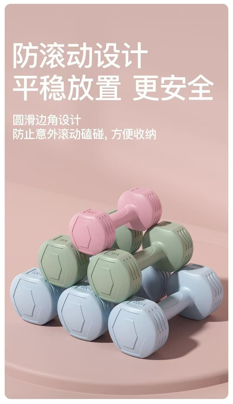 跨境哑铃女士健身家用器材儿童瑜伽瘦手臂练臂肌包胶小哑铃5kg1对