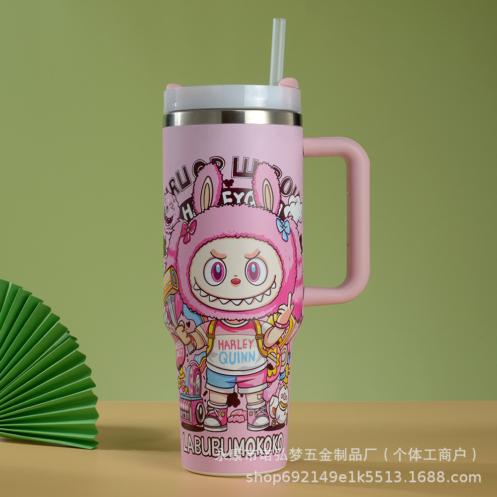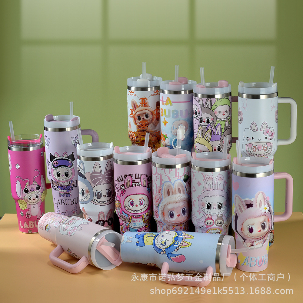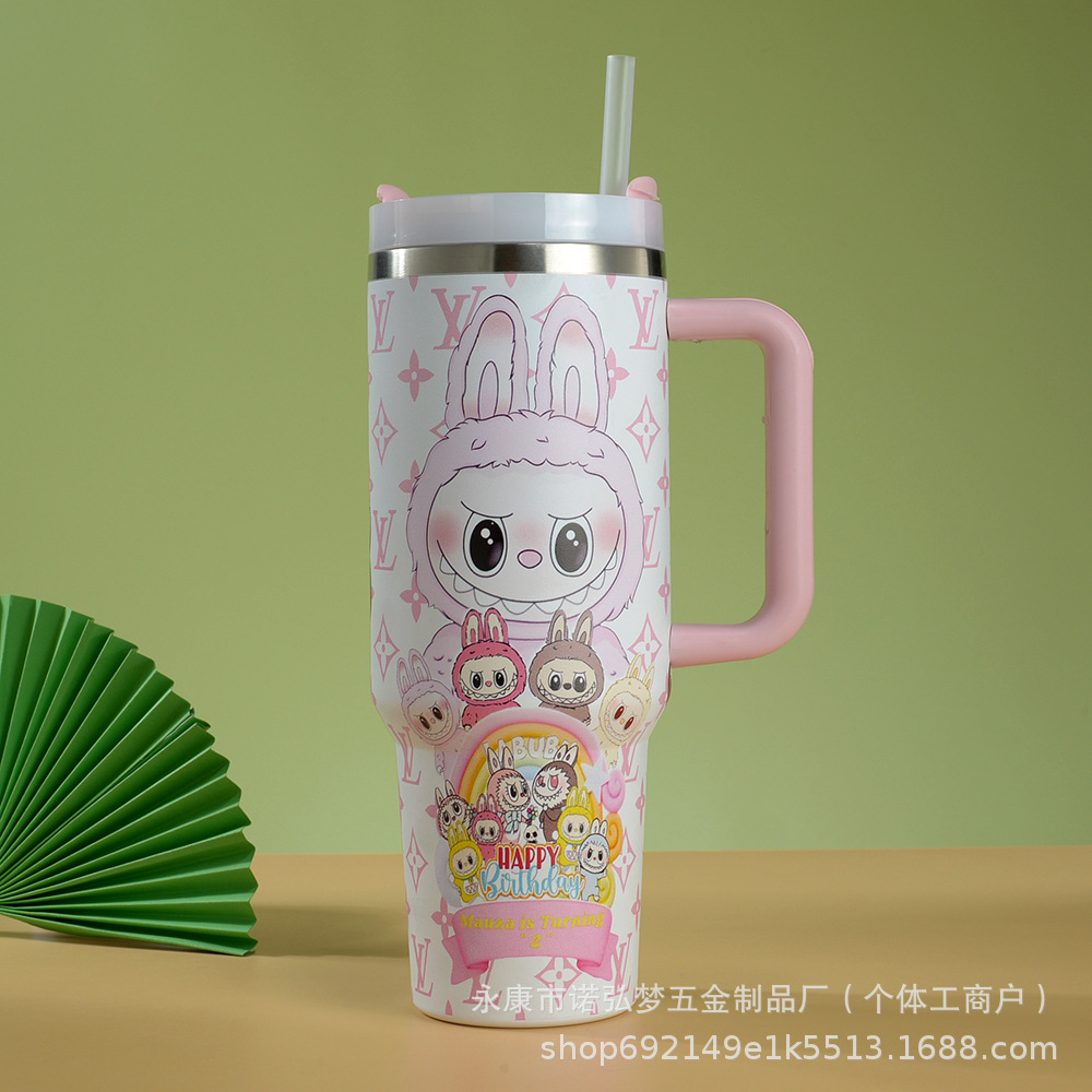跨境40oz二代拉布布汽车杯304不锈钢保温杯Labubu车载吸管冰霸杯