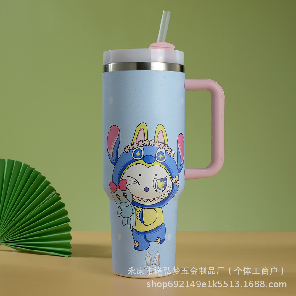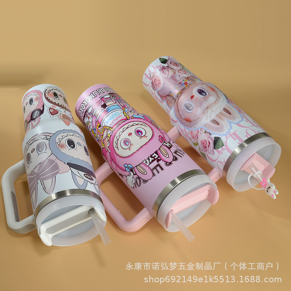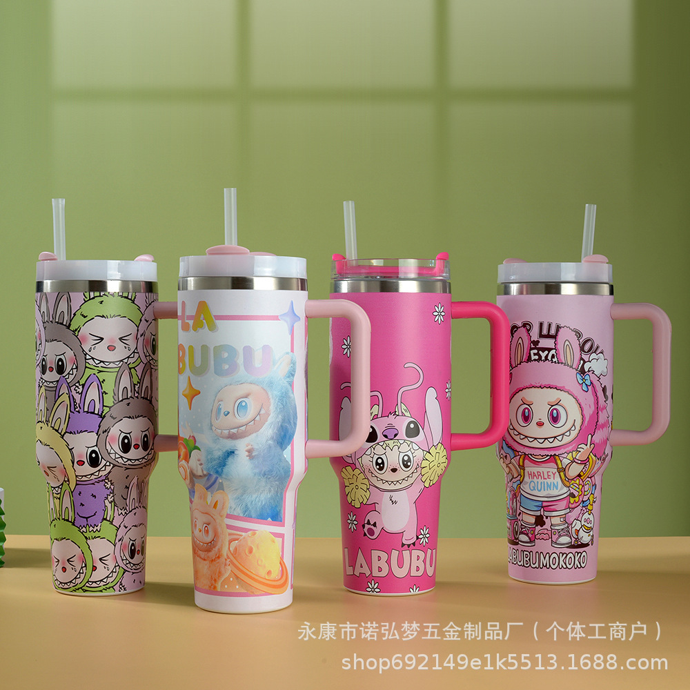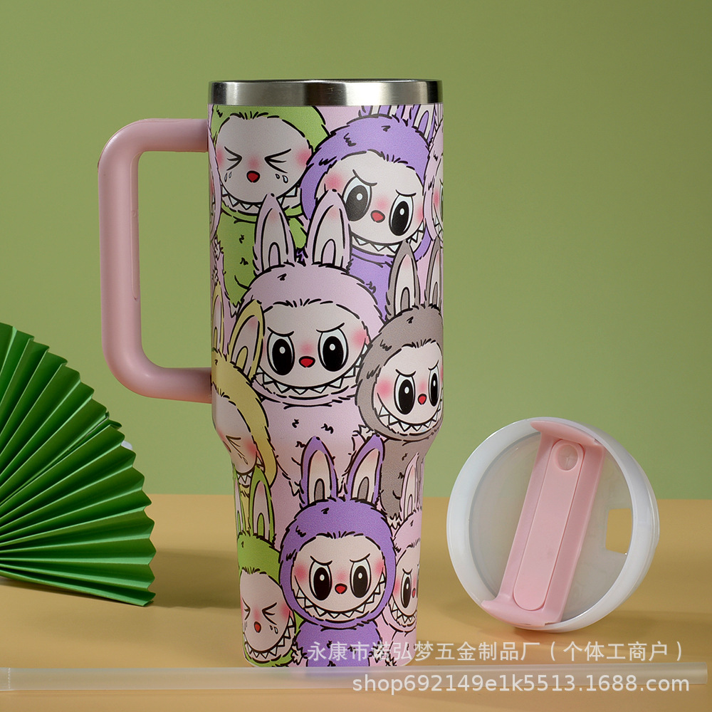 跨境40oz二代拉布布汽车杯304不锈钢保温杯Labubu车载吸管冰霸杯