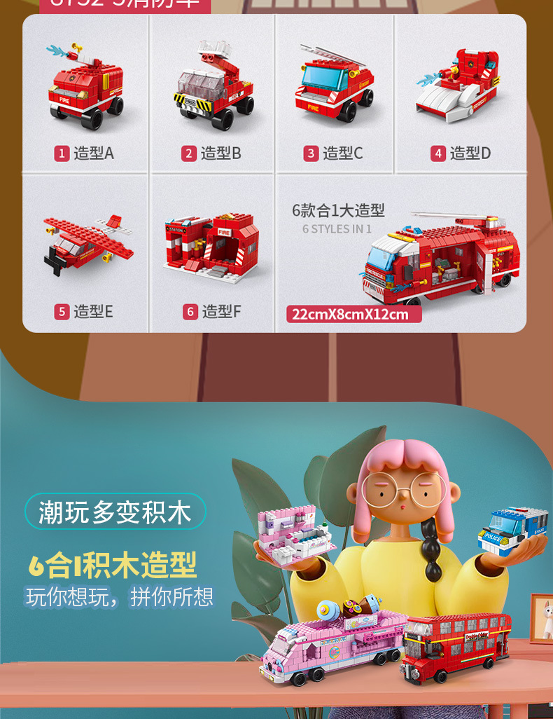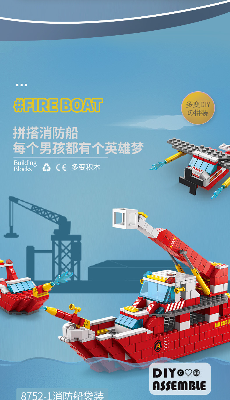 城市系列消防车2024新款积木男孩工程挖掘机拼装儿童玩具模型礼物