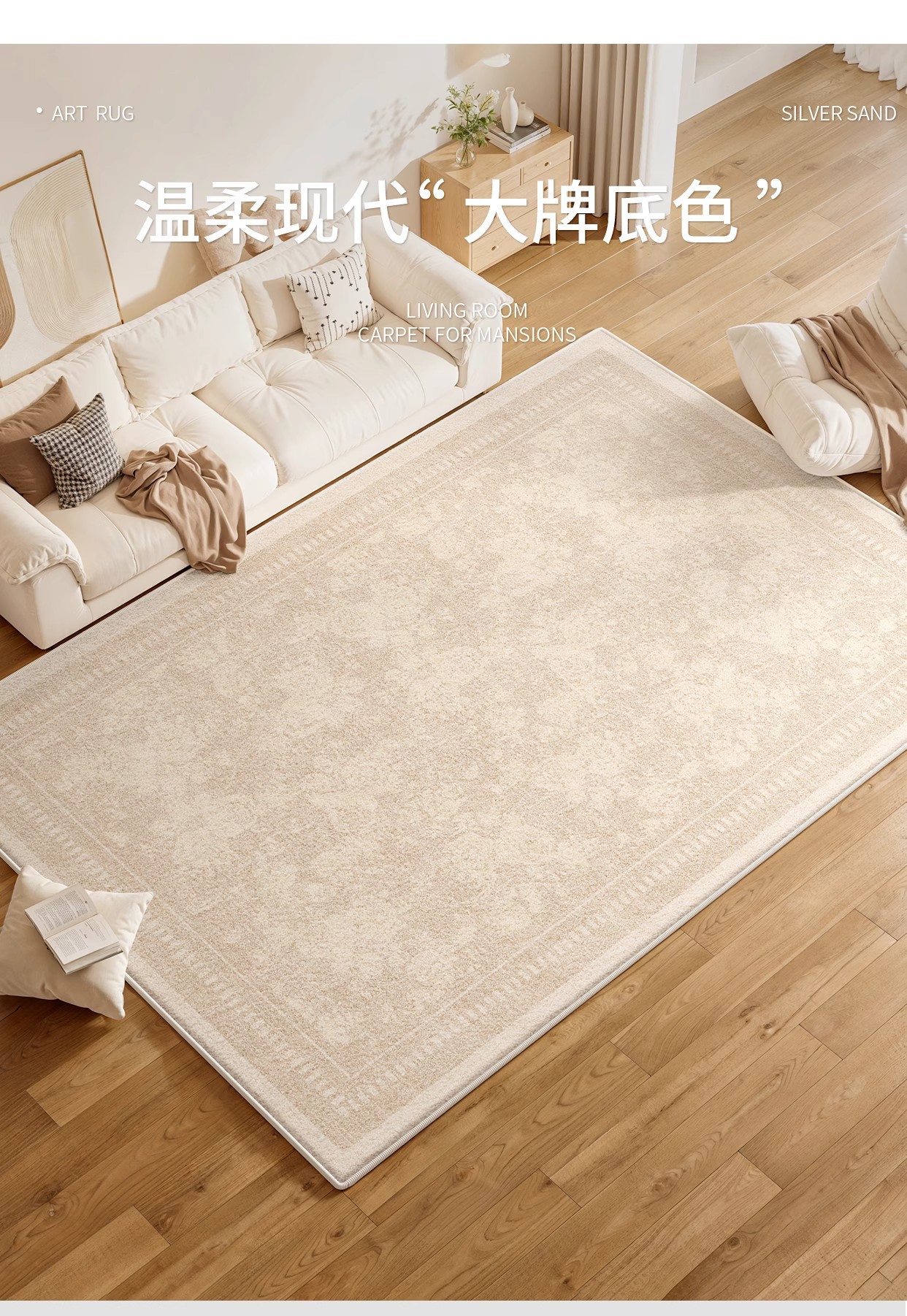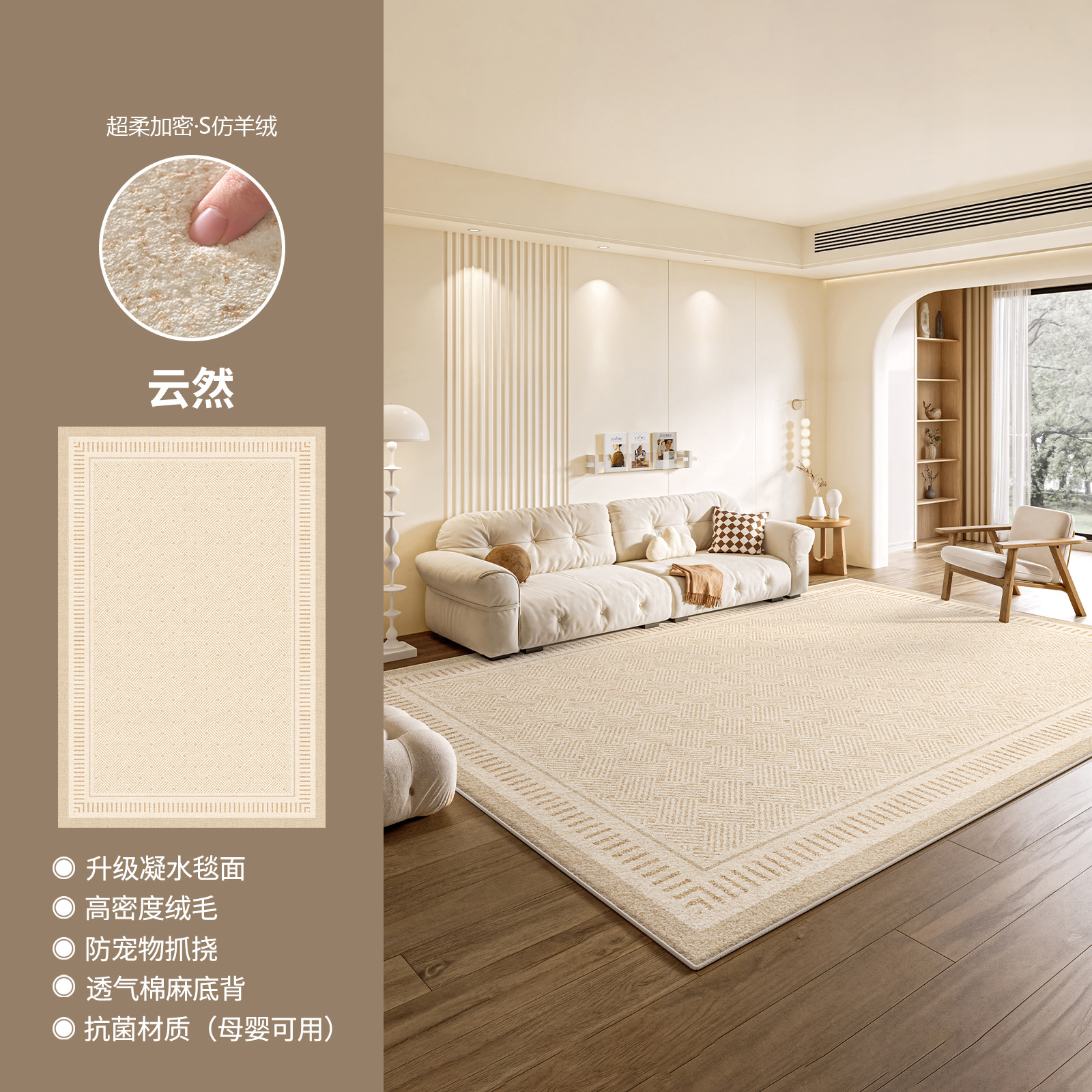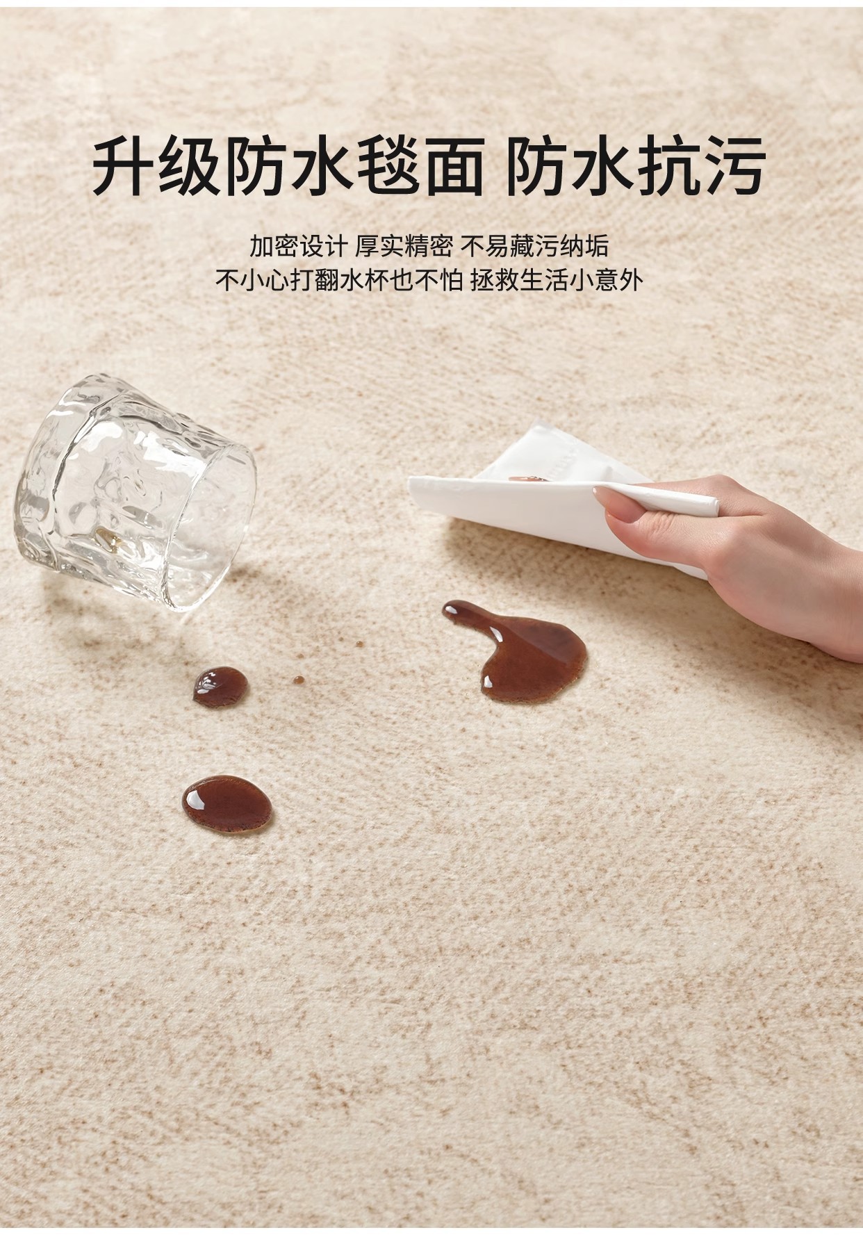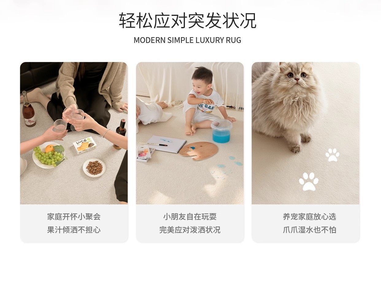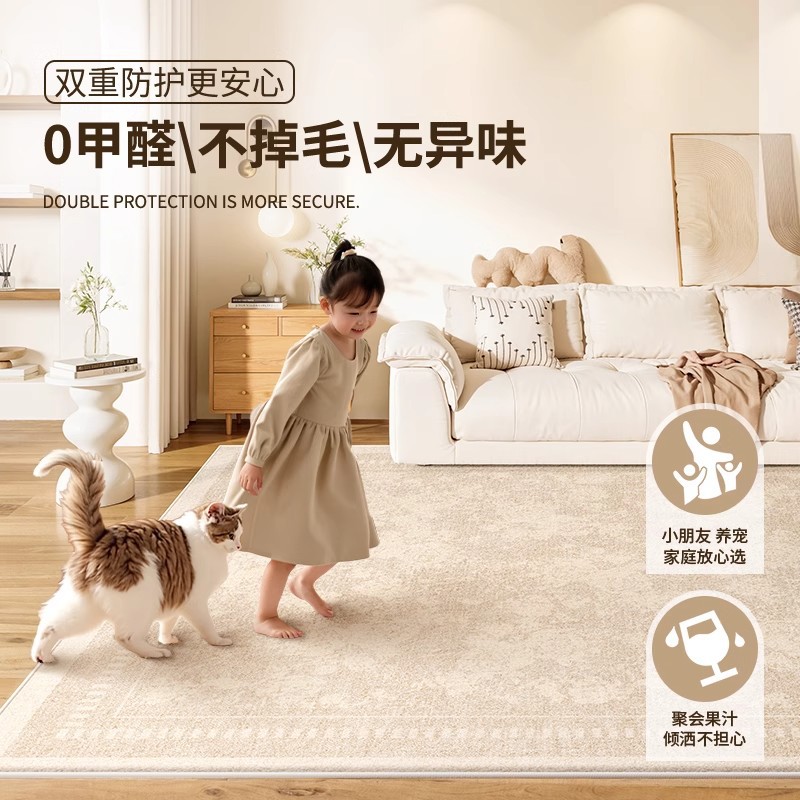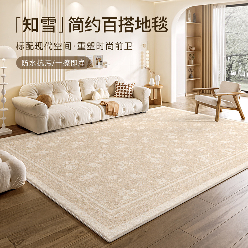 奶油风轻奢防水防污地毯客厅卧室床边毯新款家用加厚定制高级地毯