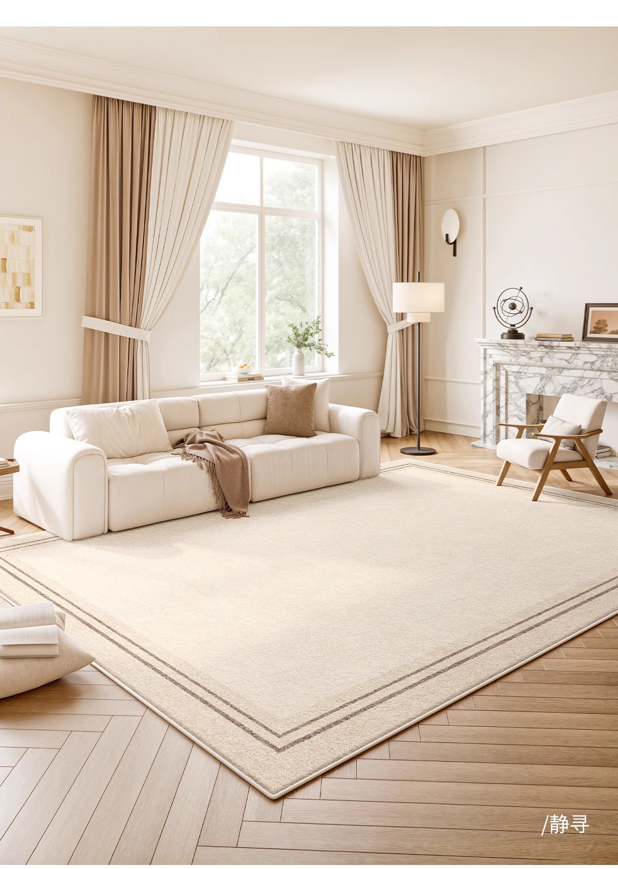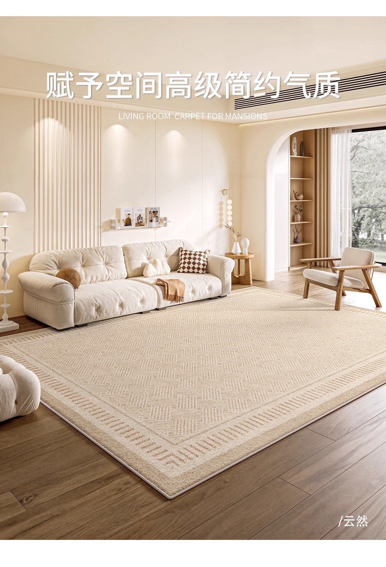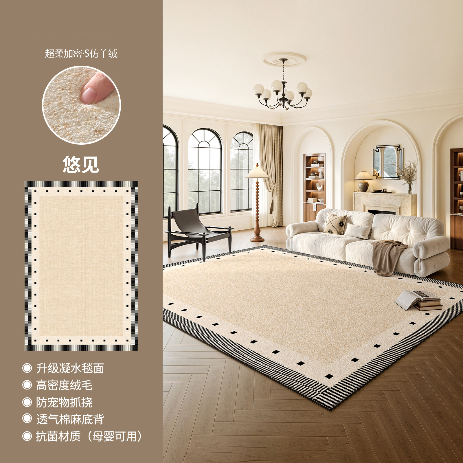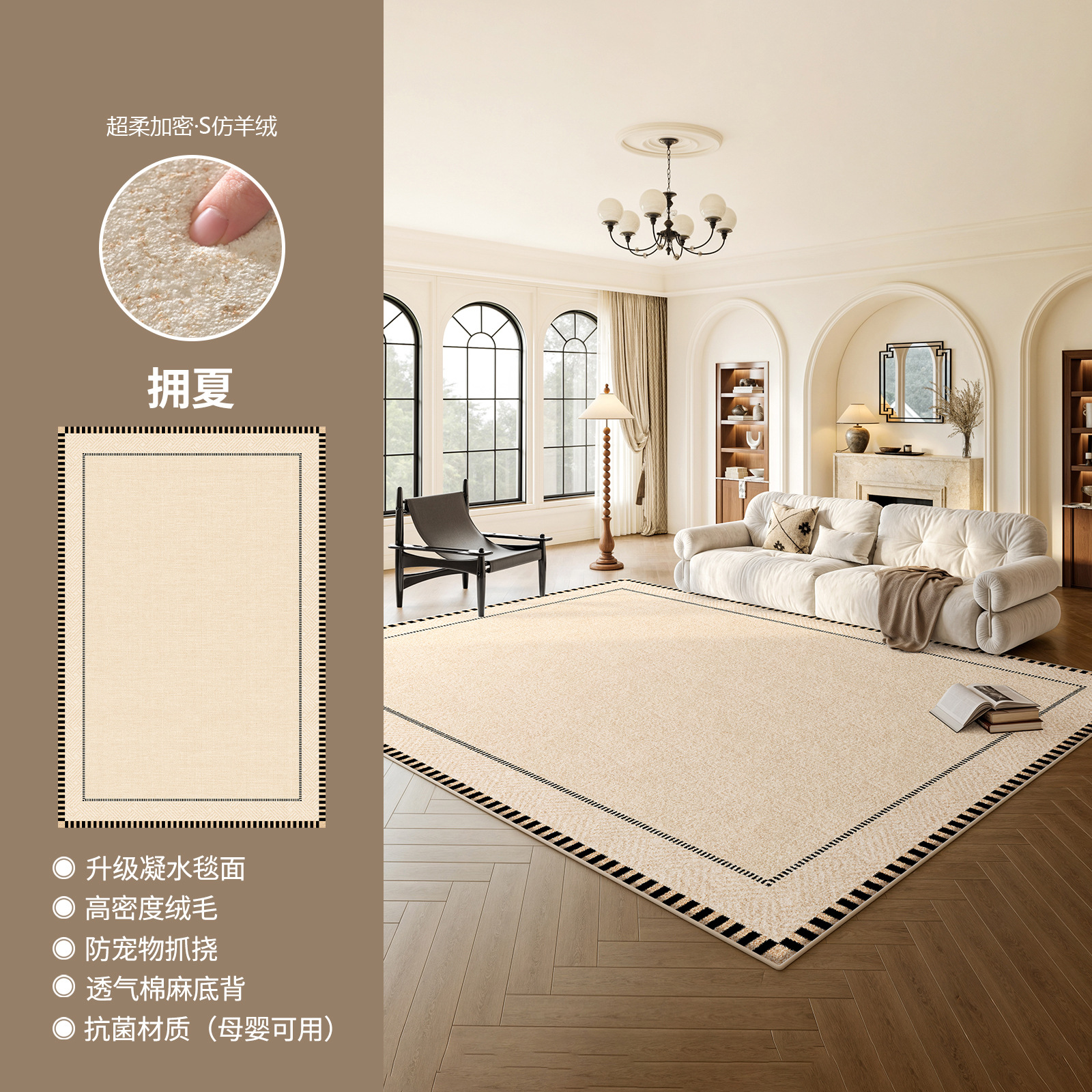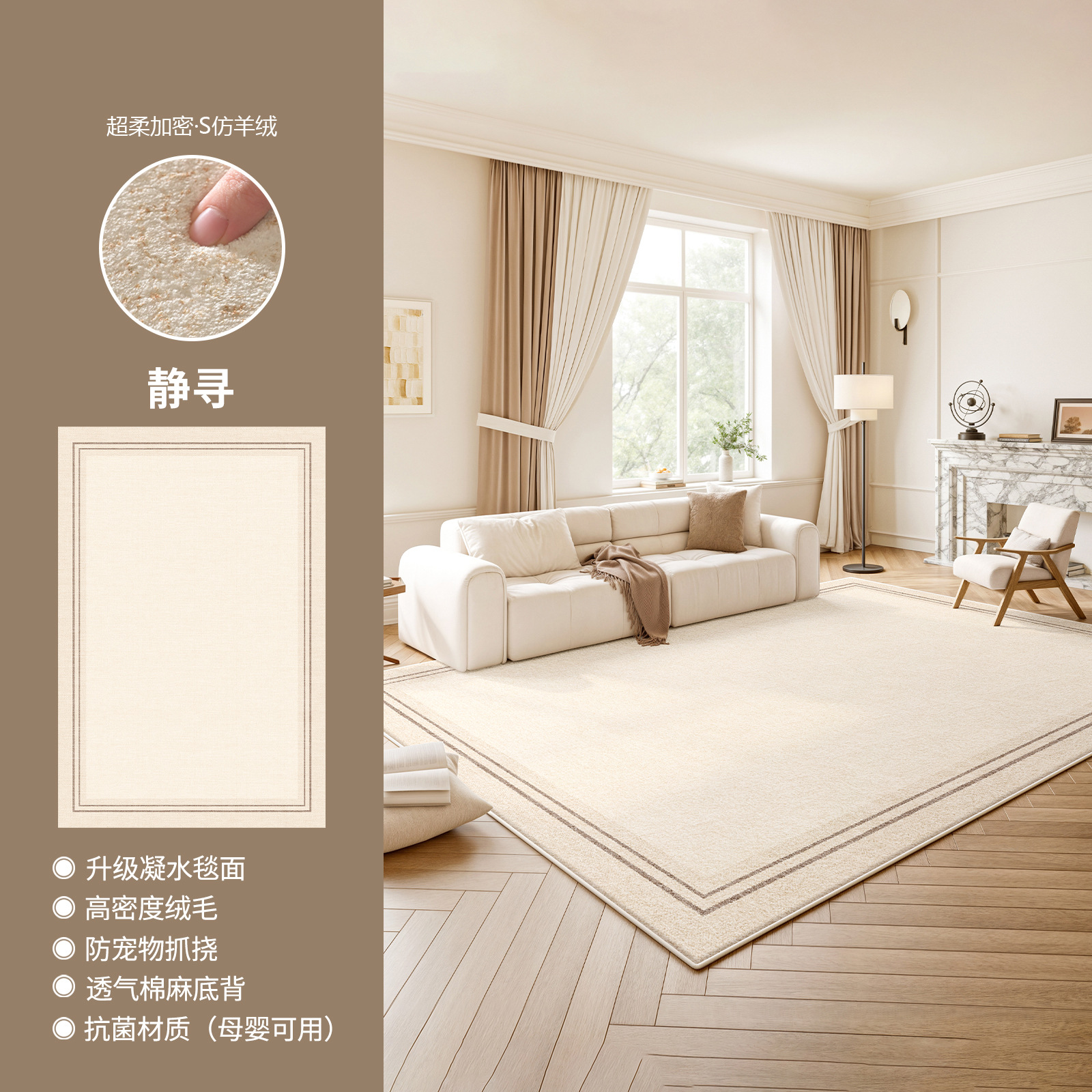 奶油风轻奢防水防污地毯客厅卧室床边毯新款家用加厚定制高级地毯
