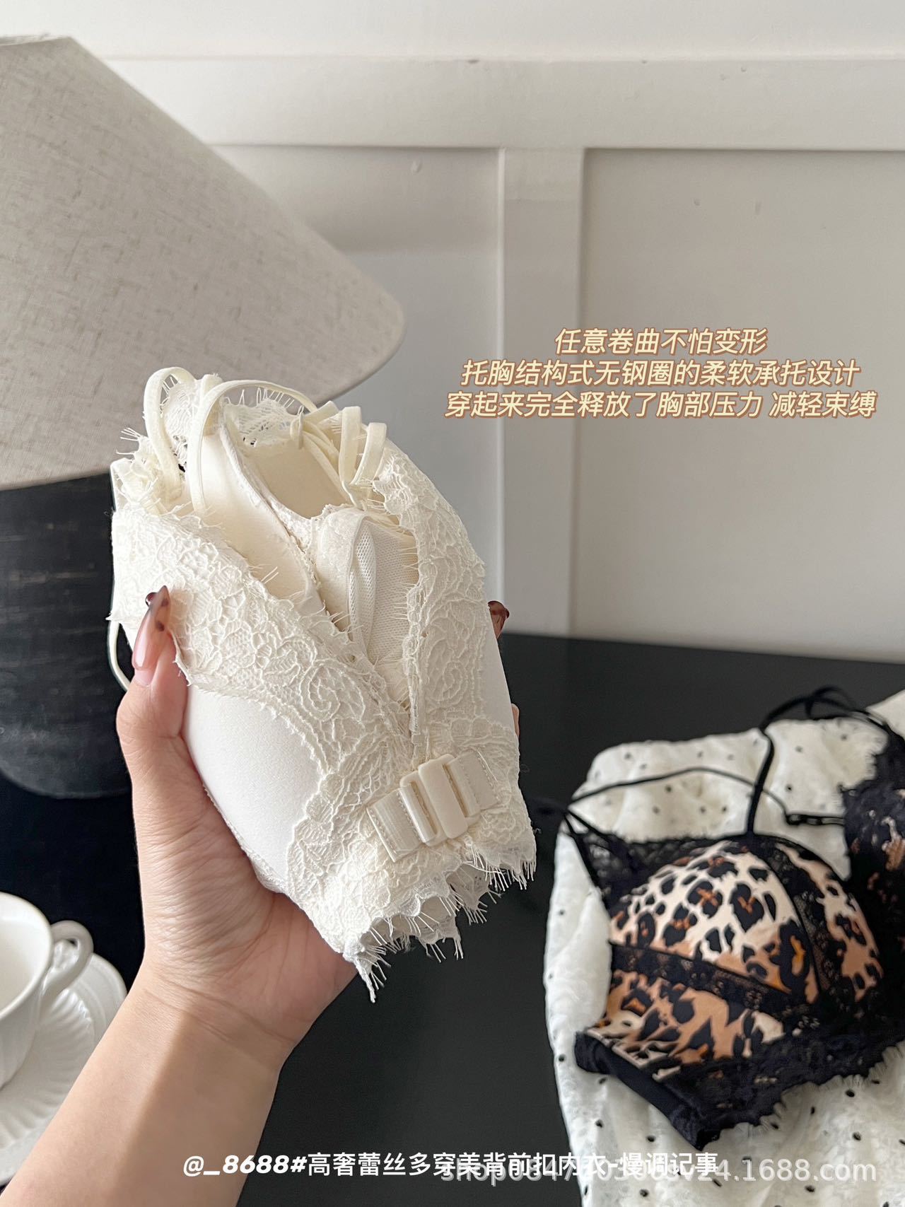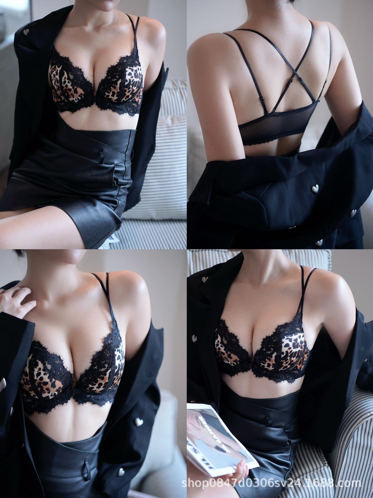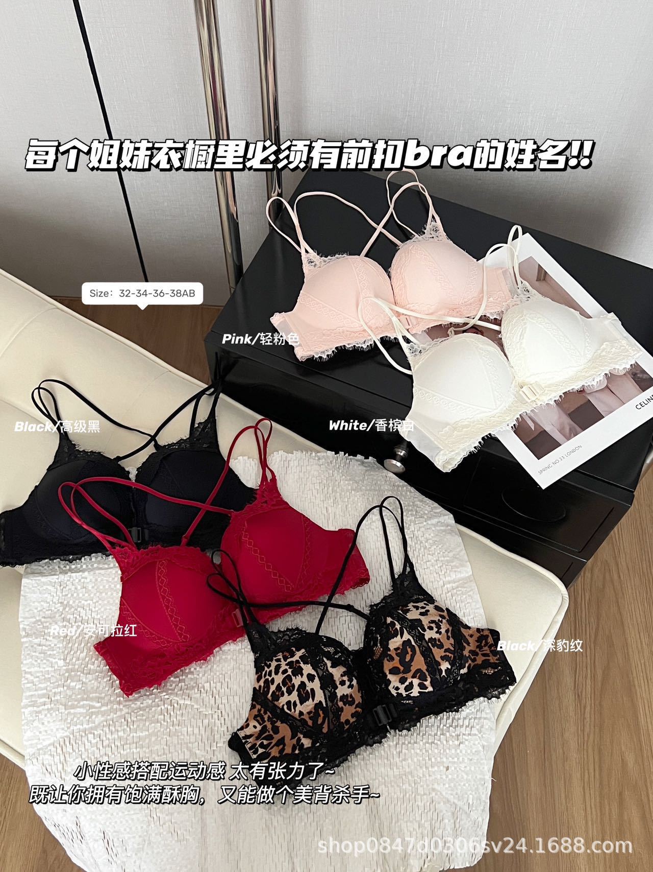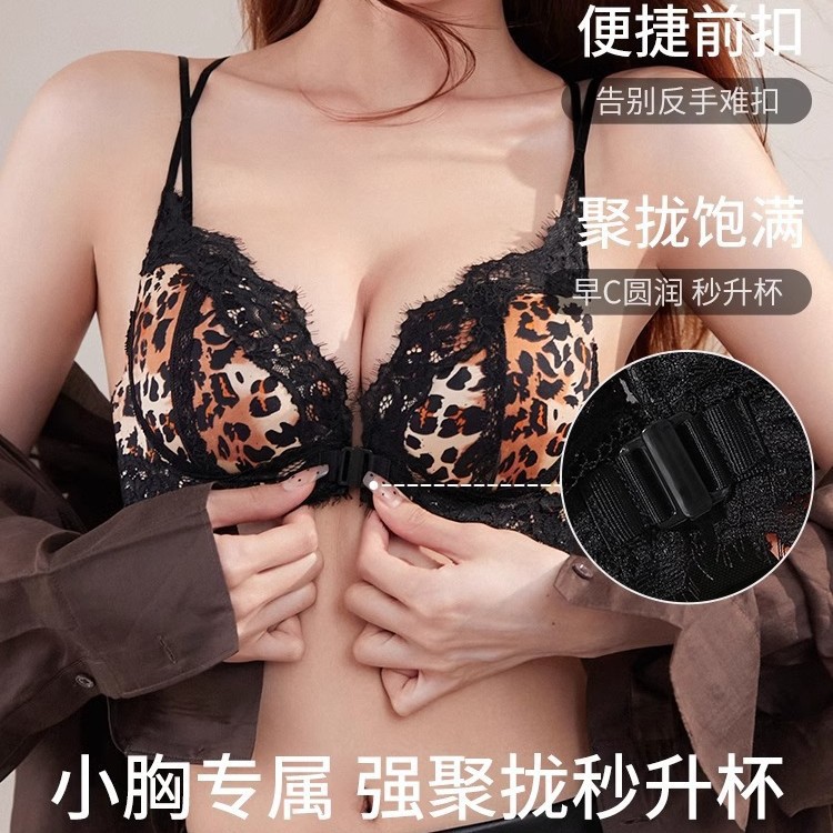 8688春夏爆款性感蕾丝豹纹前扣无钢圈内衣小胸聚拢美背交叉文胸女