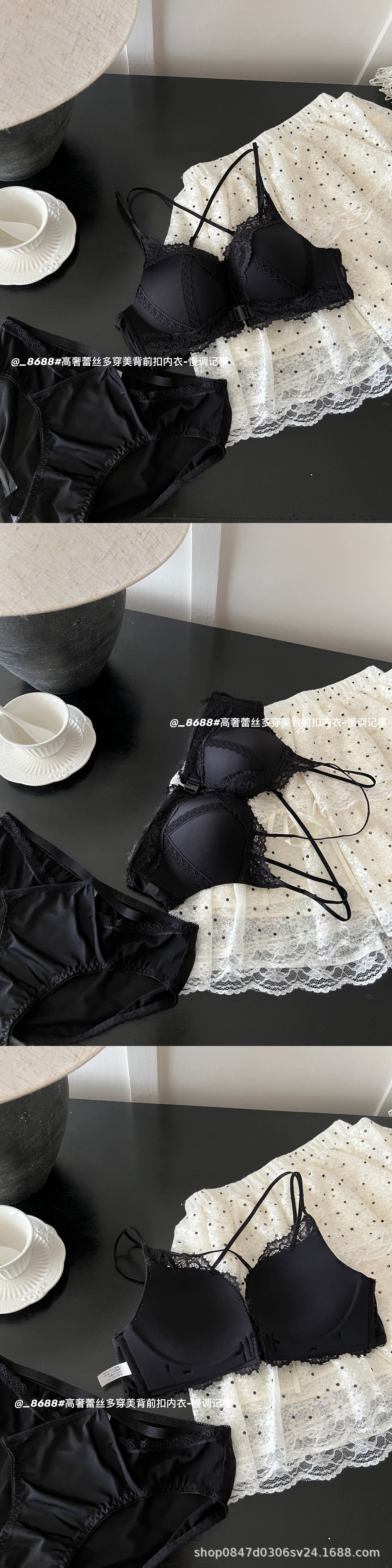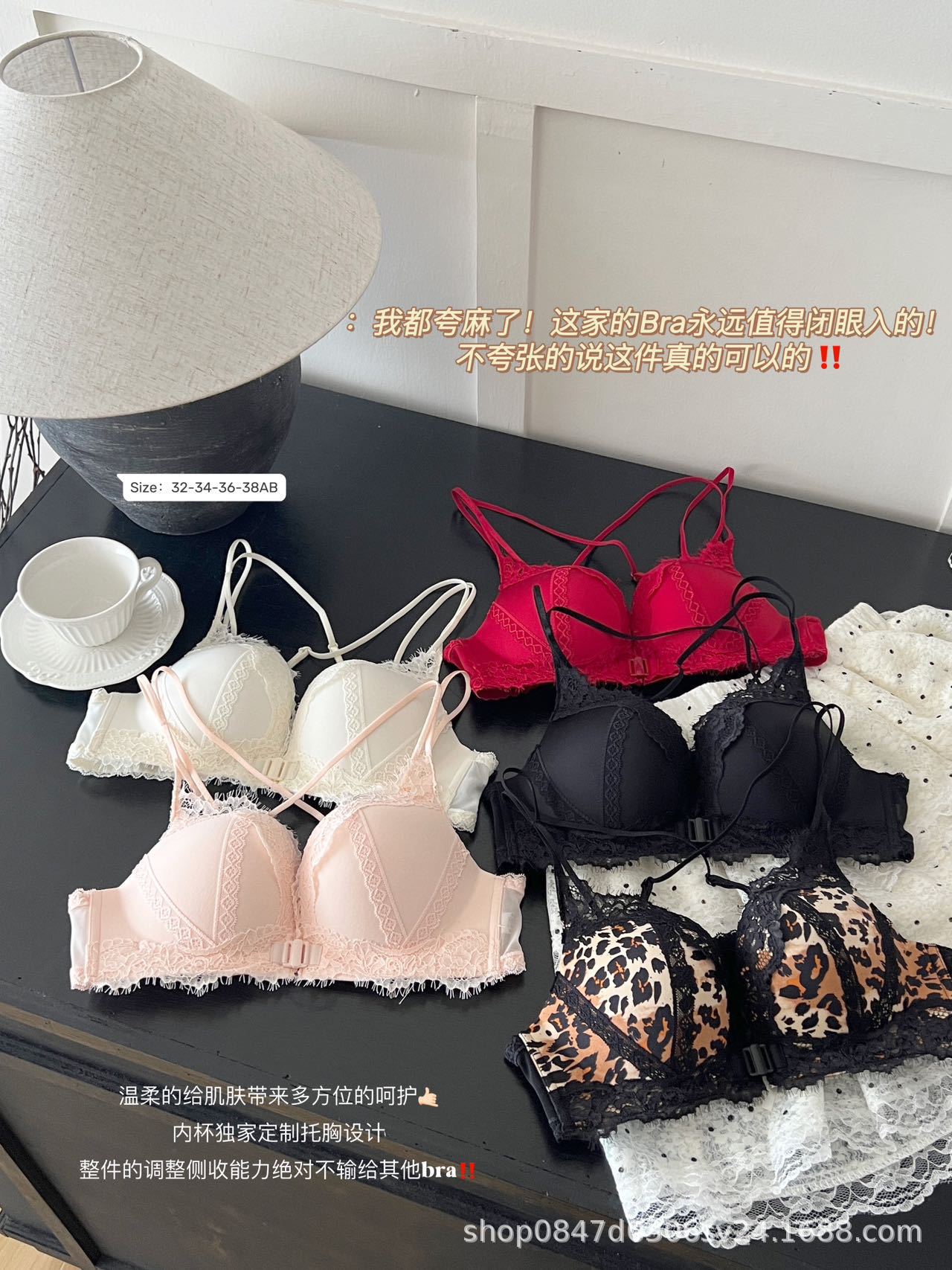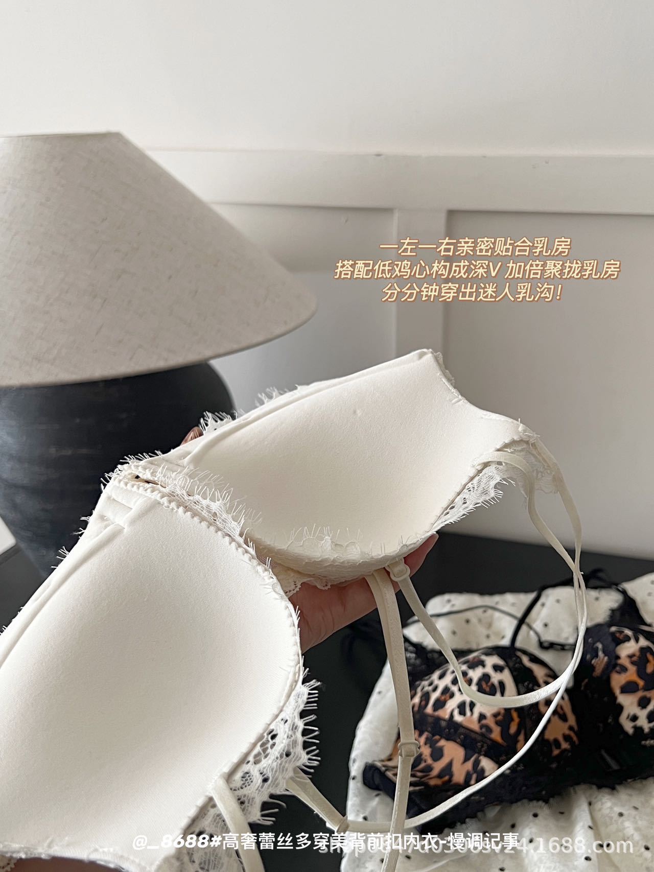 8688春夏爆款性感蕾丝豹纹前扣无钢圈内衣小胸聚拢美背交叉文胸女