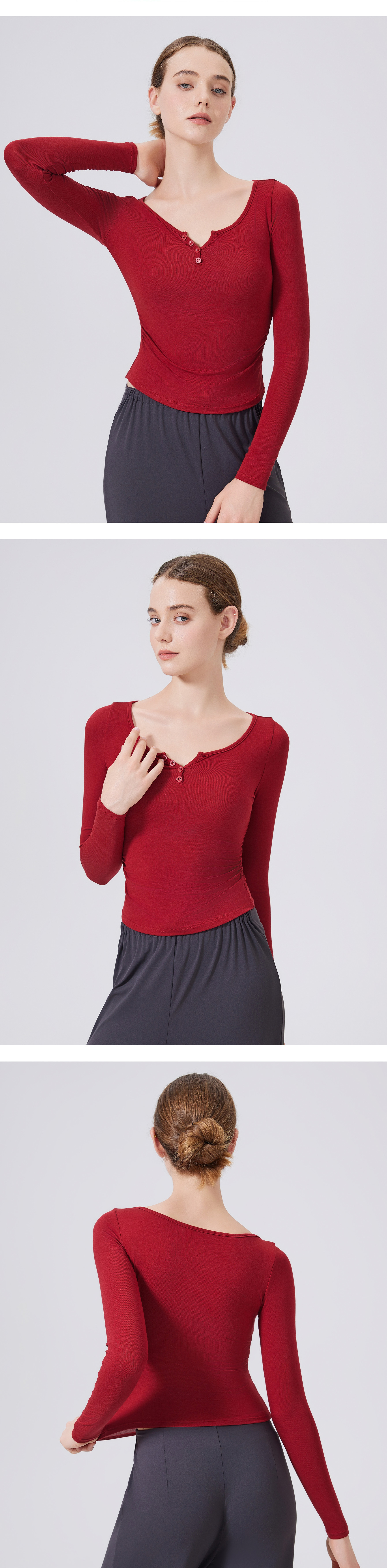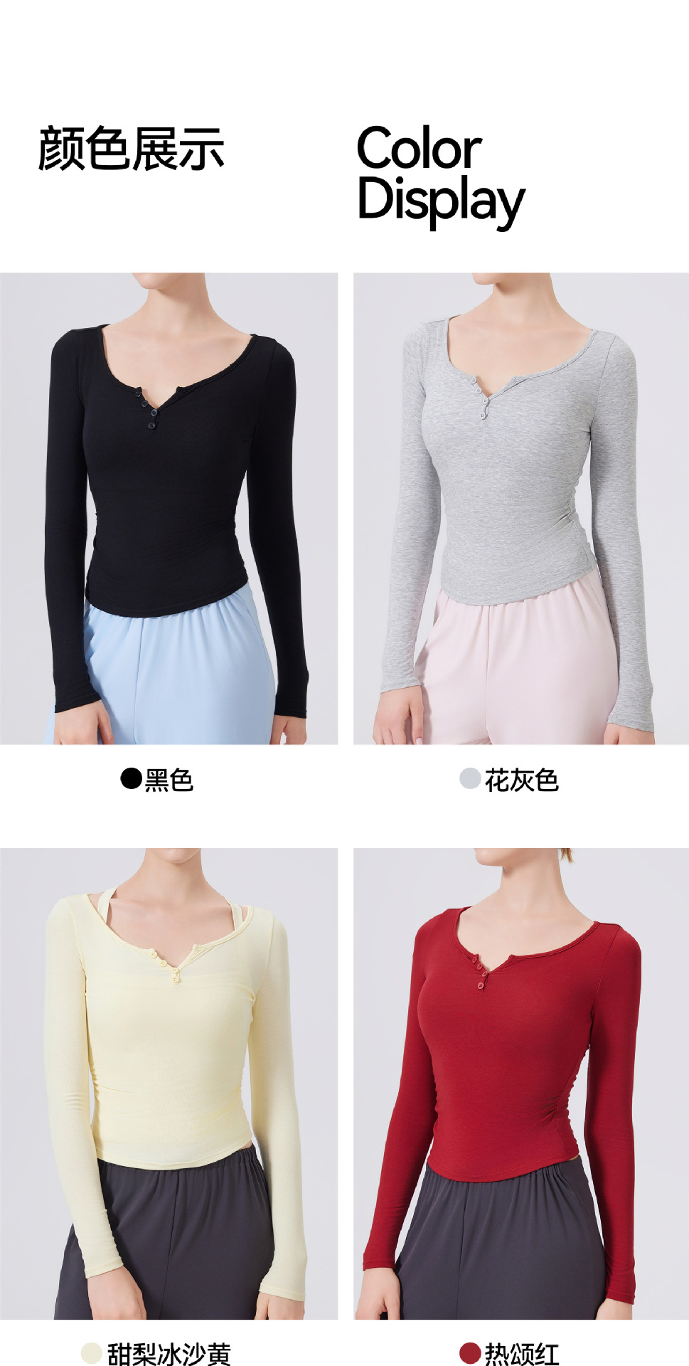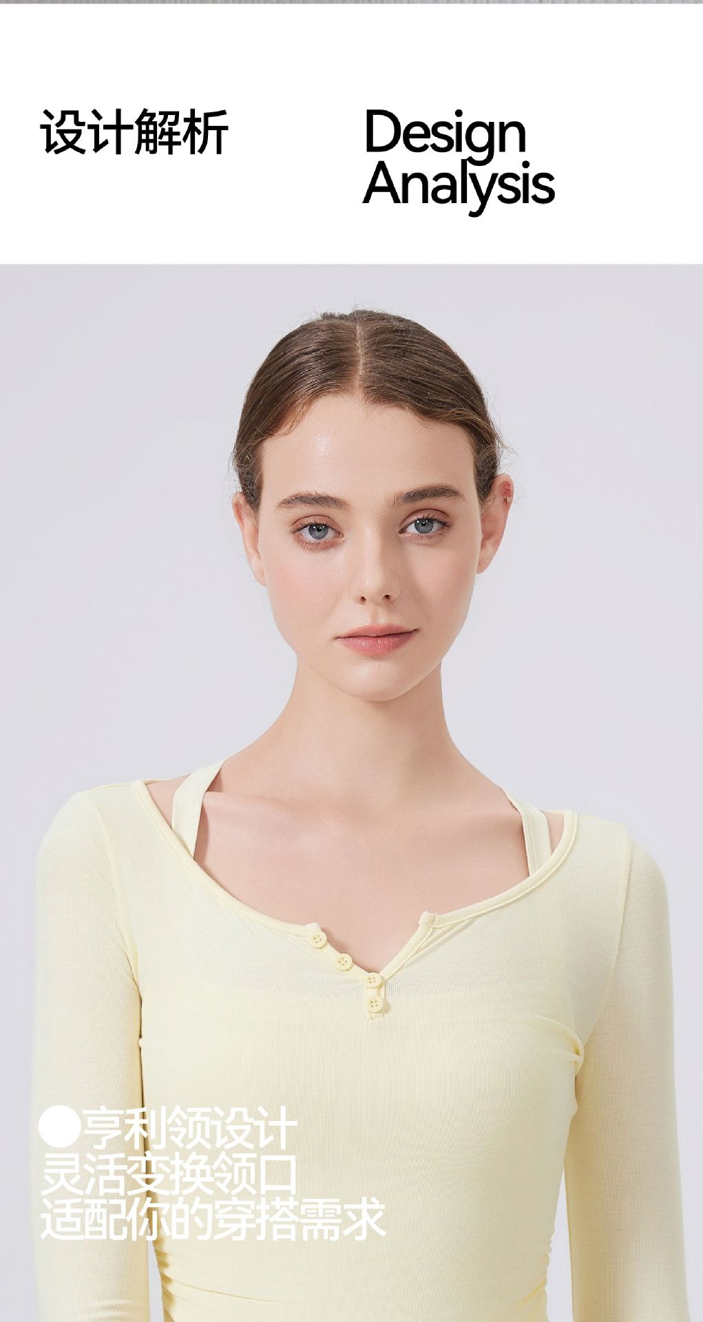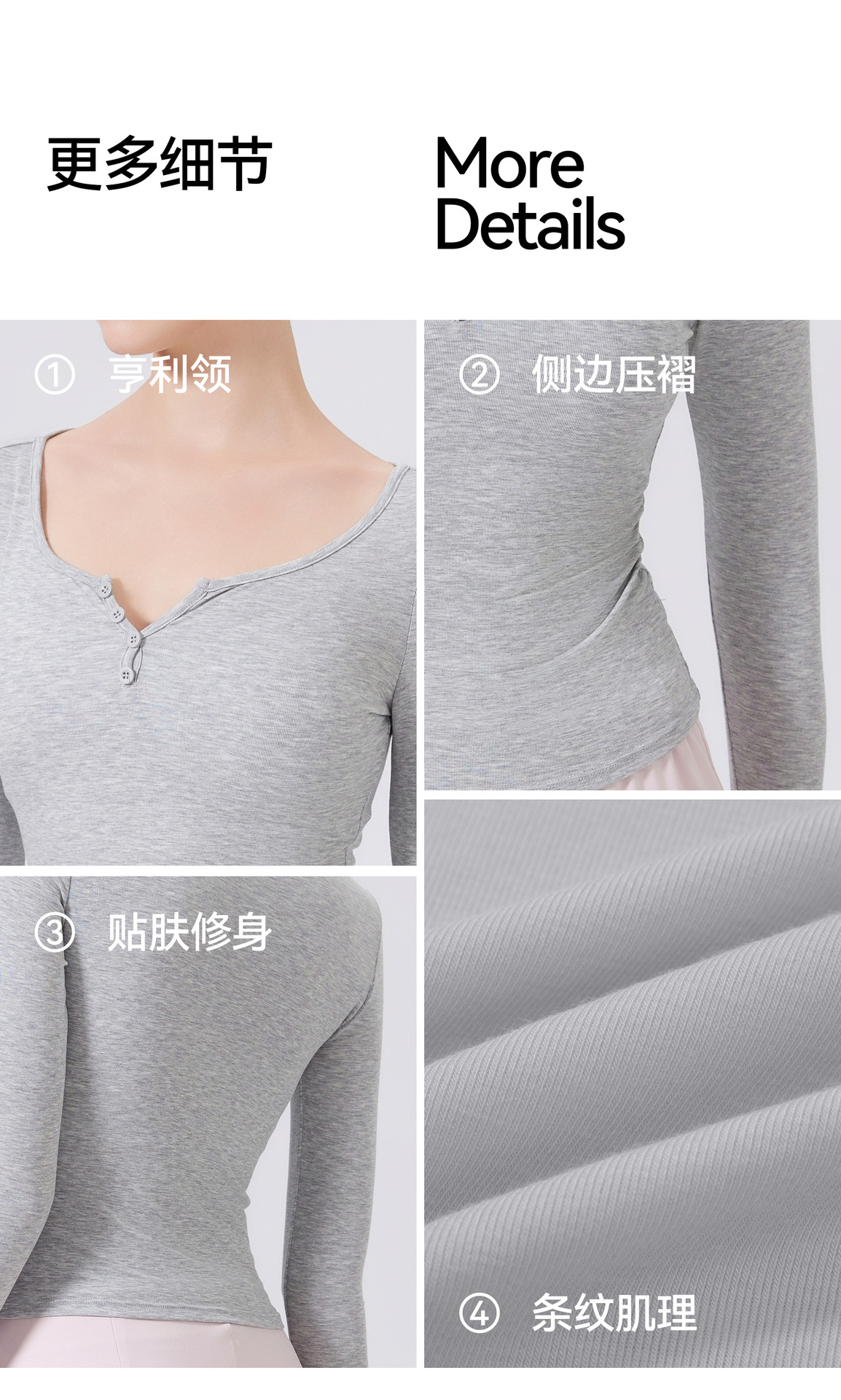 V领修身亨利衫瑜伽服长袖普拉提跑步运动上衣女显腰收腹健身T恤