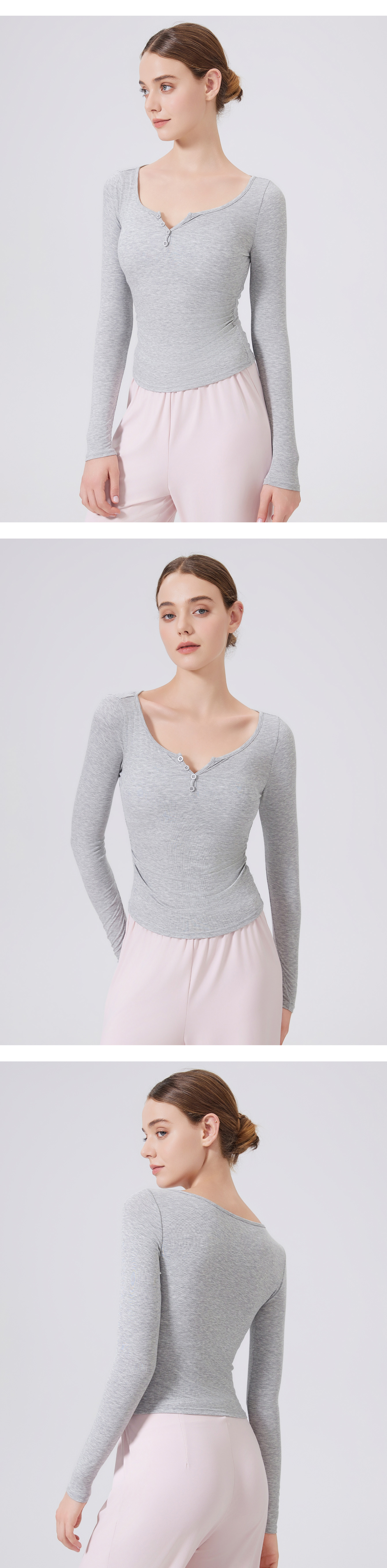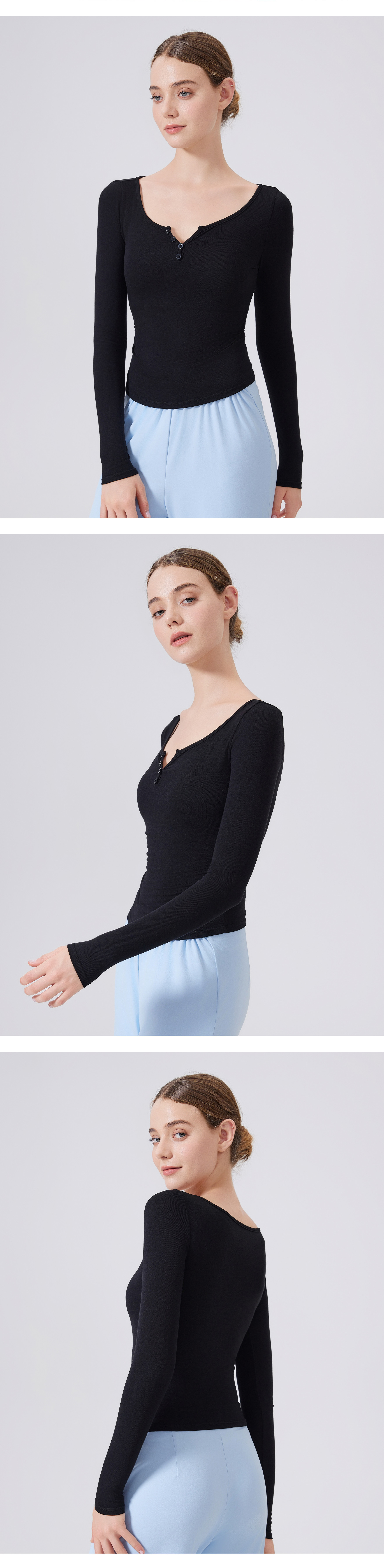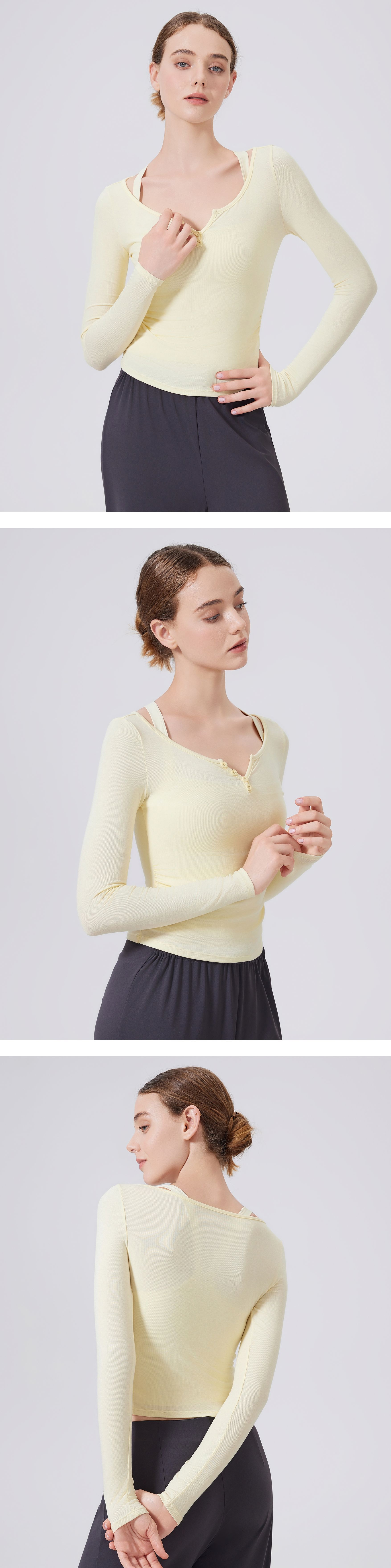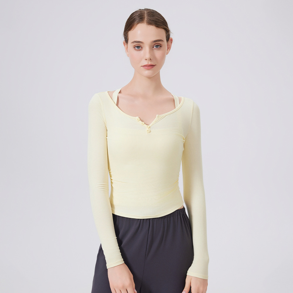 V领修身亨利衫瑜伽服长袖普拉提跑步运动上衣女显腰收腹健身T恤