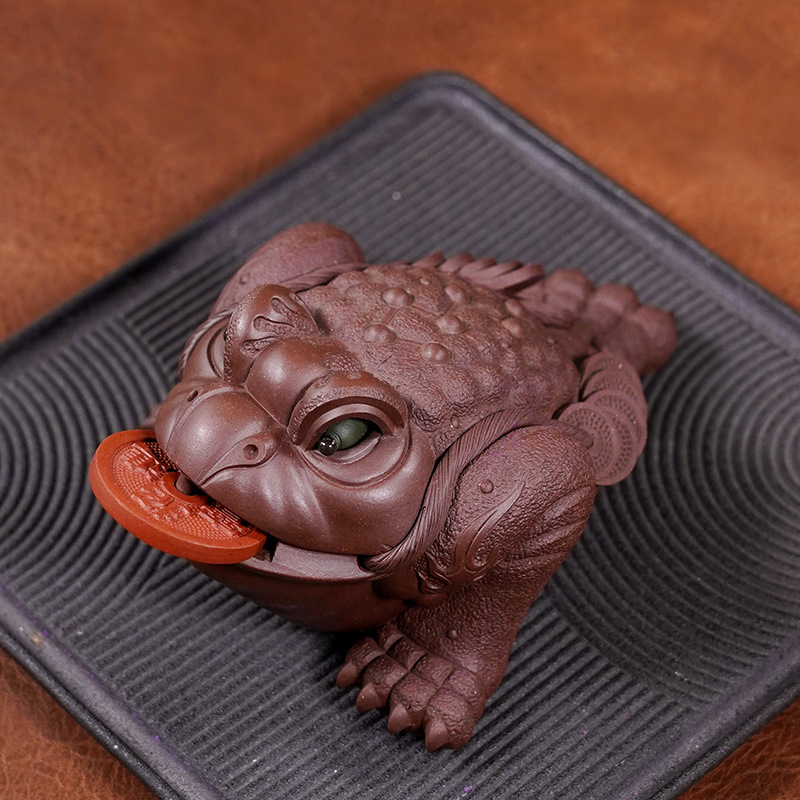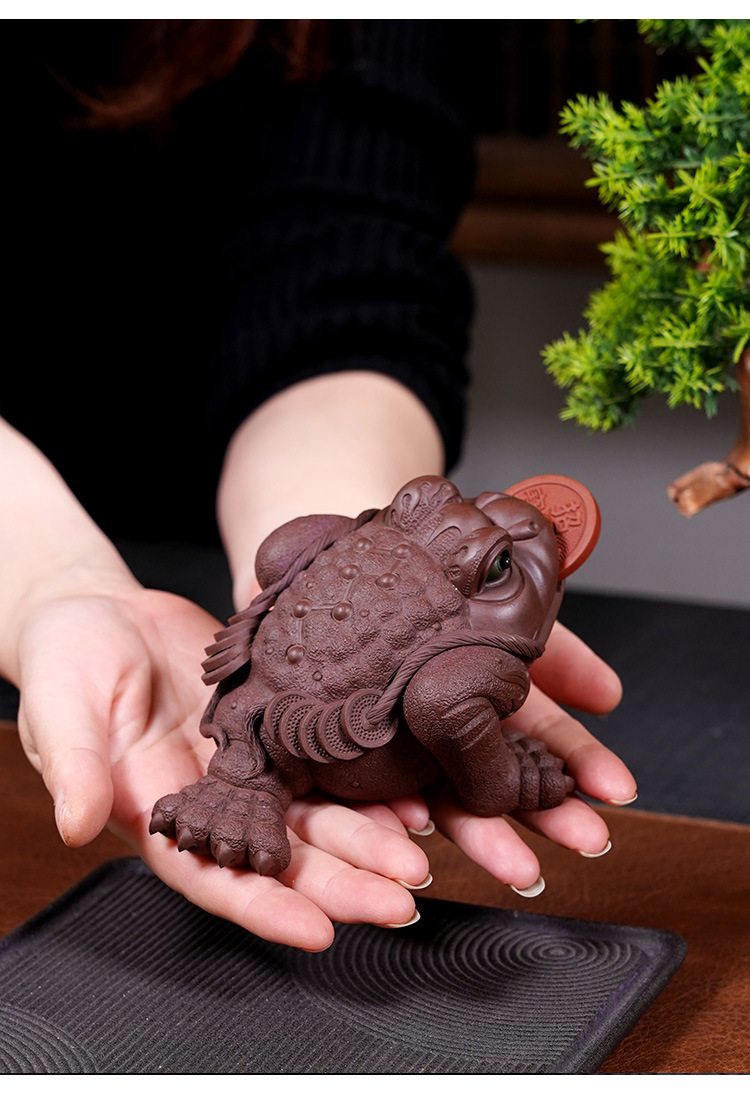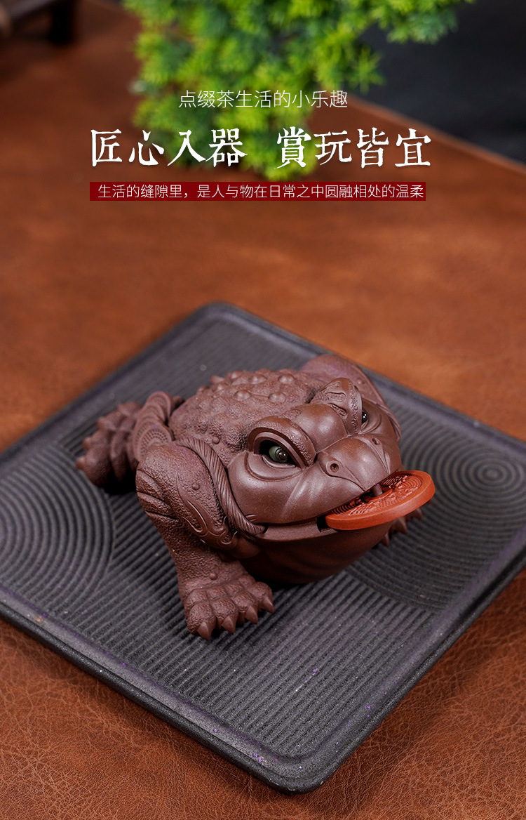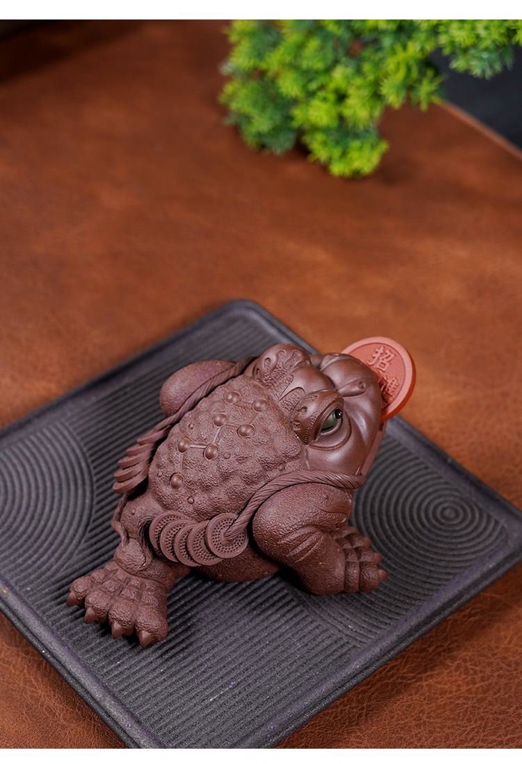 宜兴紫砂金蟾茶宠摆件传统转眼金蟾精品茶道茶玩办公室茶桌摆件批