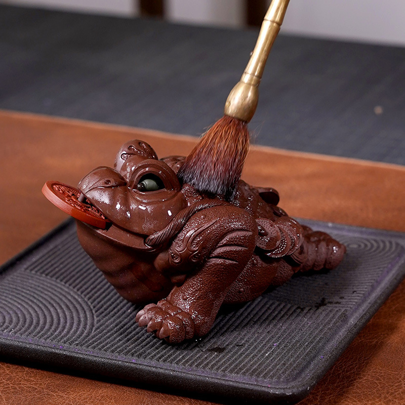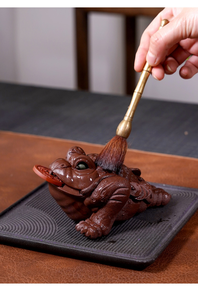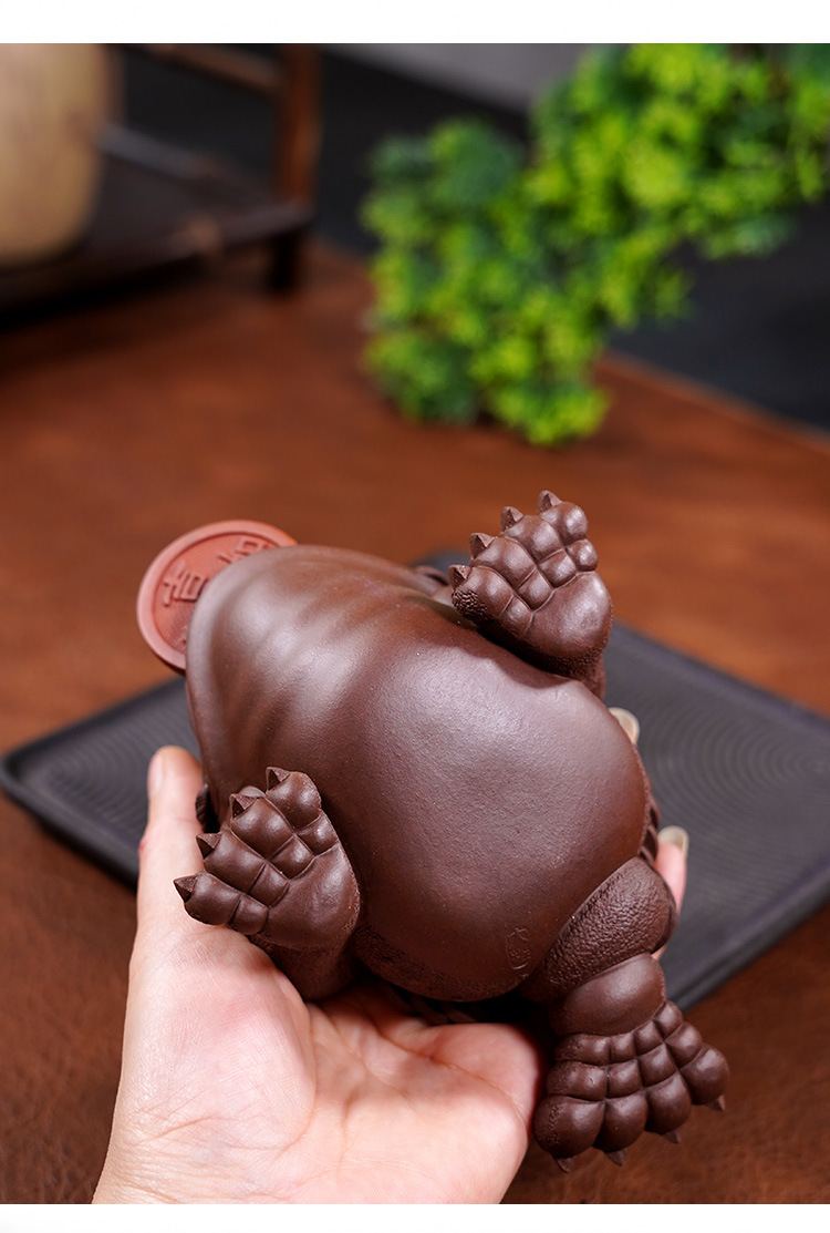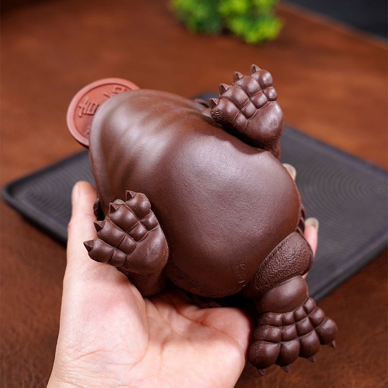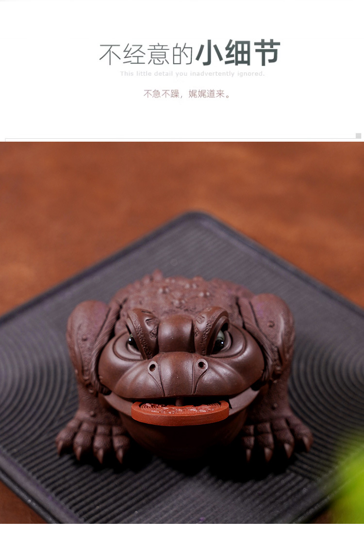 宜兴紫砂金蟾茶宠摆件传统转眼金蟾精品茶道茶玩办公室茶桌摆件批